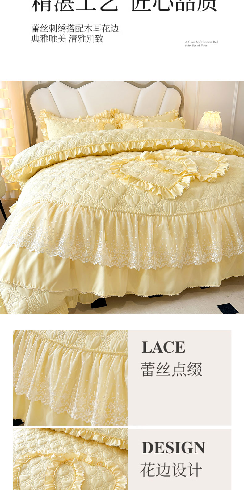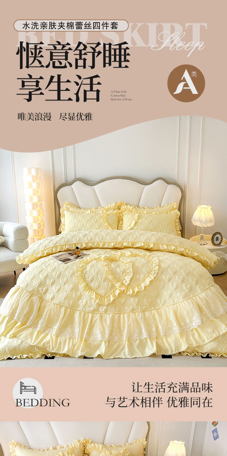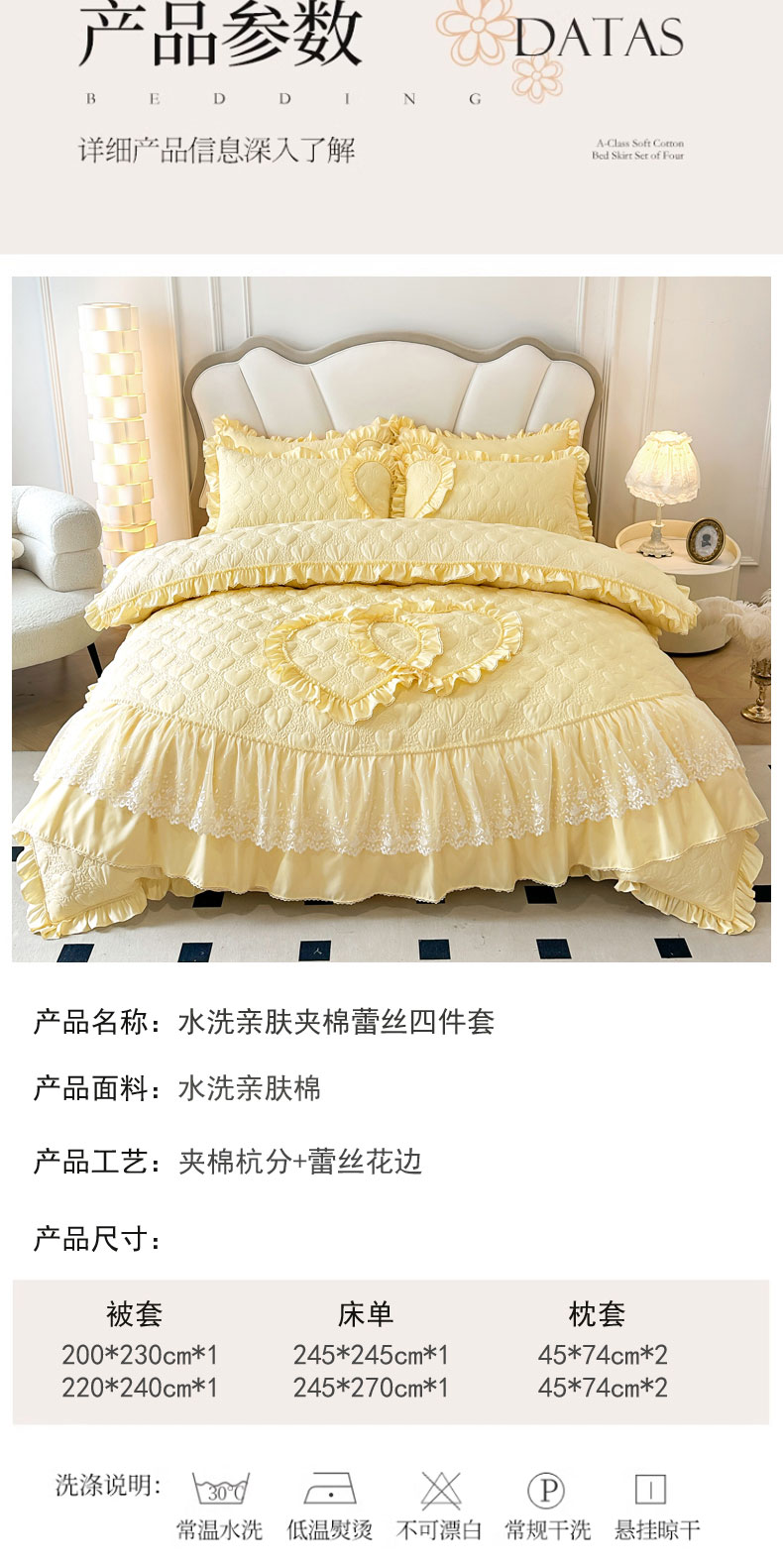 兴美佳 2024新款水洗棉亲肤绗缝四件套--初恋 初恋-米黄