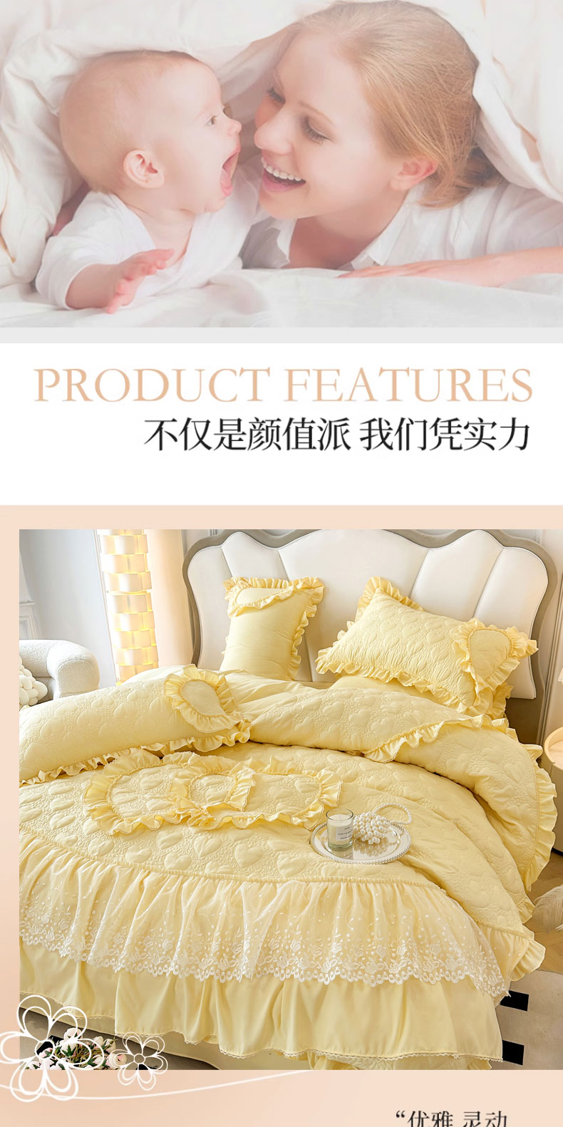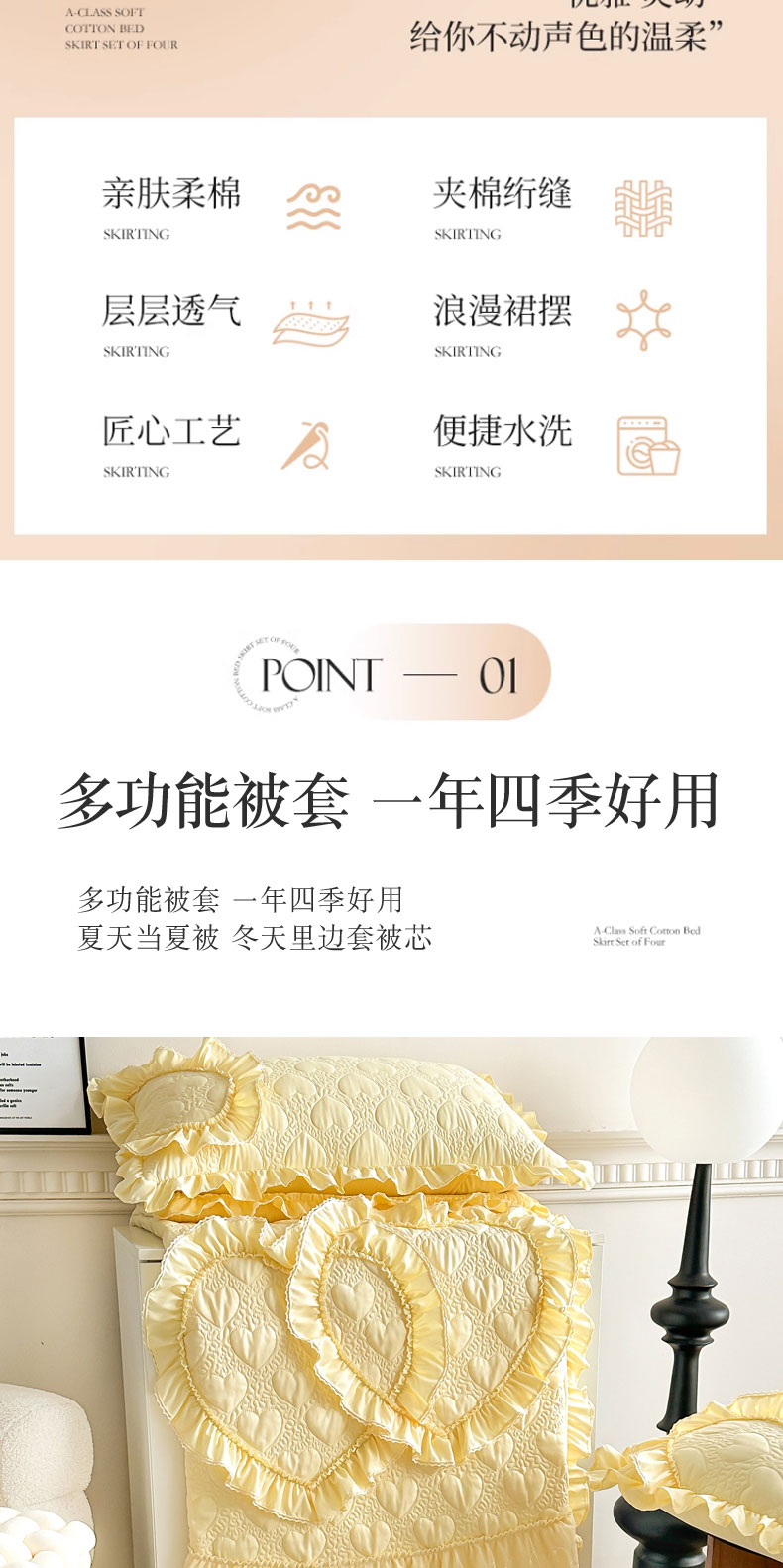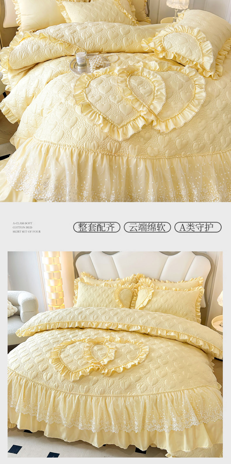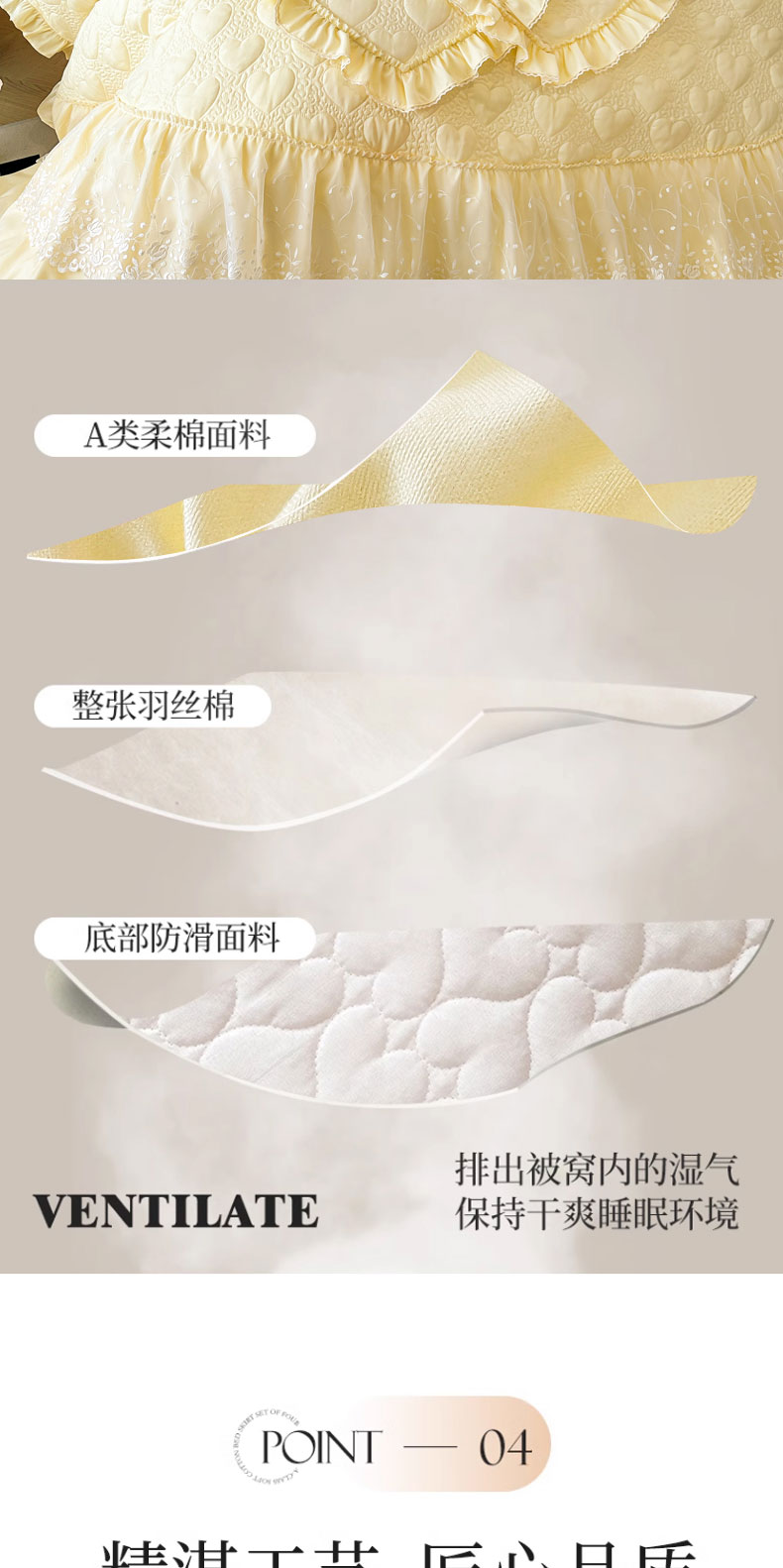 兴美佳 2024新款水洗棉亲肤绗缝四件套--初恋 初恋-米黄