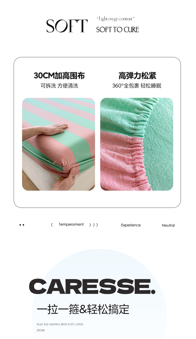 商品名称:莱登卡奴 2024新款全棉色织水洗棉单品系列 单床笠 床笠-初享粉
