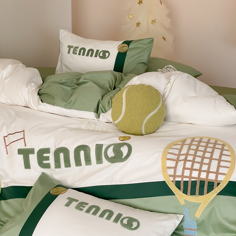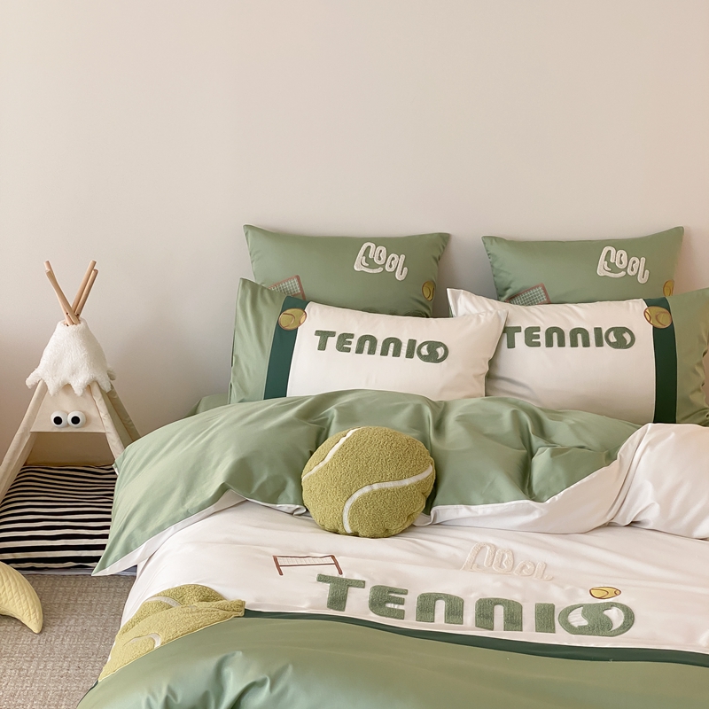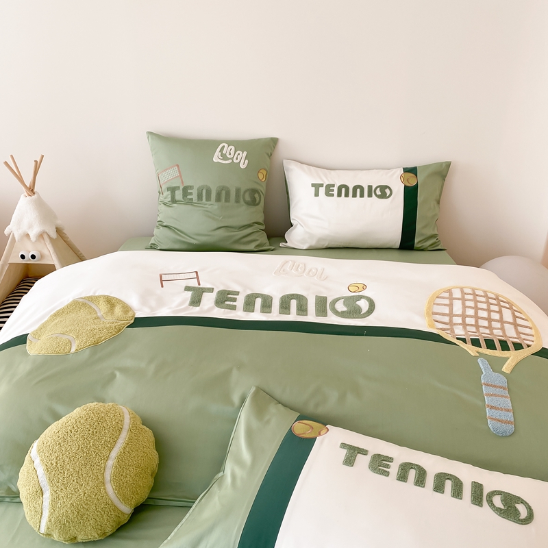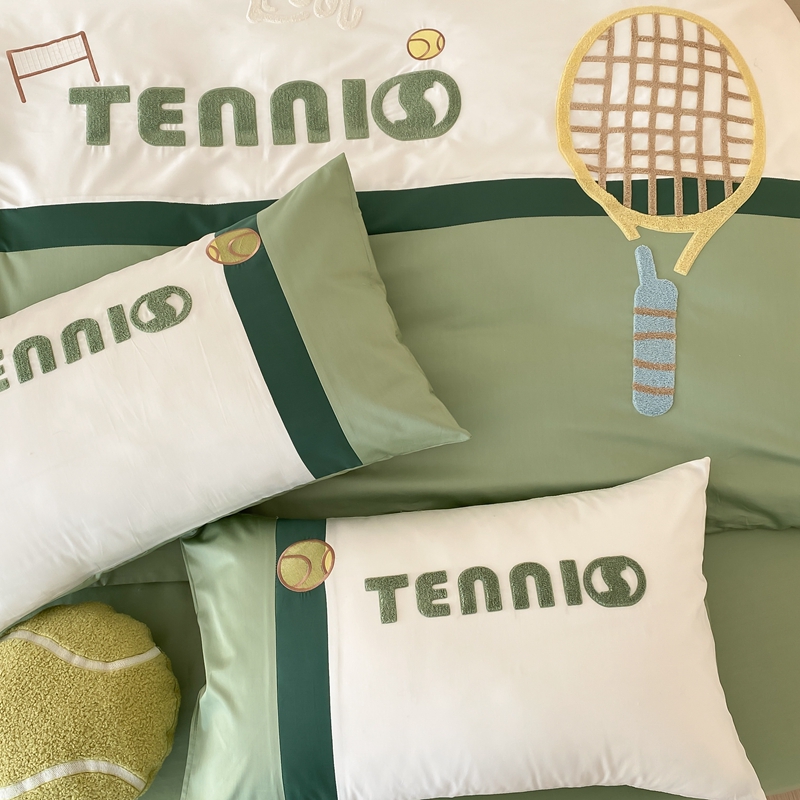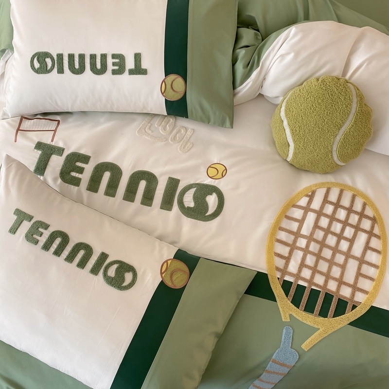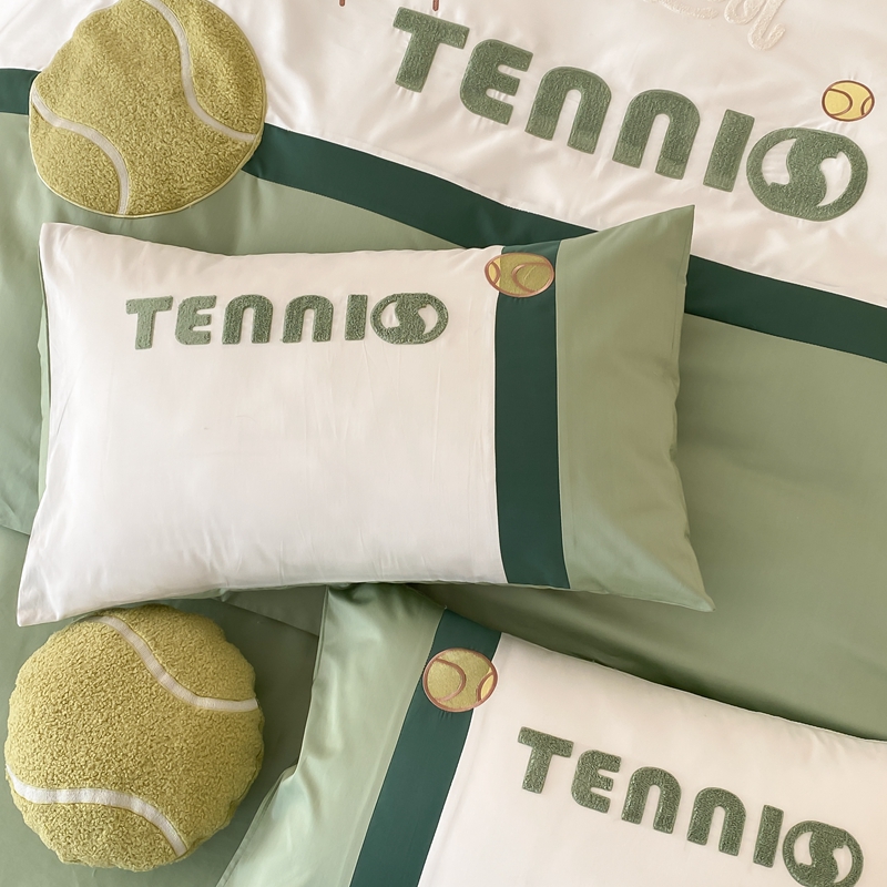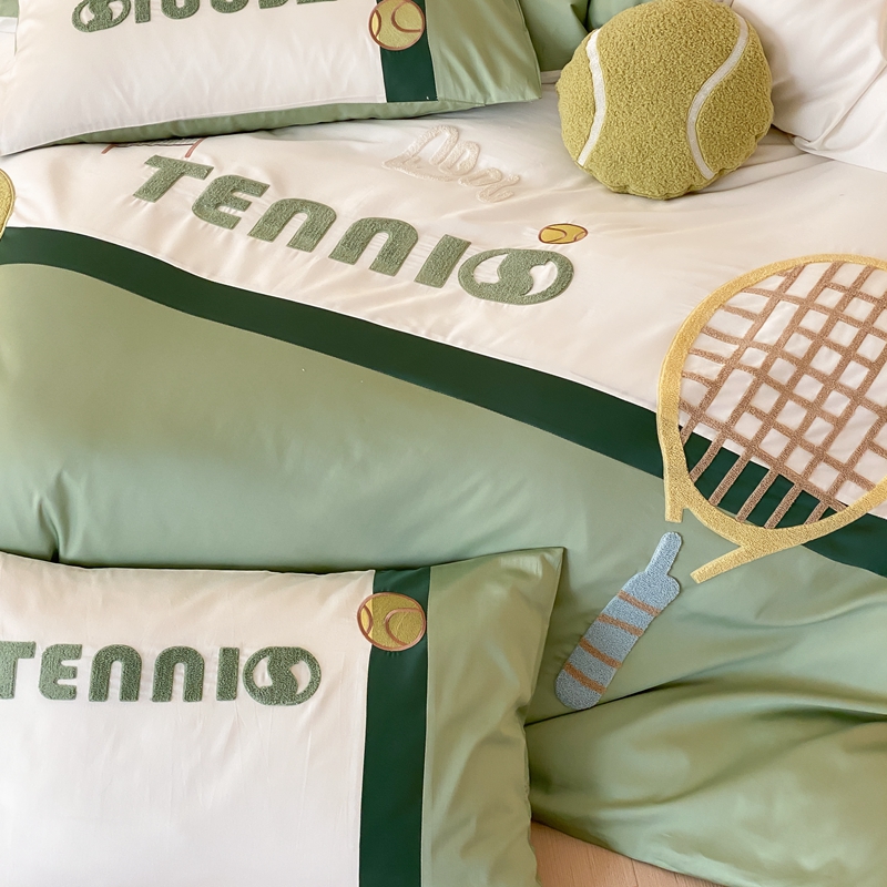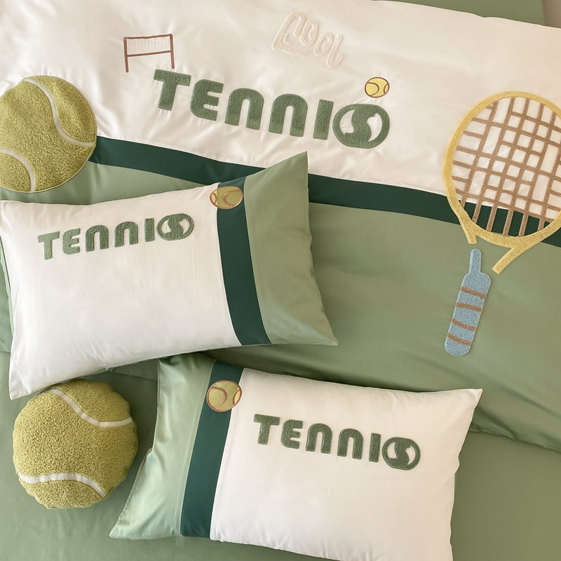 商品名称:星野家居 2024新款双股澳棉毛巾绣四件套—快乐网球场 快乐网球场—氧气绿