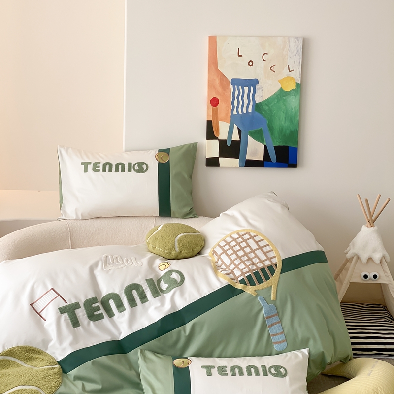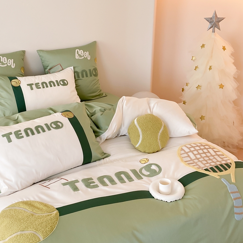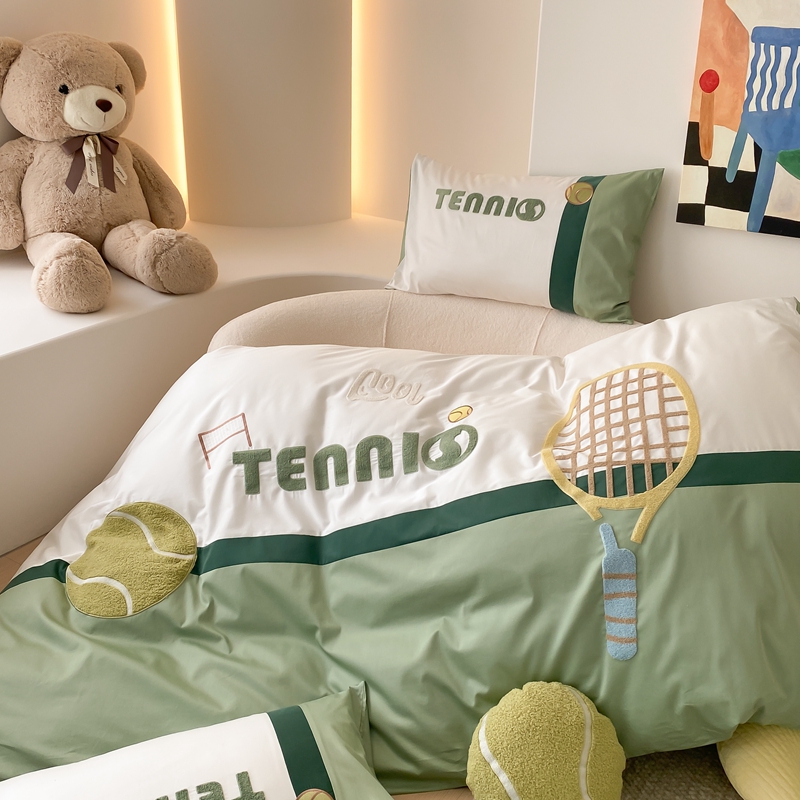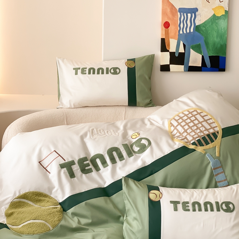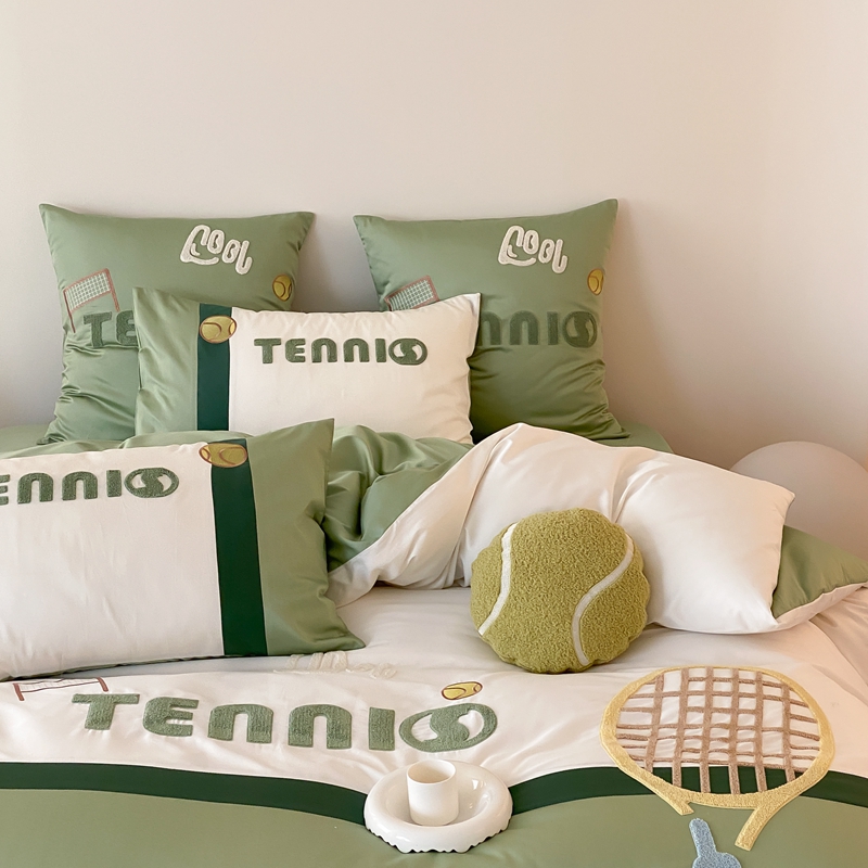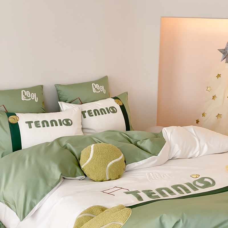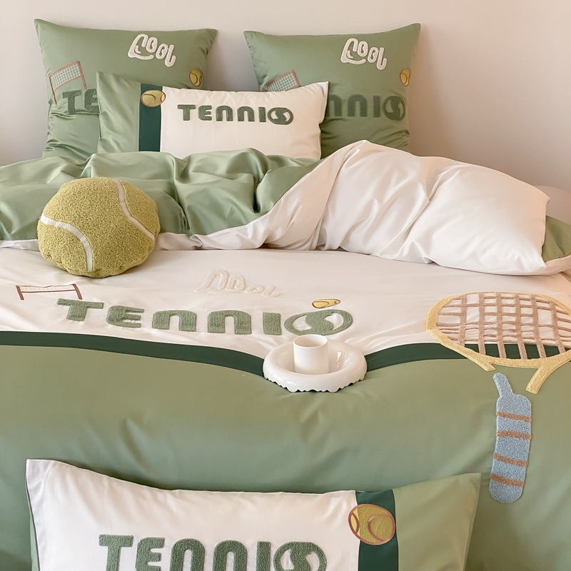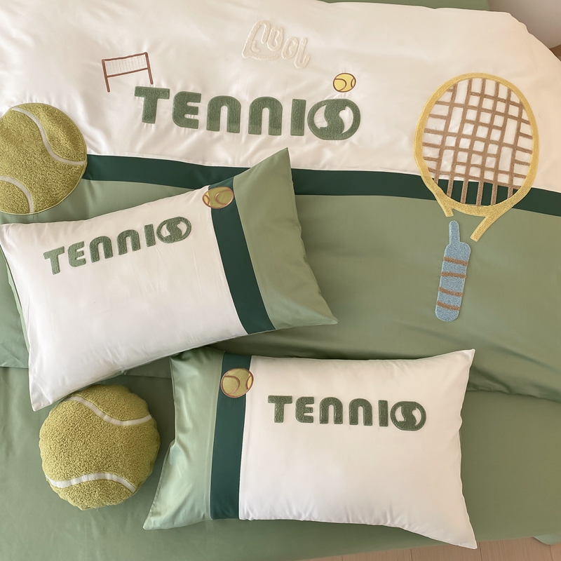 商品名称:星野家居 2024新款双股澳棉毛巾绣四件套—快乐网球场 快乐网球场—氧气绿