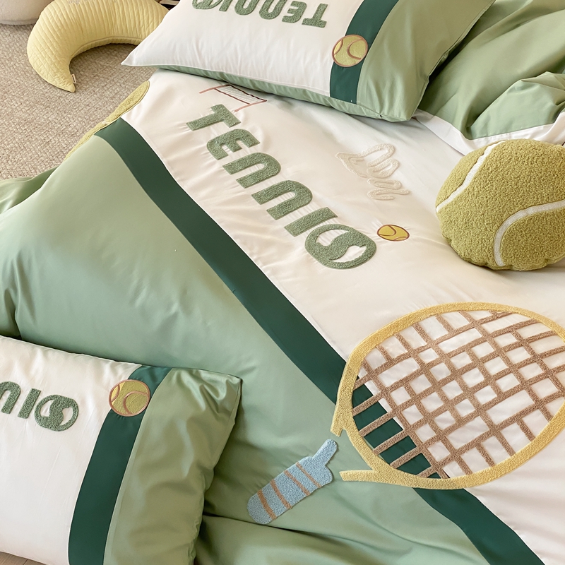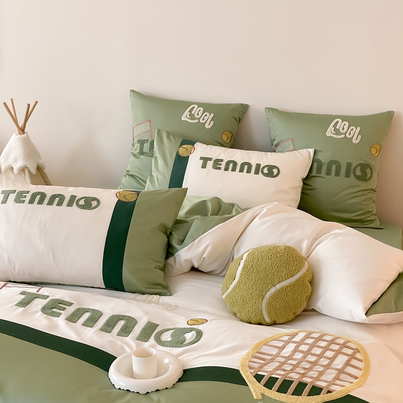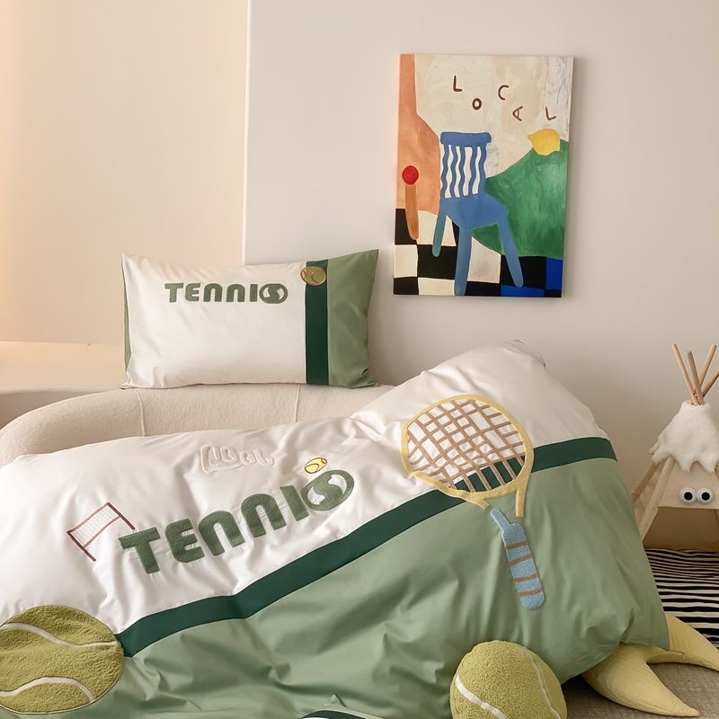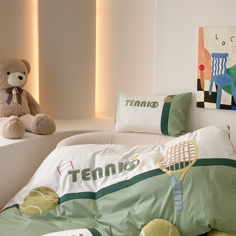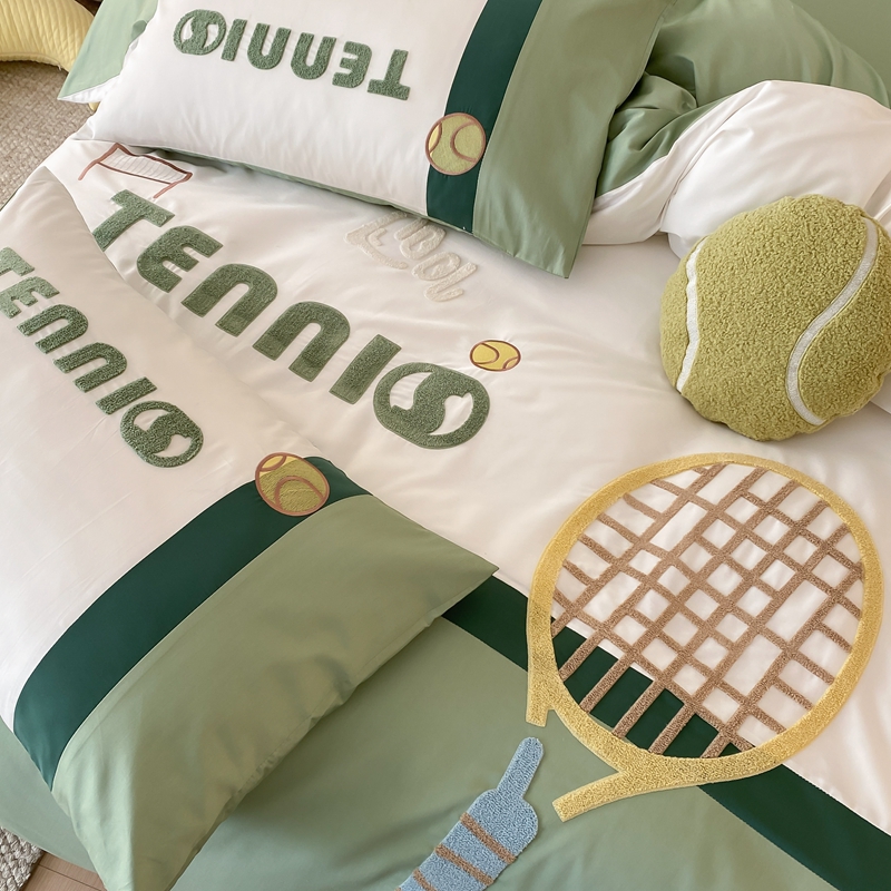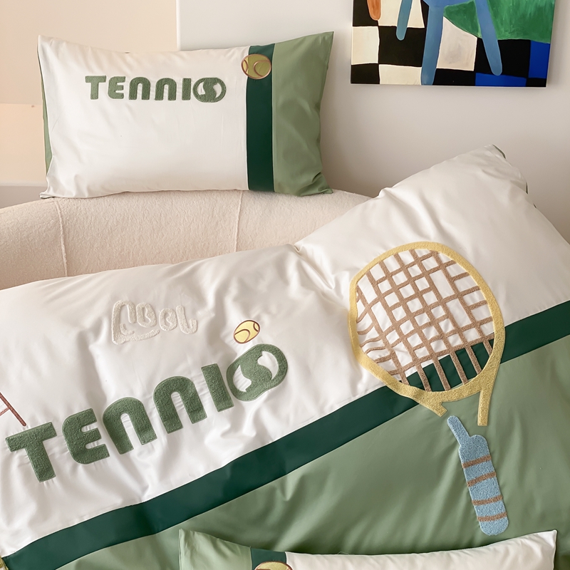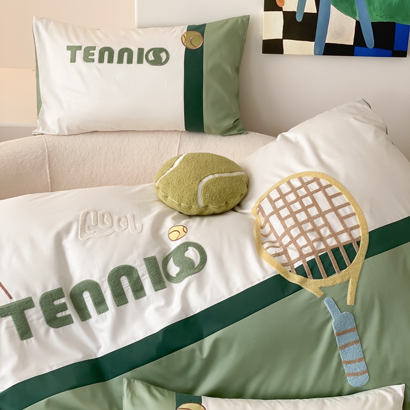 商品名称:星野家居 2024新款双股澳棉毛巾绣四件套—快乐网球场 快乐网球场—氧气绿
