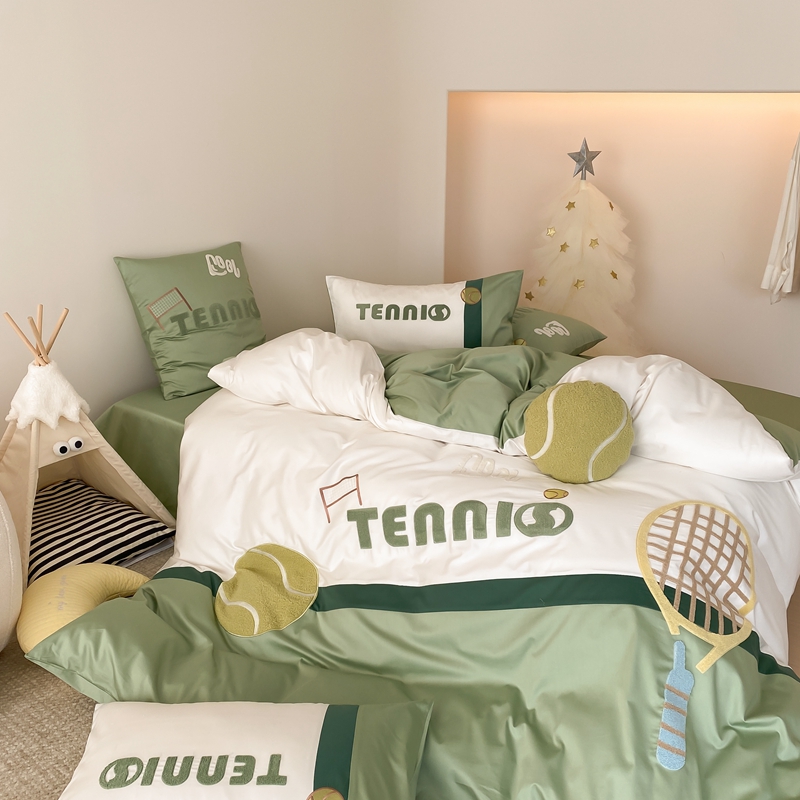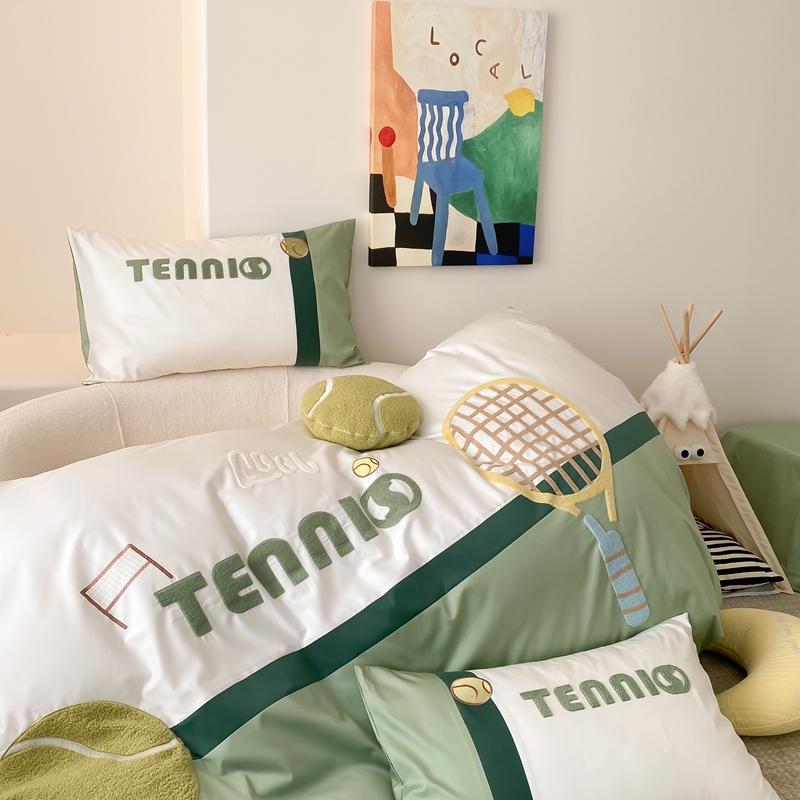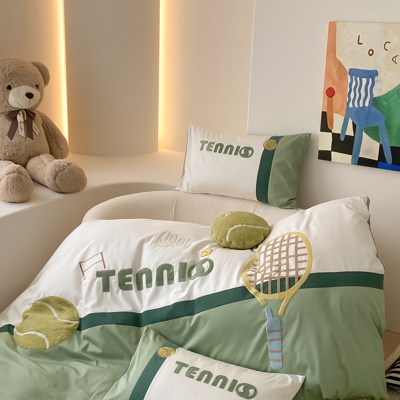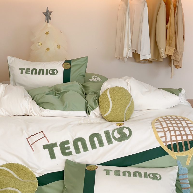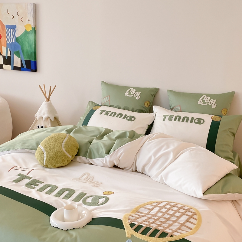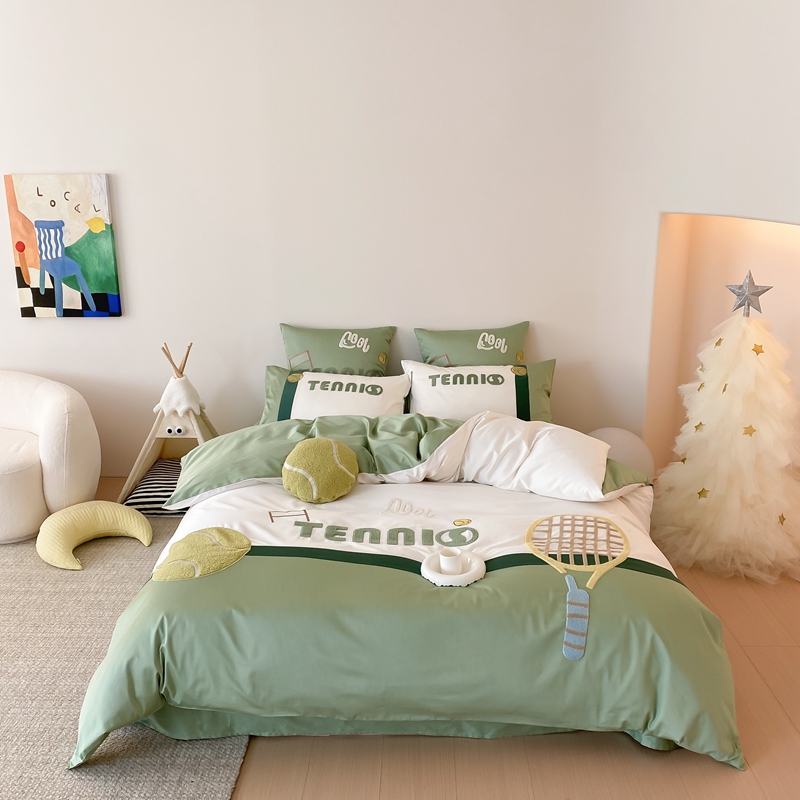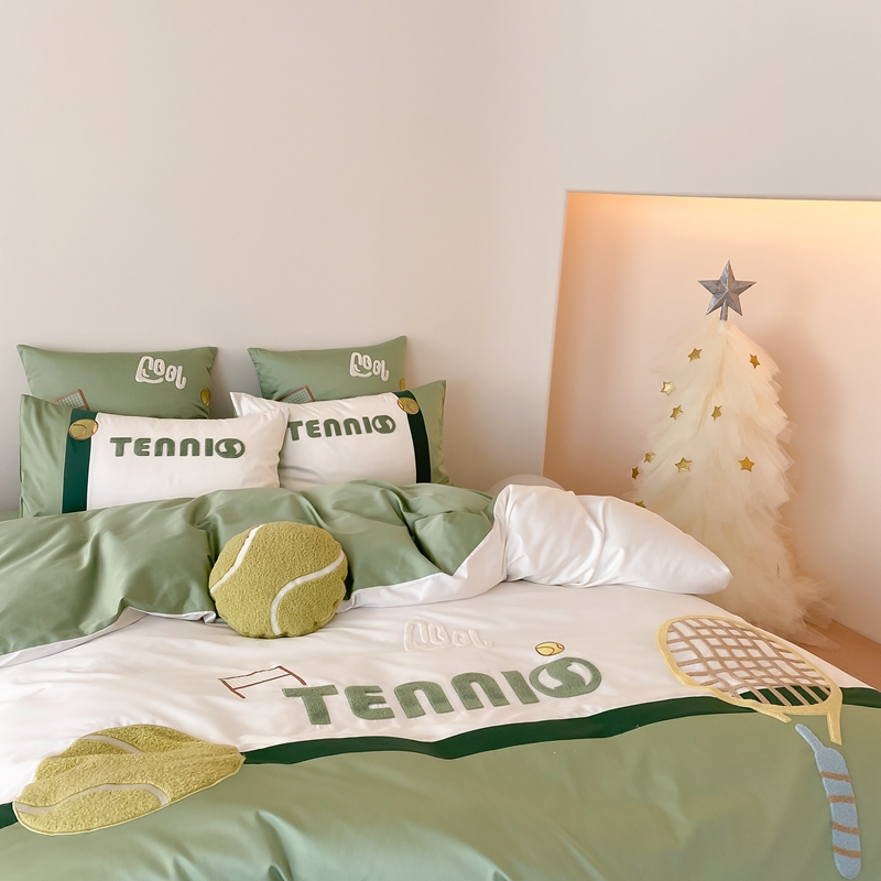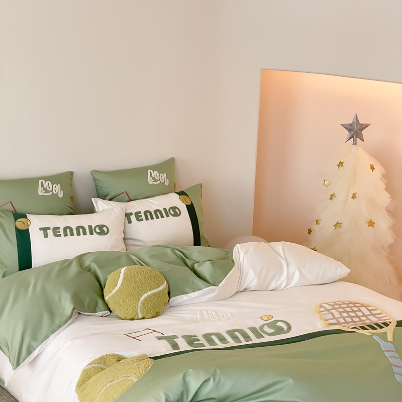 商品名称:星野家居 2024新款双股澳棉毛巾绣四件套—快乐网球场 快乐网球场—氧气绿