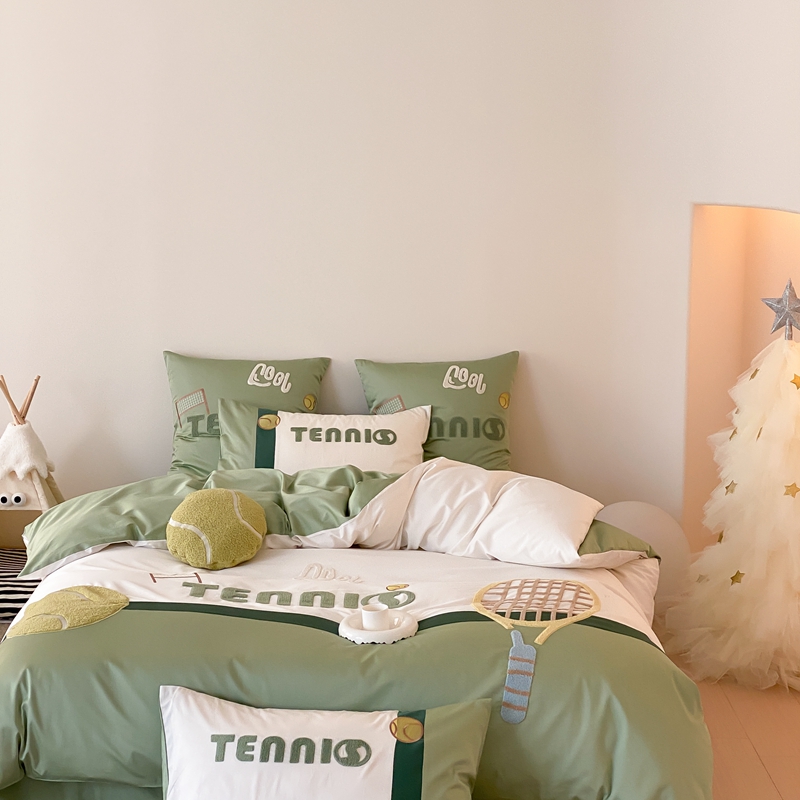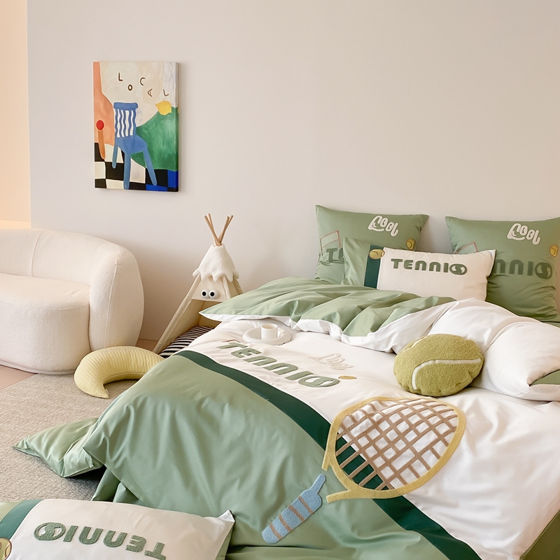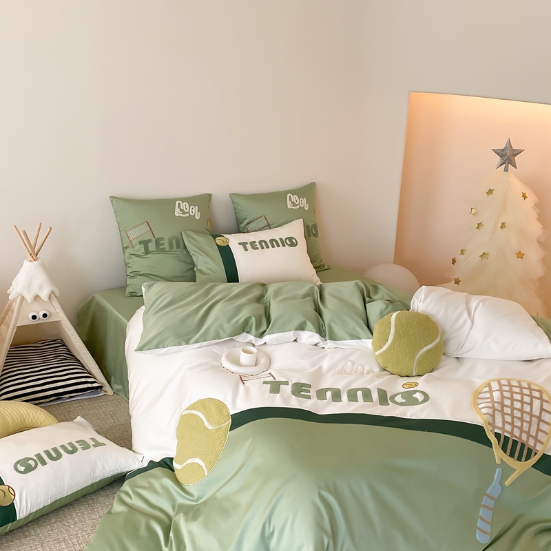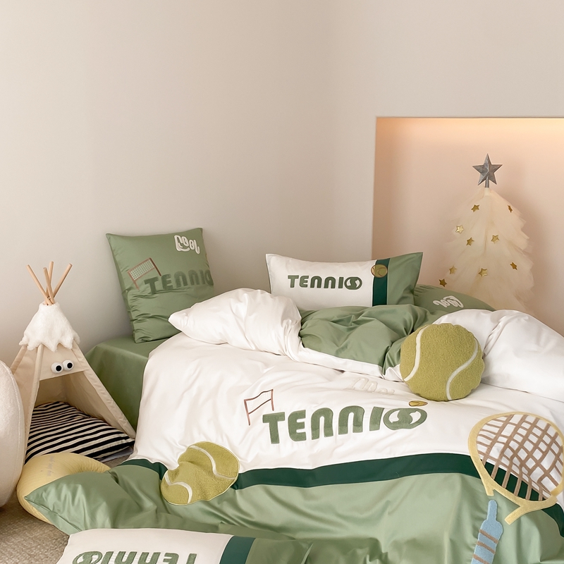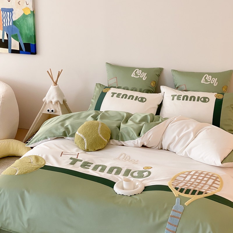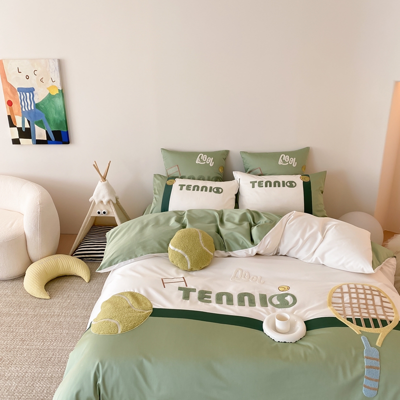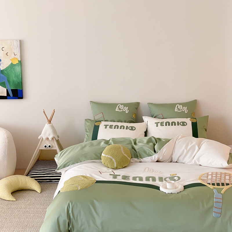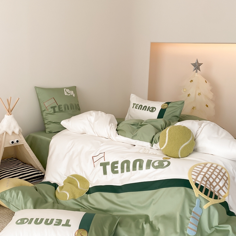 商品名称:星野家居 2024新款双股澳棉毛巾绣四件套—快乐网球场 快乐网球场—氧气绿