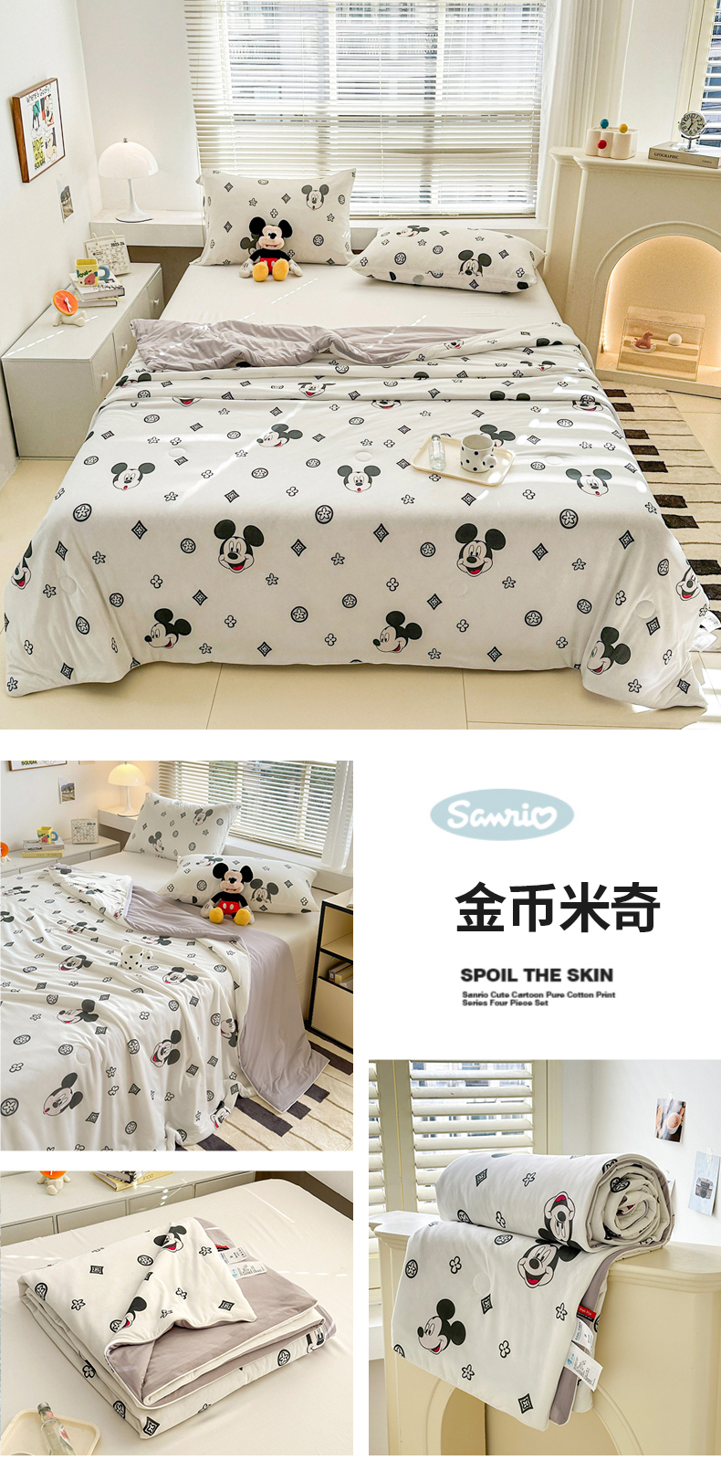 商品名称:八方汇 2024新款A类水洗棉印花大豆夏被 金币米奇