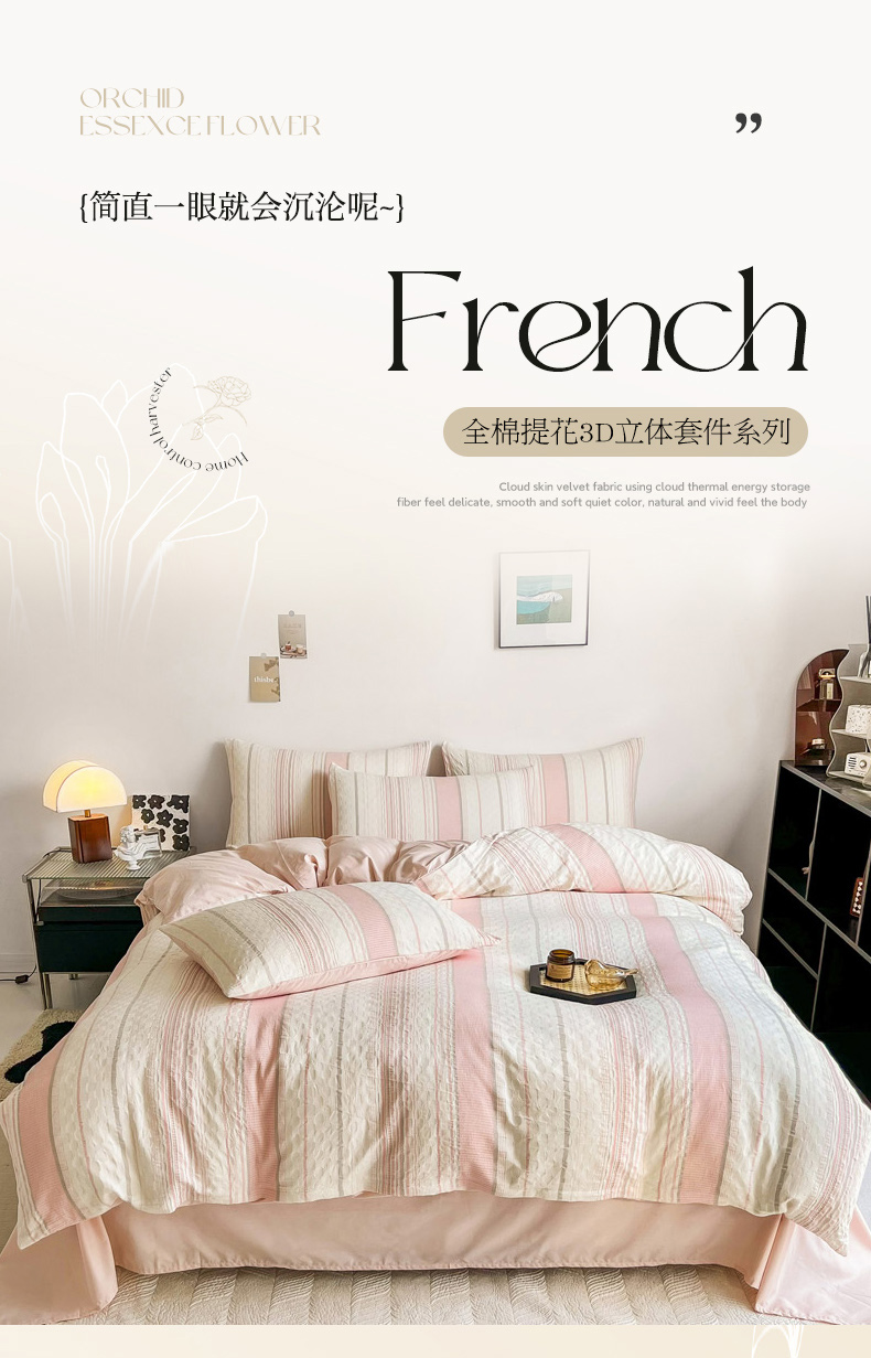 商品名称:倾慕家纺 2024新款提花全棉3D立体简约全棉系列套件 华夫生活-暖豆沙