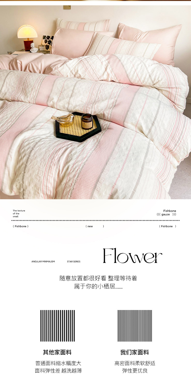 倾慕家纺 2024新款提花全棉3D立体简约全棉系列套件 华夫生活-暖豆沙