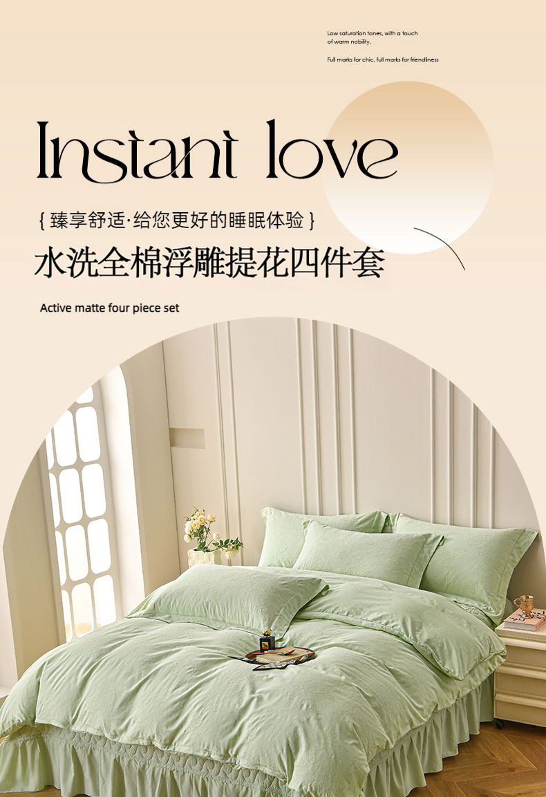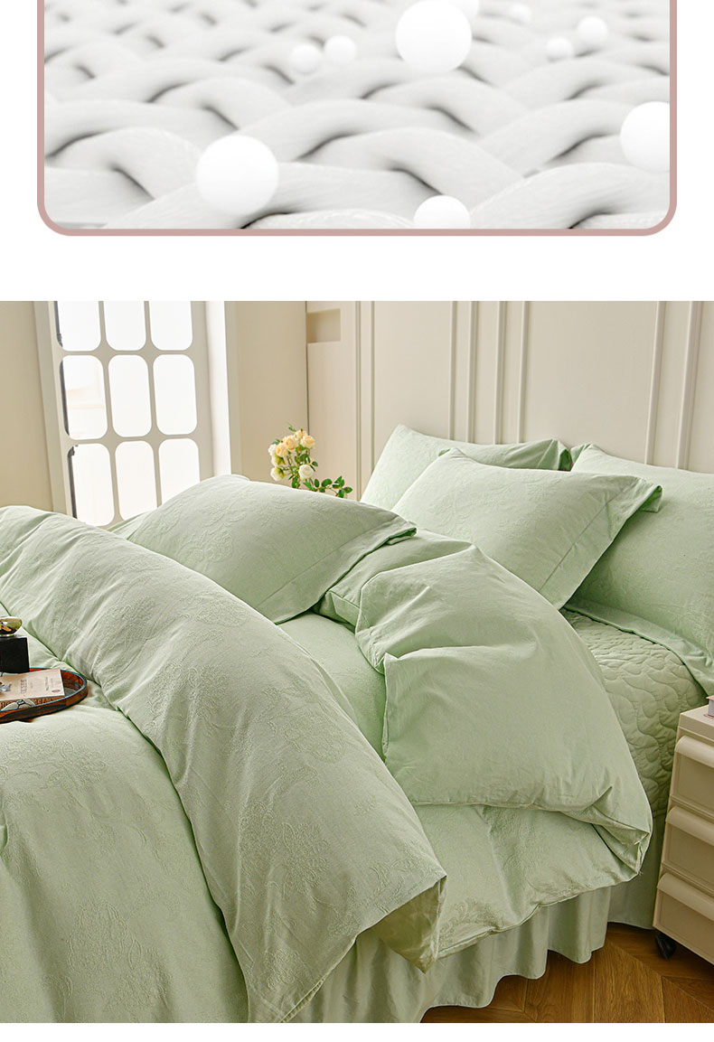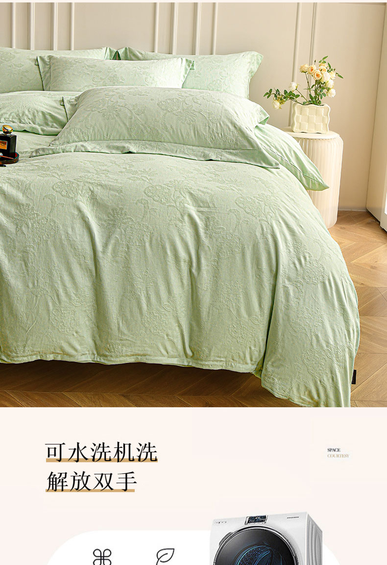 金艾草 2024新款水洗全棉浮雕提花床盖四件套 罗曼-浅绿