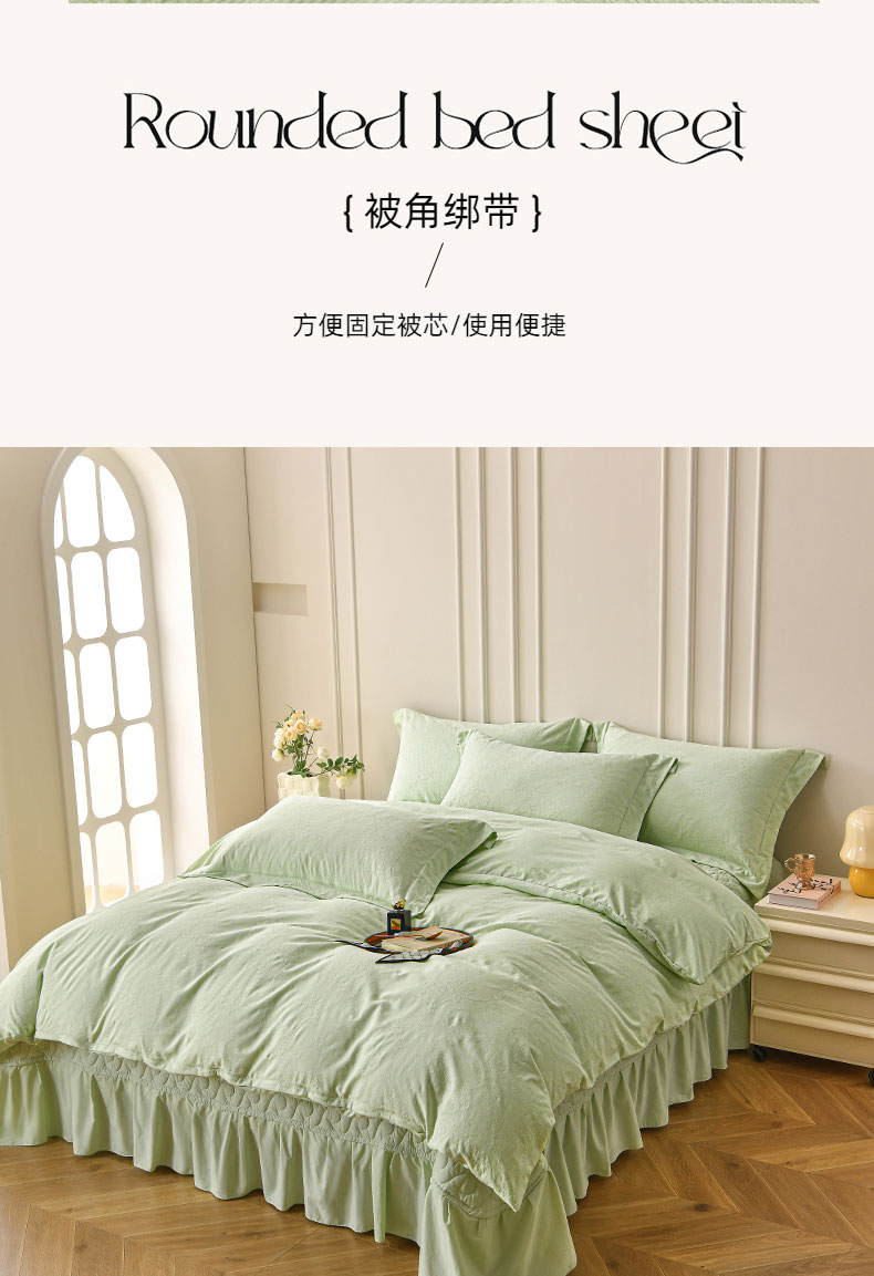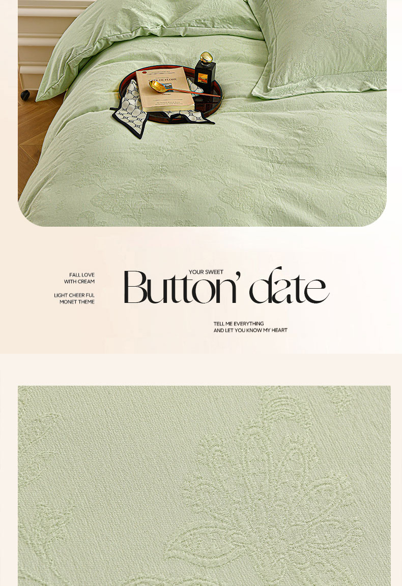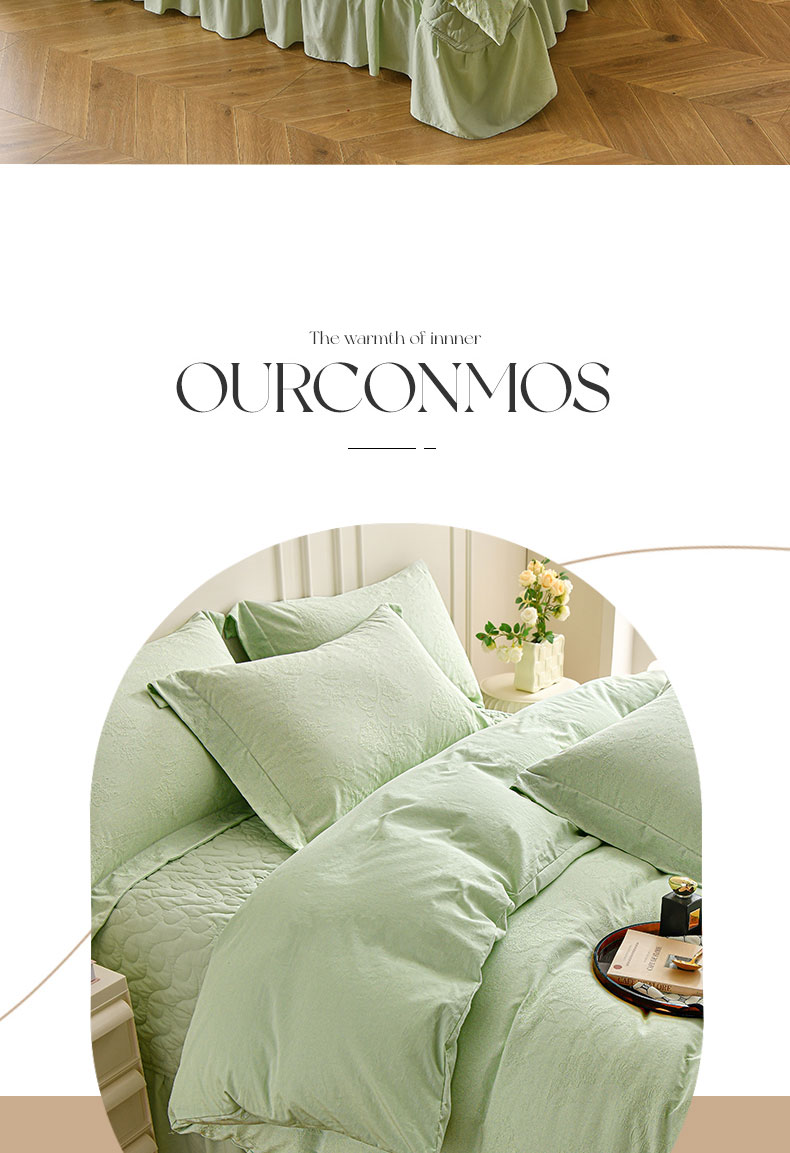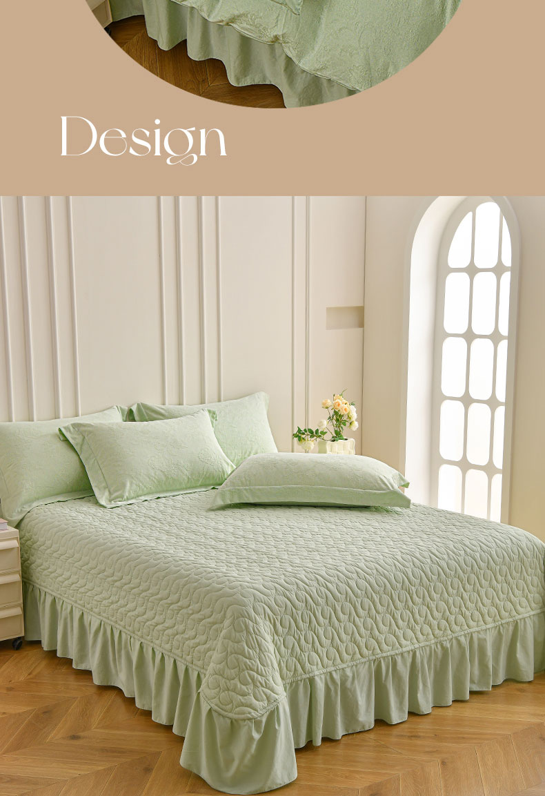 金艾草 2024新款水洗全棉浮雕提花床盖四件套 罗曼-浅绿