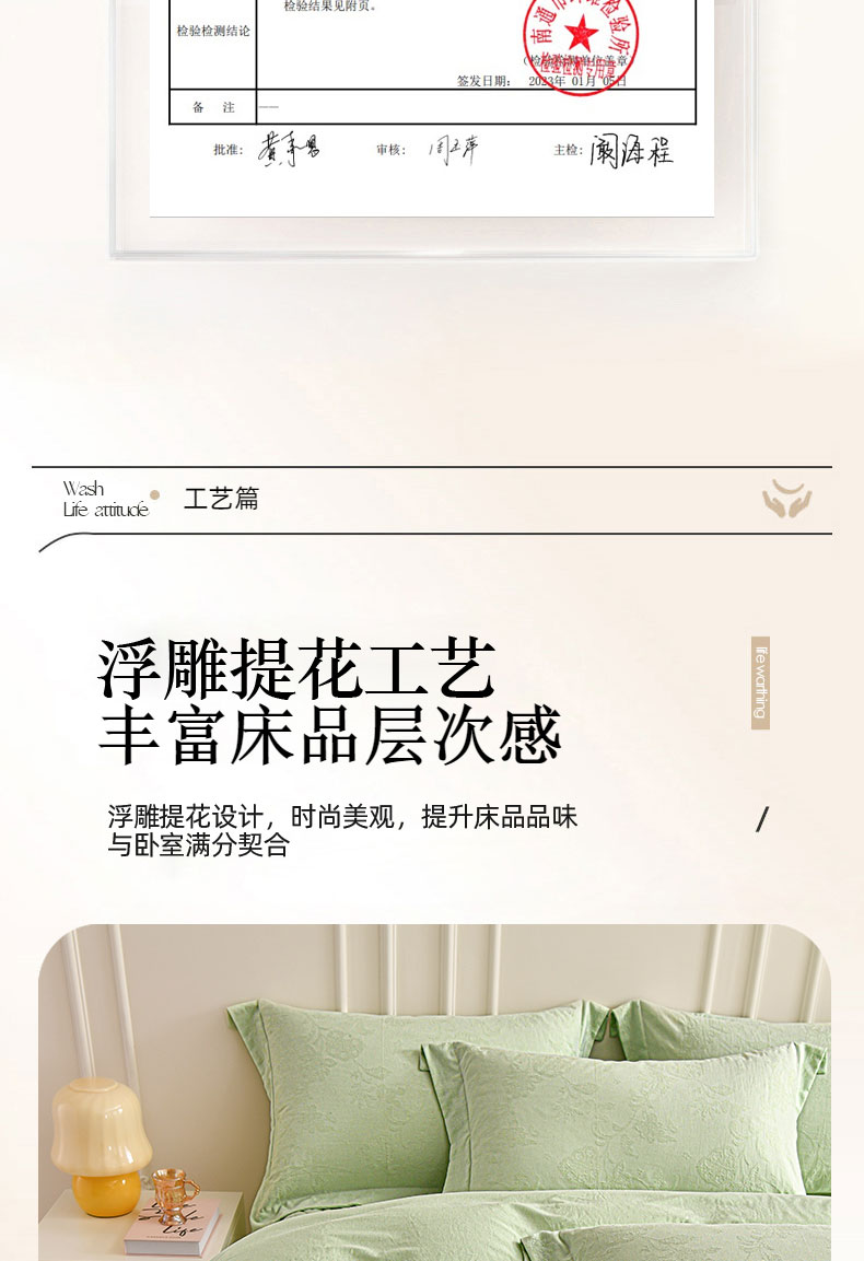 商品名称:金艾草 2024新款水洗全棉浮雕提花床盖四件套 罗曼-浅绿