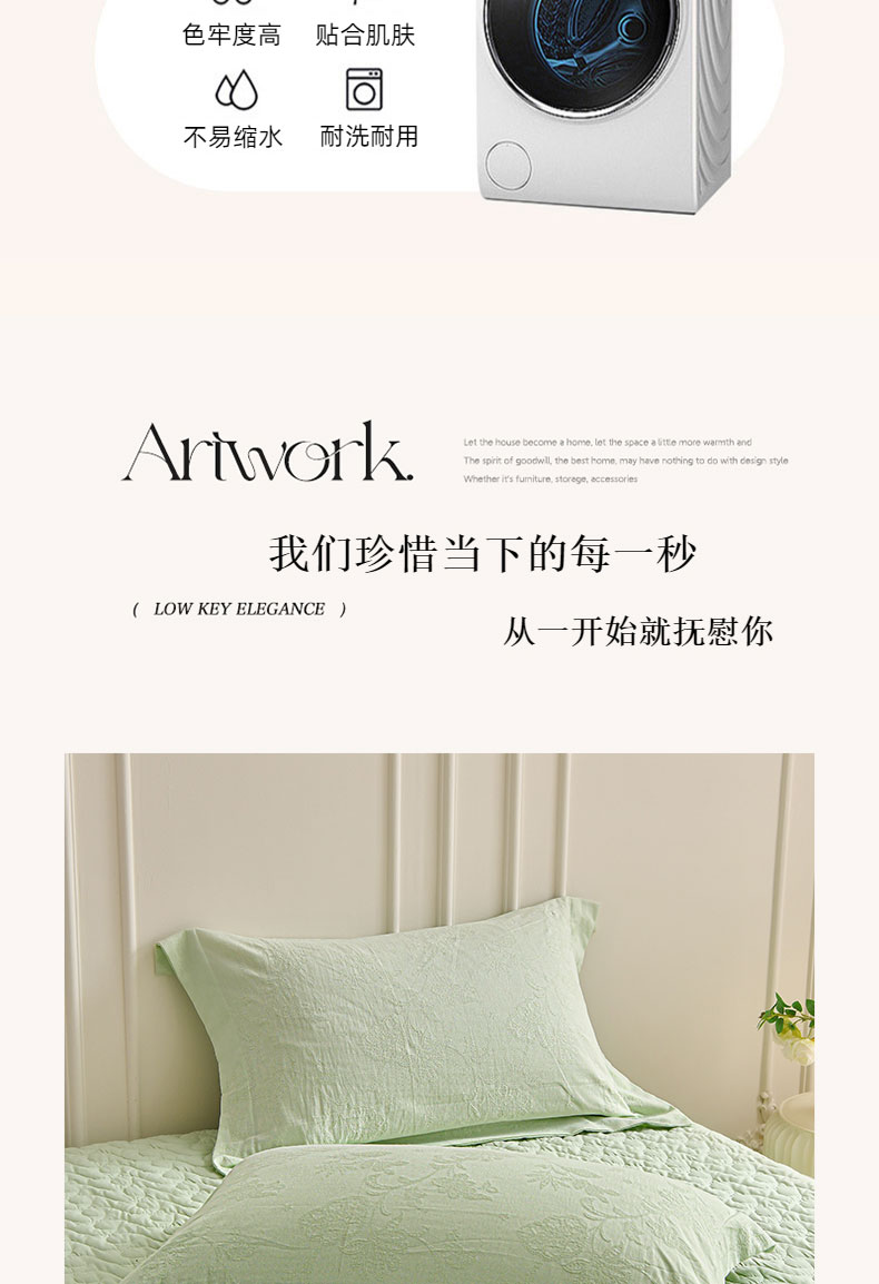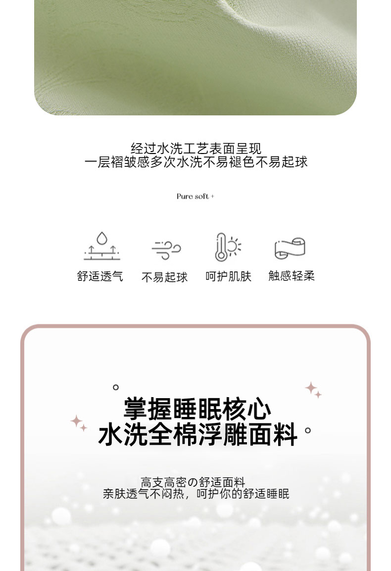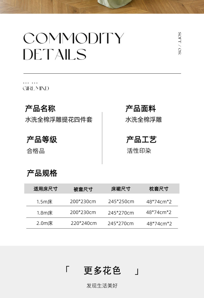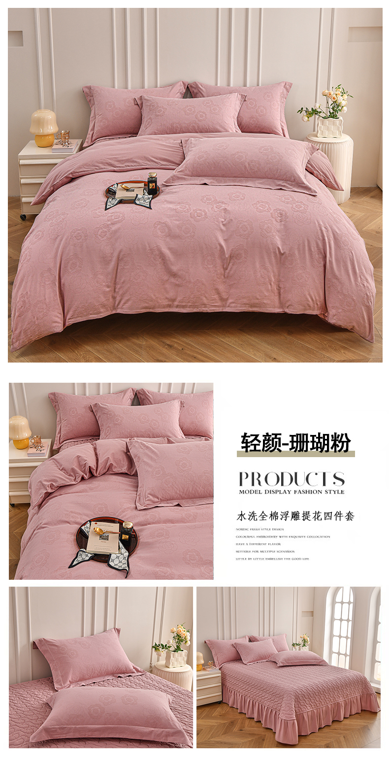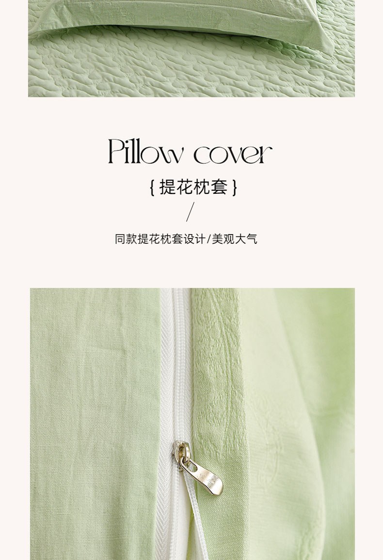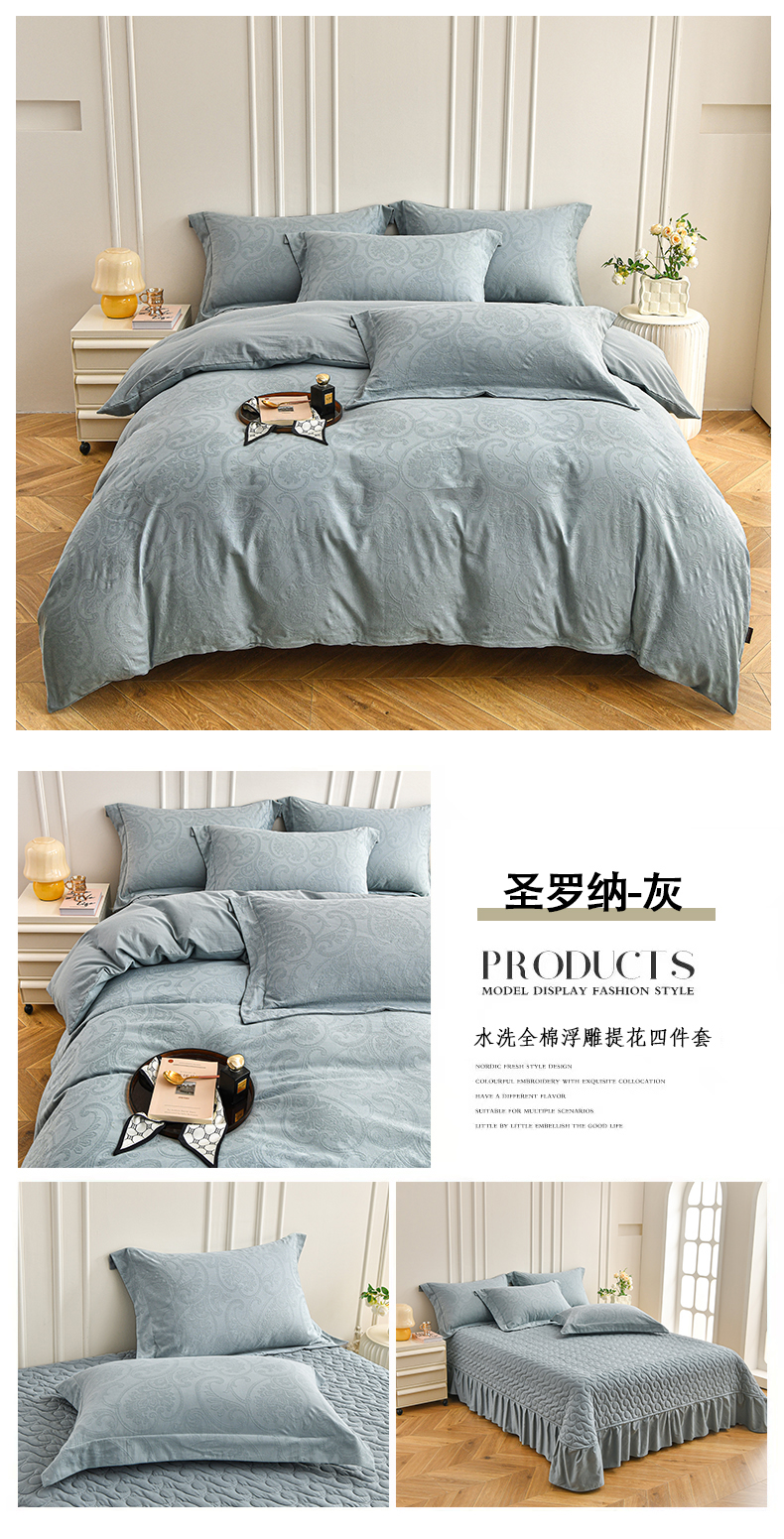 (总)金艾草 2024新款水洗全棉浮雕提花床盖四件套,圣罗纳-灰,片叶情-豆绿,罗曼-浅绿,蜀锦-茉莉白,轻颜-珊瑚粉