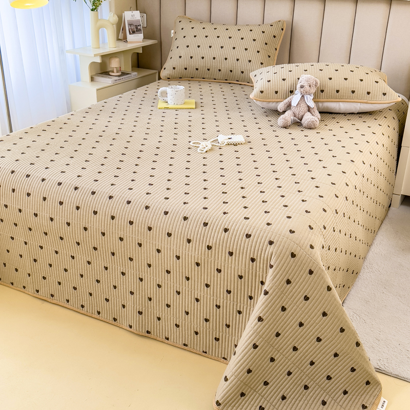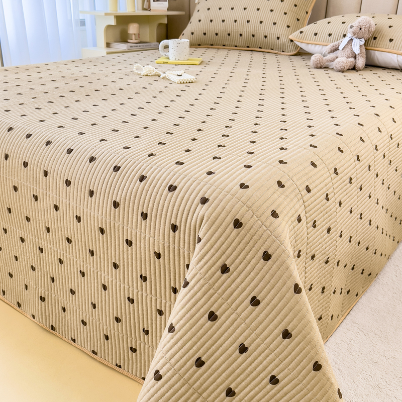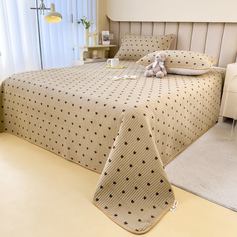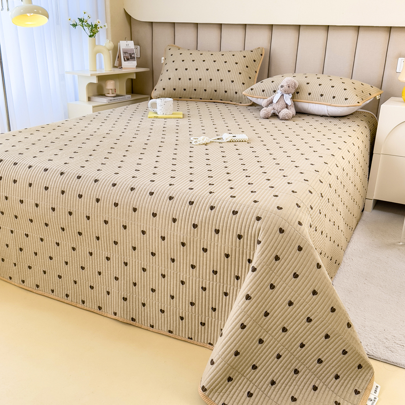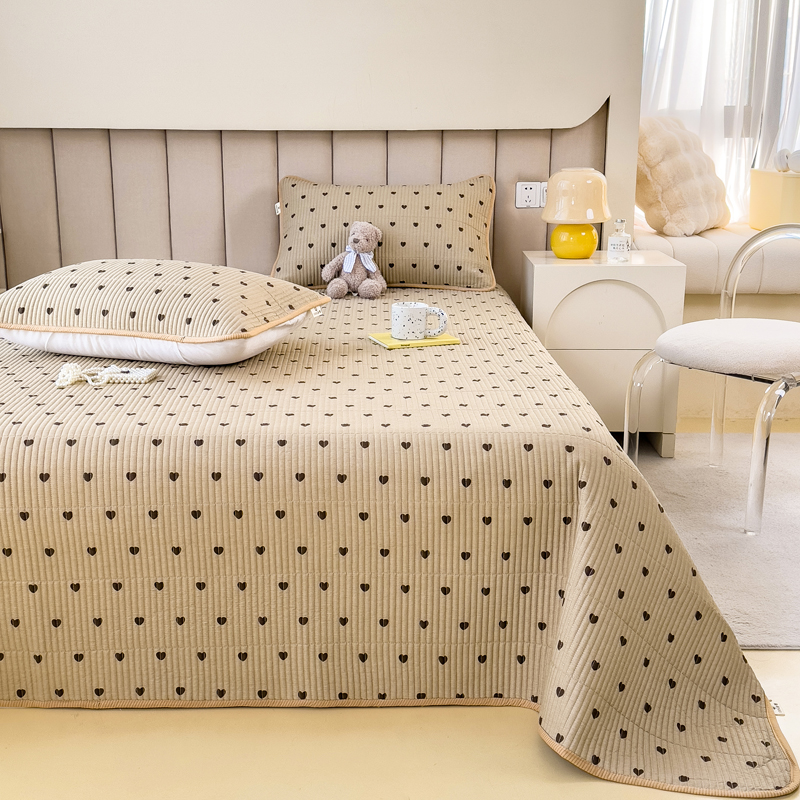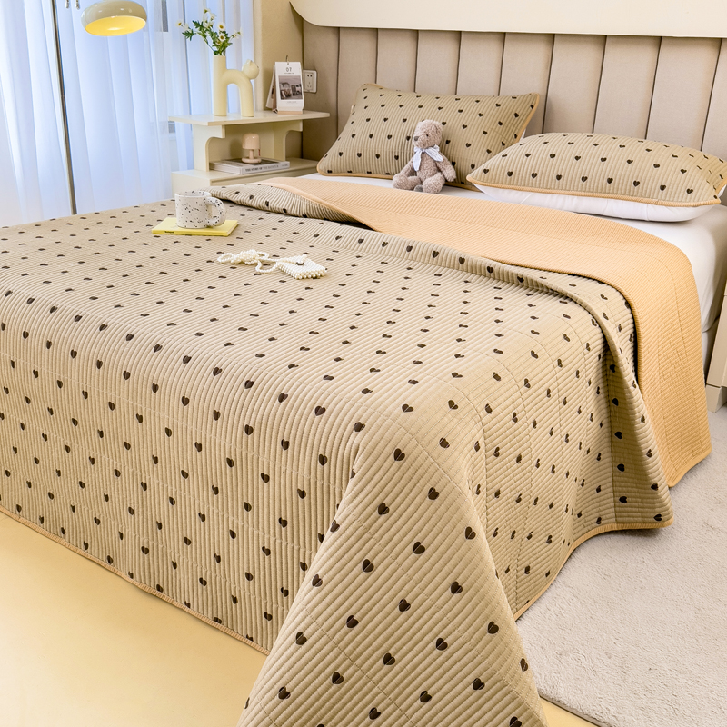 梵朴 2024新款纯棉水洗棉印花床盖 心恋-卡其