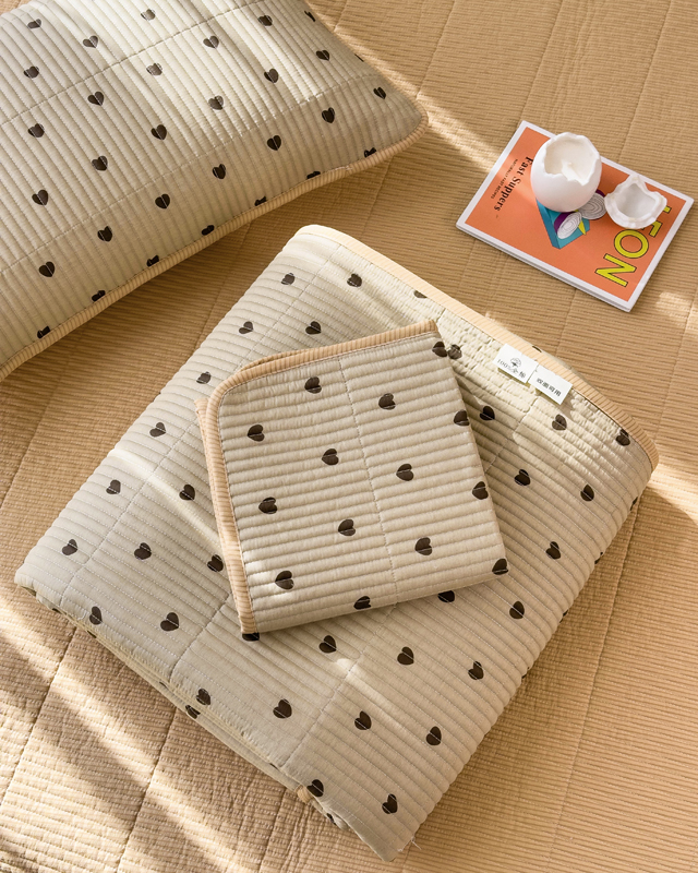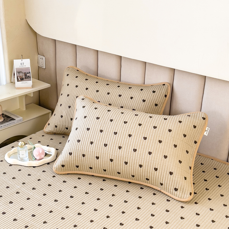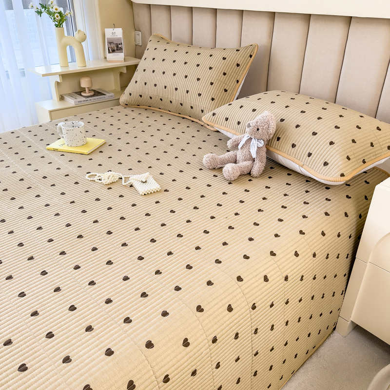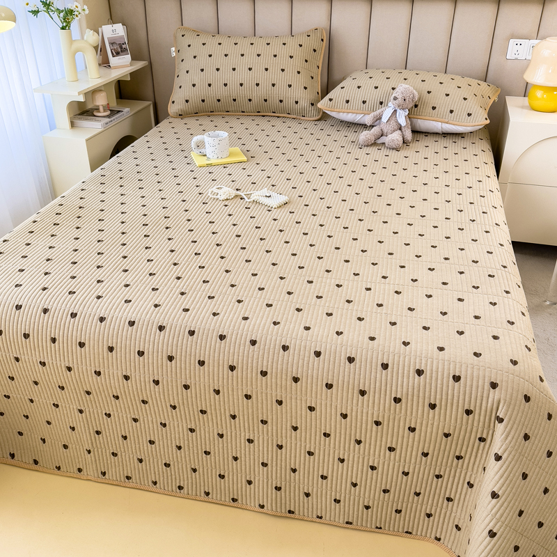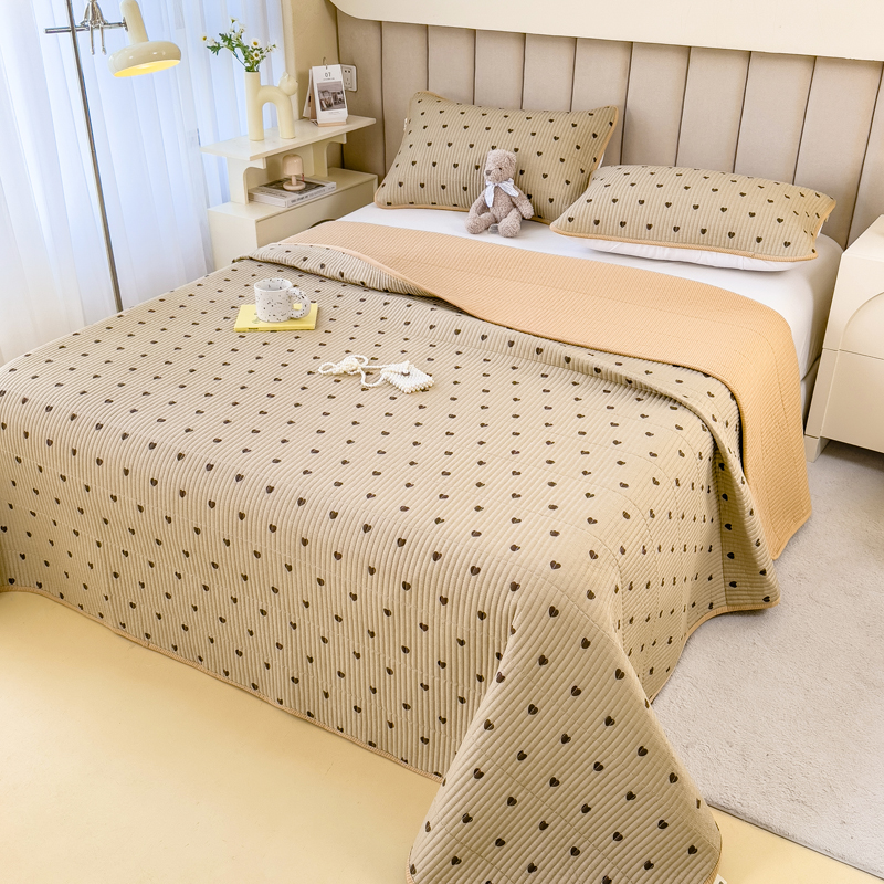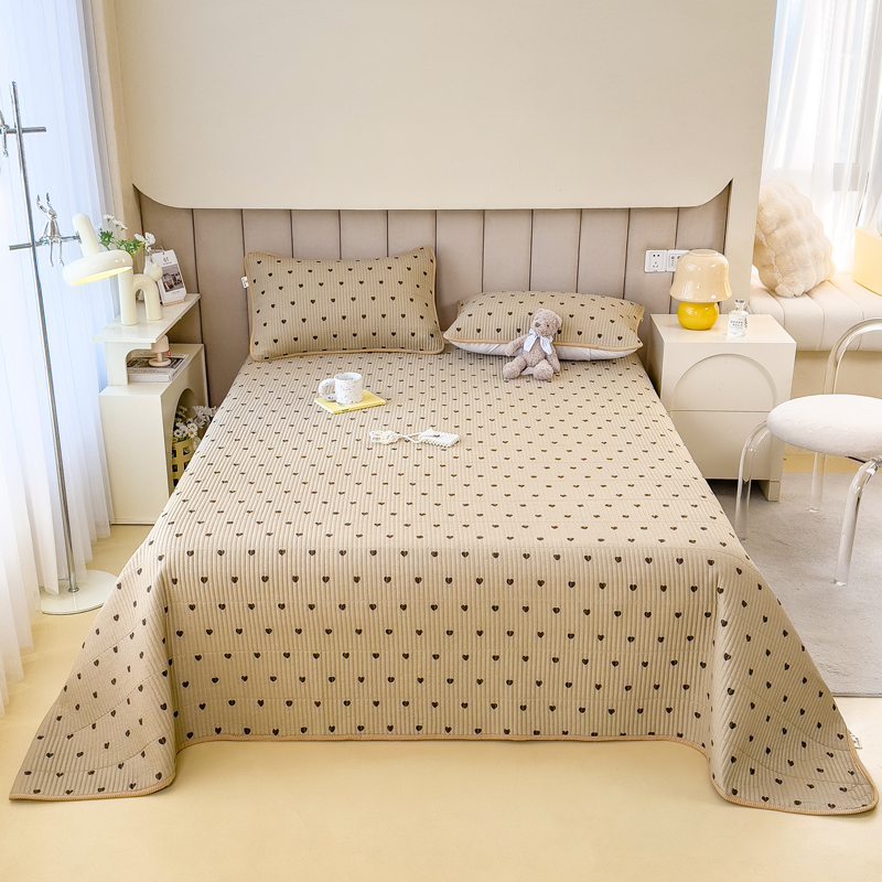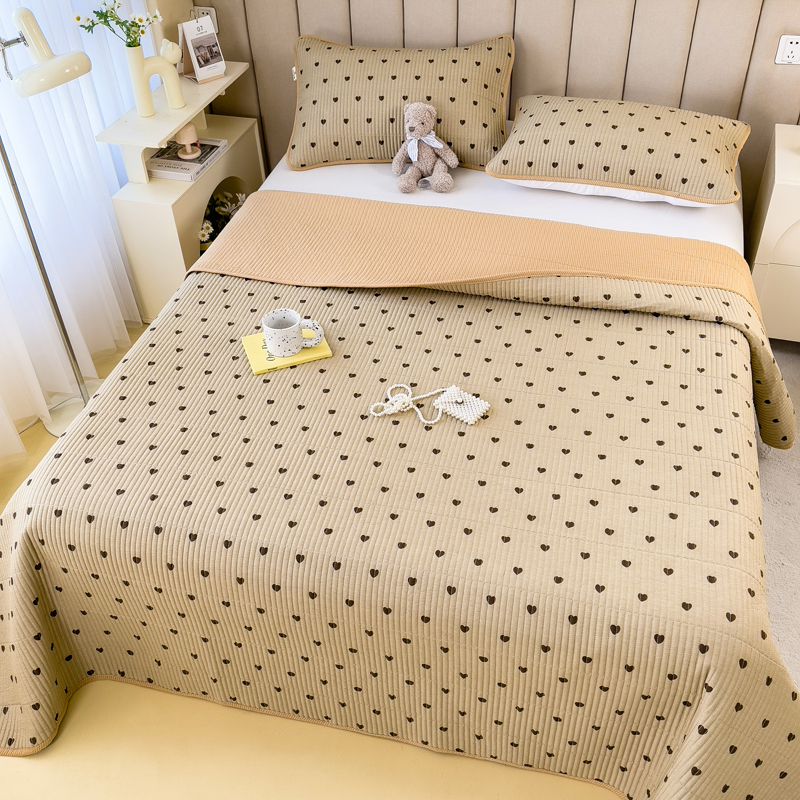 梵朴 2024新款纯棉水洗棉印花床盖 心恋-卡其