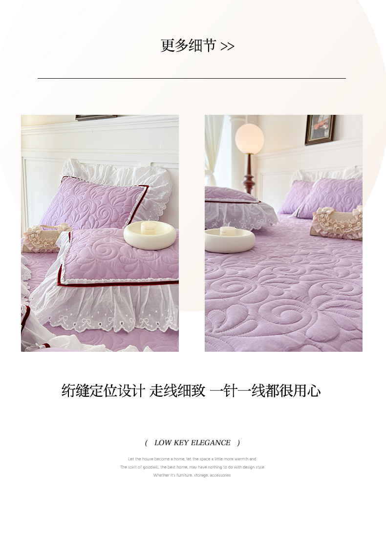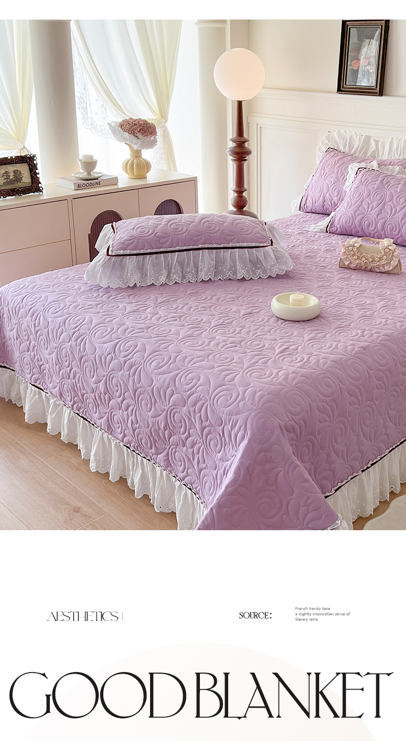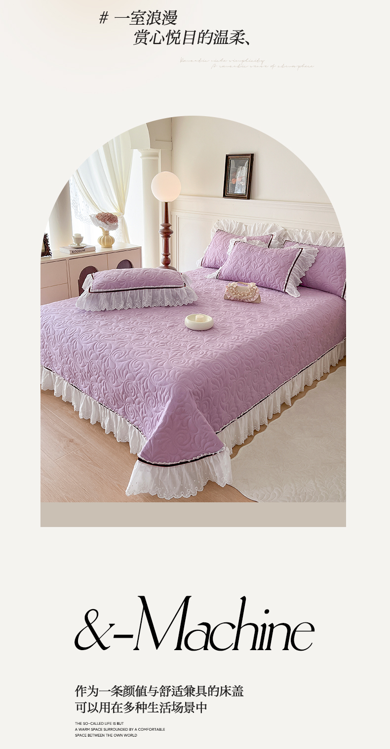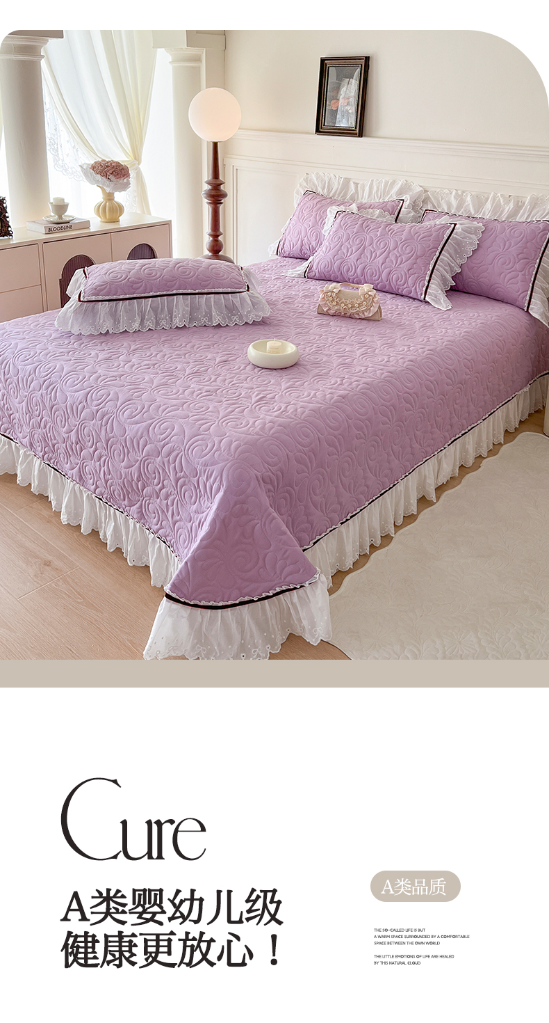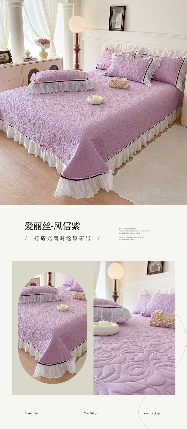 商品名称:麒豆豆 2024新款全棉双层纱花边款爱丽丝系列单床盖 风信紫