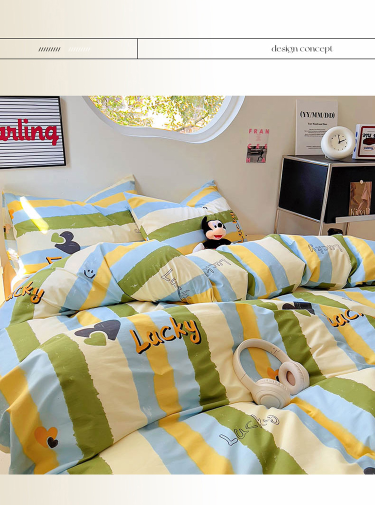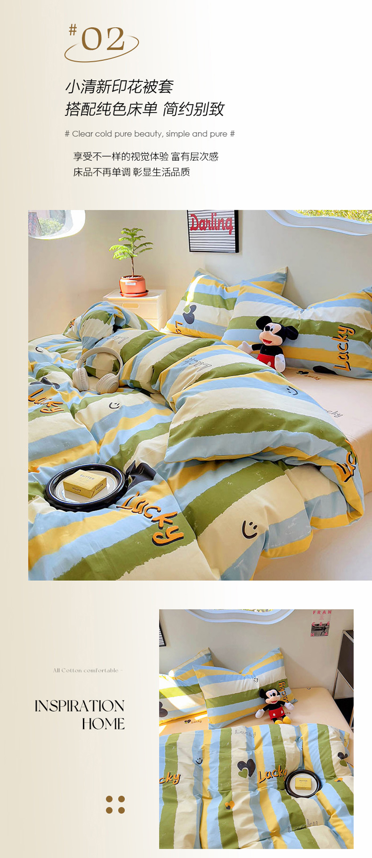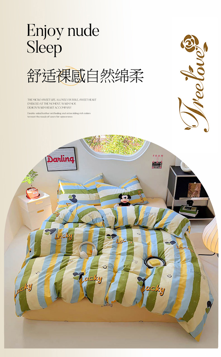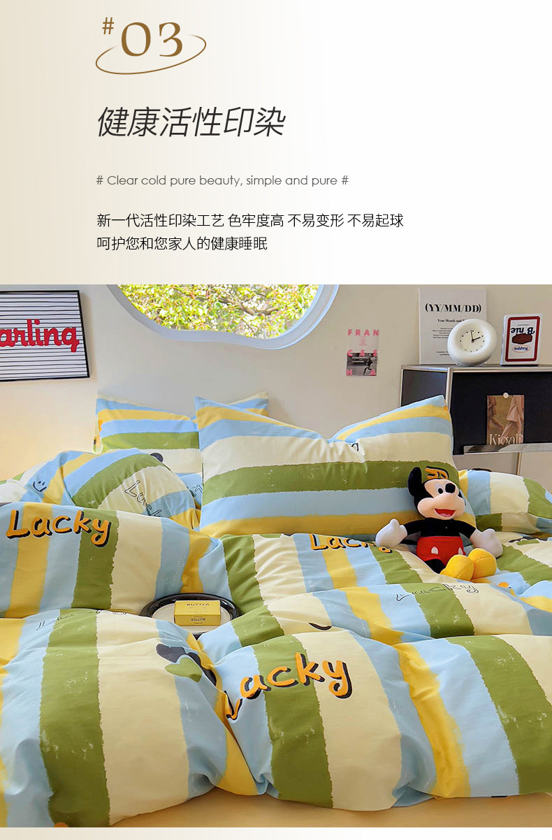 (总)田野 2022新13372全棉印花小清新四件套纯棉床笠,比心,哈喽虎-黄,哈喽虎-蓝,铃兰花,绿茵,梦的旋律,墨璃,晚安虎,印象