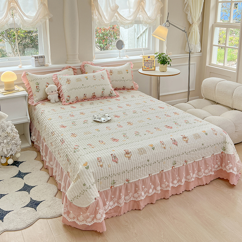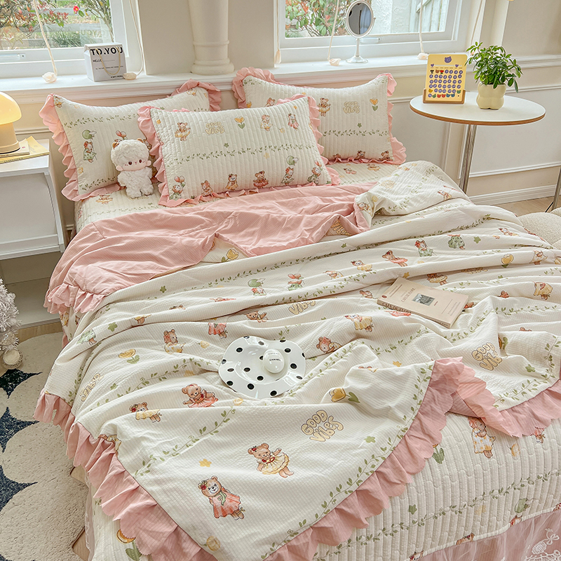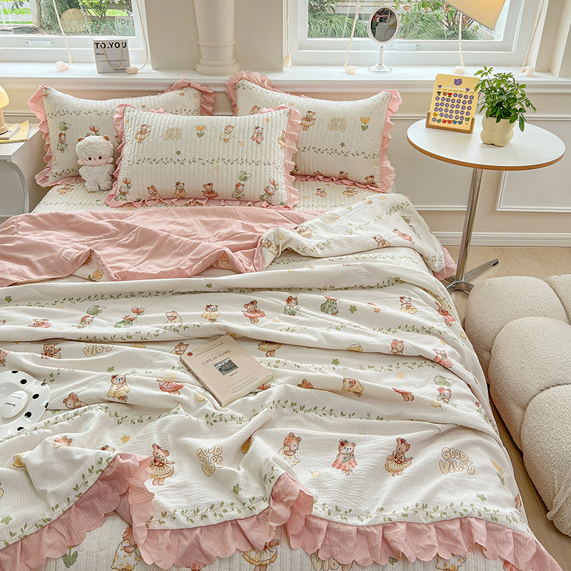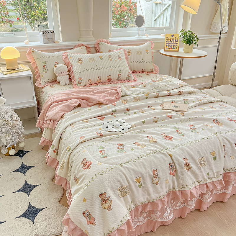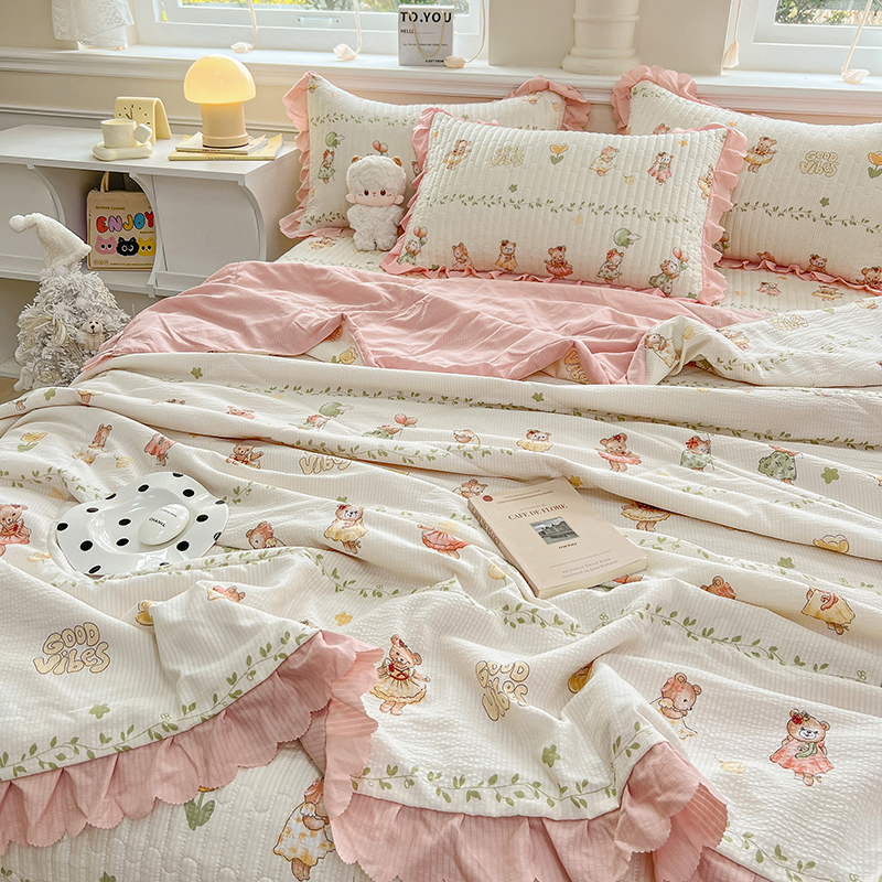 当前位置: 91家纺网 > 商品网购 > 床品套件 > 四件套 > 夏被四件套 > 雅眠居 2024直播爆款泡泡棉床盖款夏被四件套双层蕾丝花边夹棉床裙款三件套 小熊派对