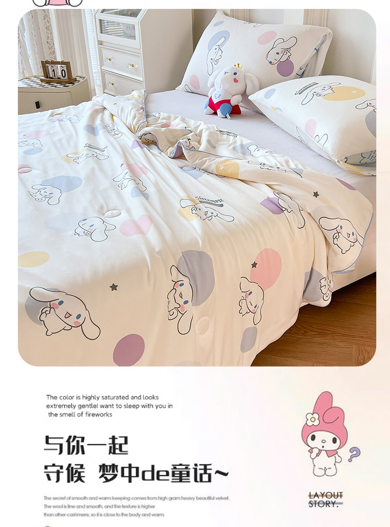 天瑜家纺 2024新款三丽鸥针织夏被 波点玉桂狗