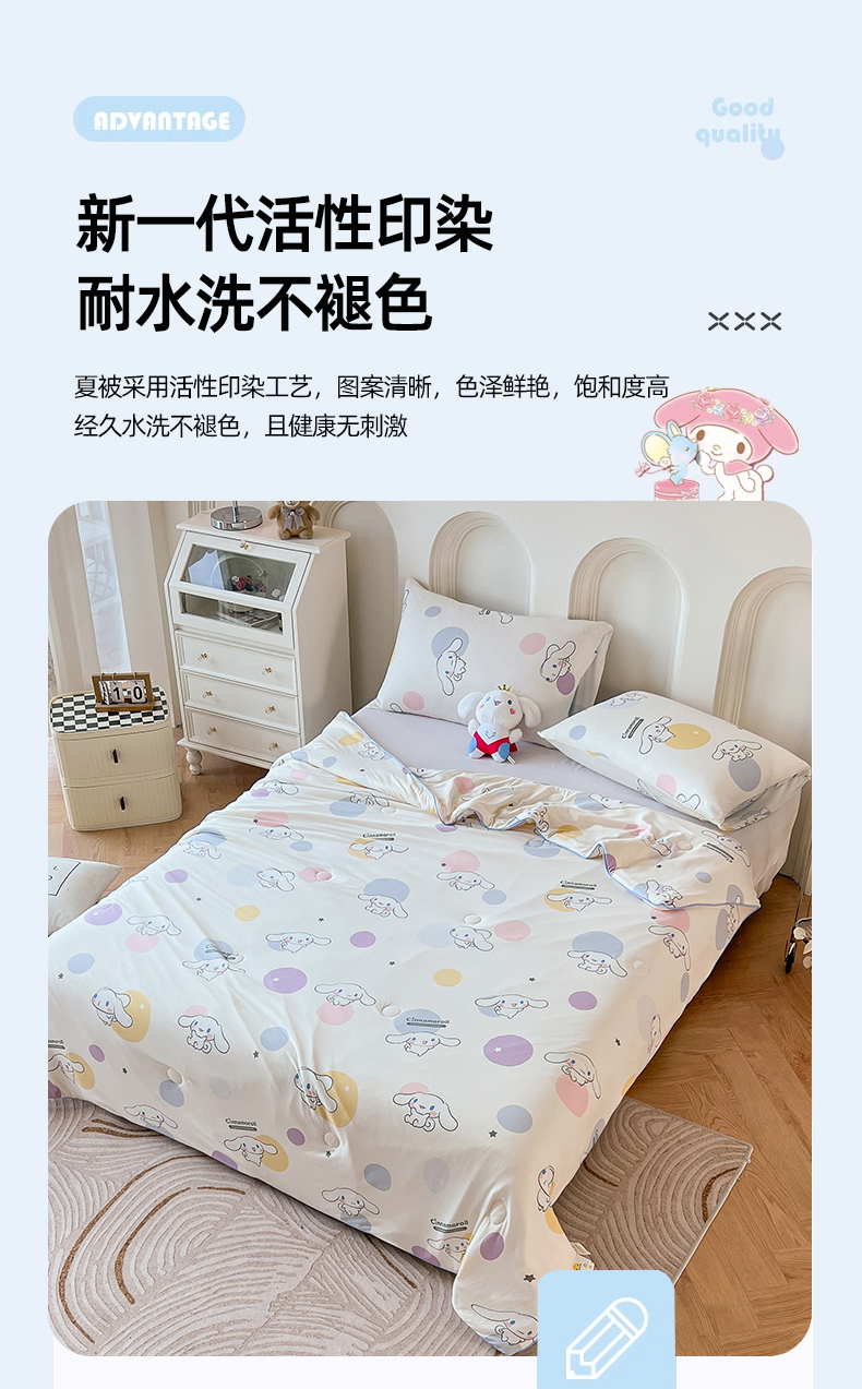 商品名称:天瑜家纺 2024新款三丽鸥针织夏被 波点玉桂狗