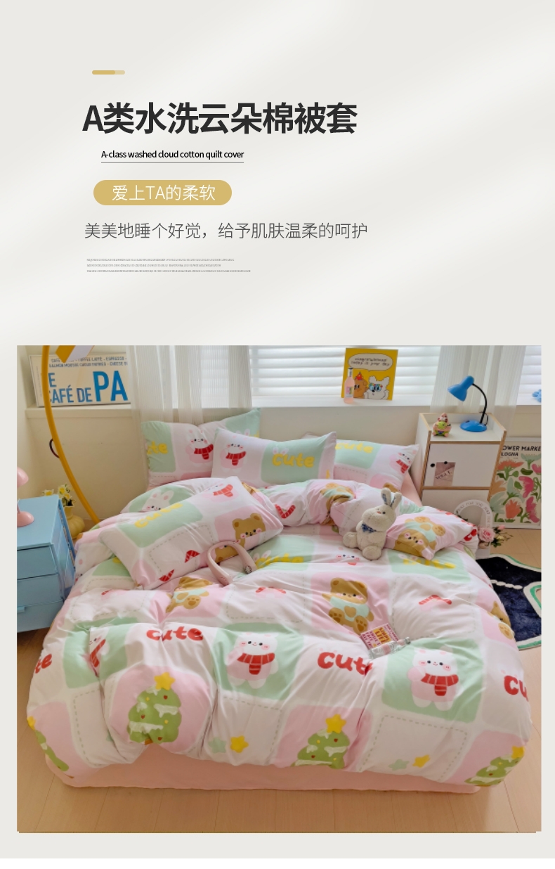 商品名称:慕晨 2024新款A类母婴级水洗云朵棉单被套床上用品卡通儿童宿舍 圣诞小伙伴