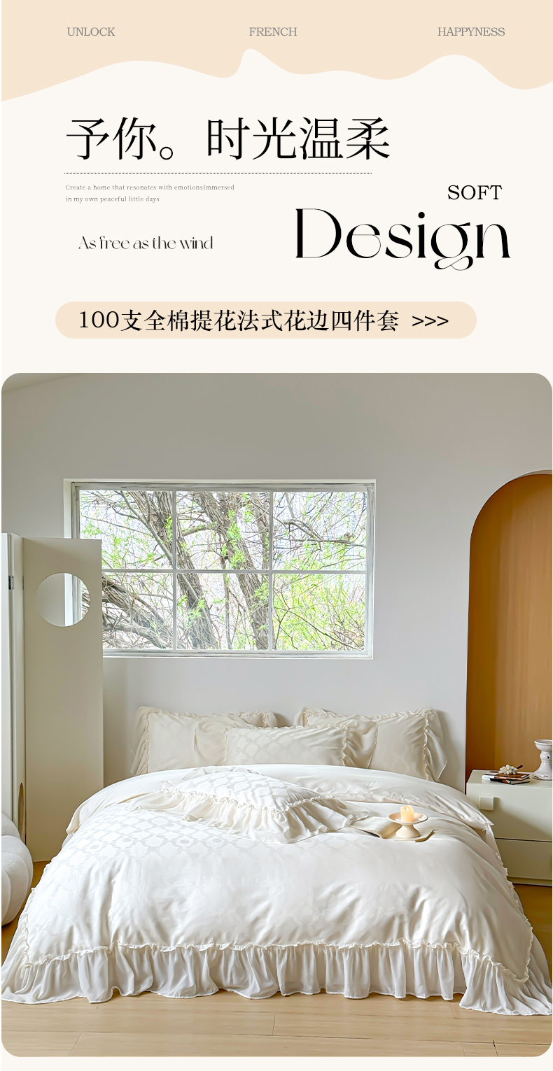 商品名称:宜代光年 2024新款100支全棉提花系列 蝴蝶结与玫瑰