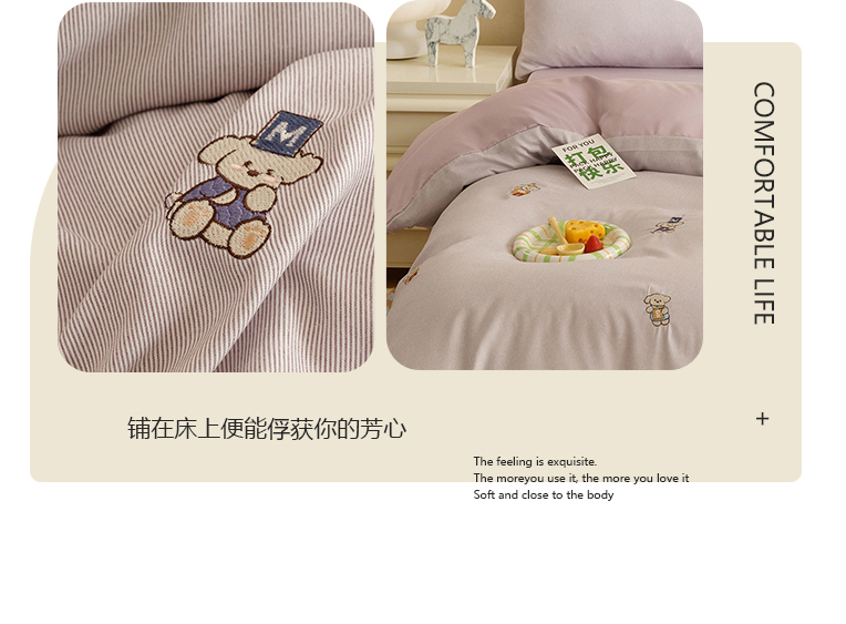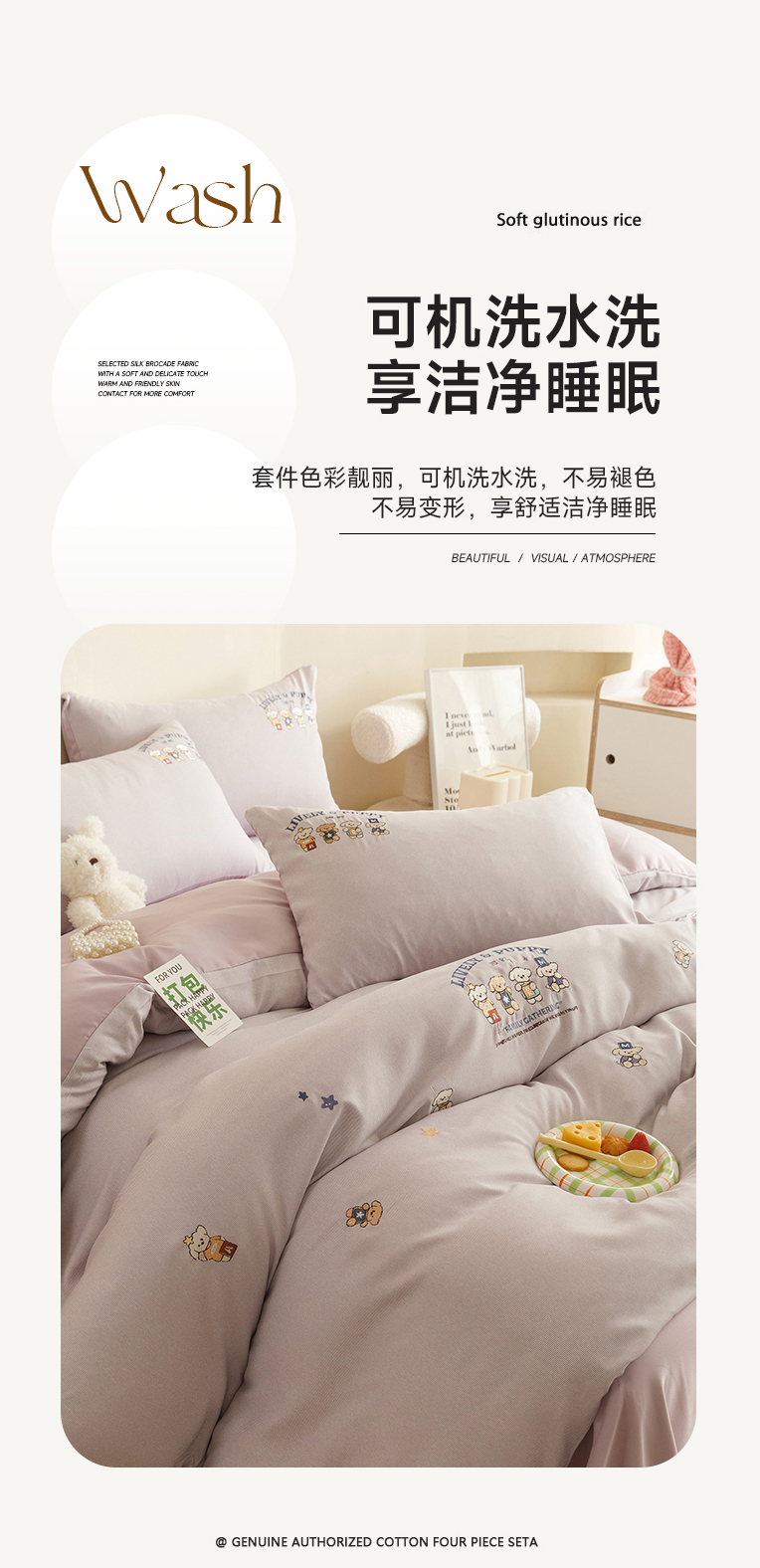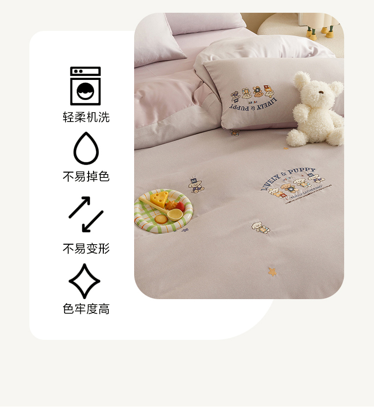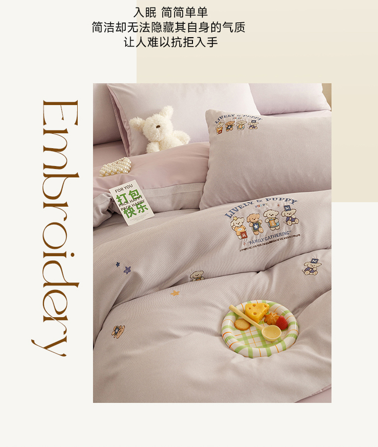 (总) 狂想家 2025新款牛奶绒毛巾绣四件套,可爱桔,甜美兔,小恐龙,幸运草,幸运蛋糕