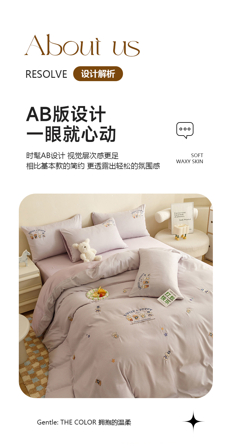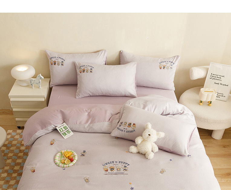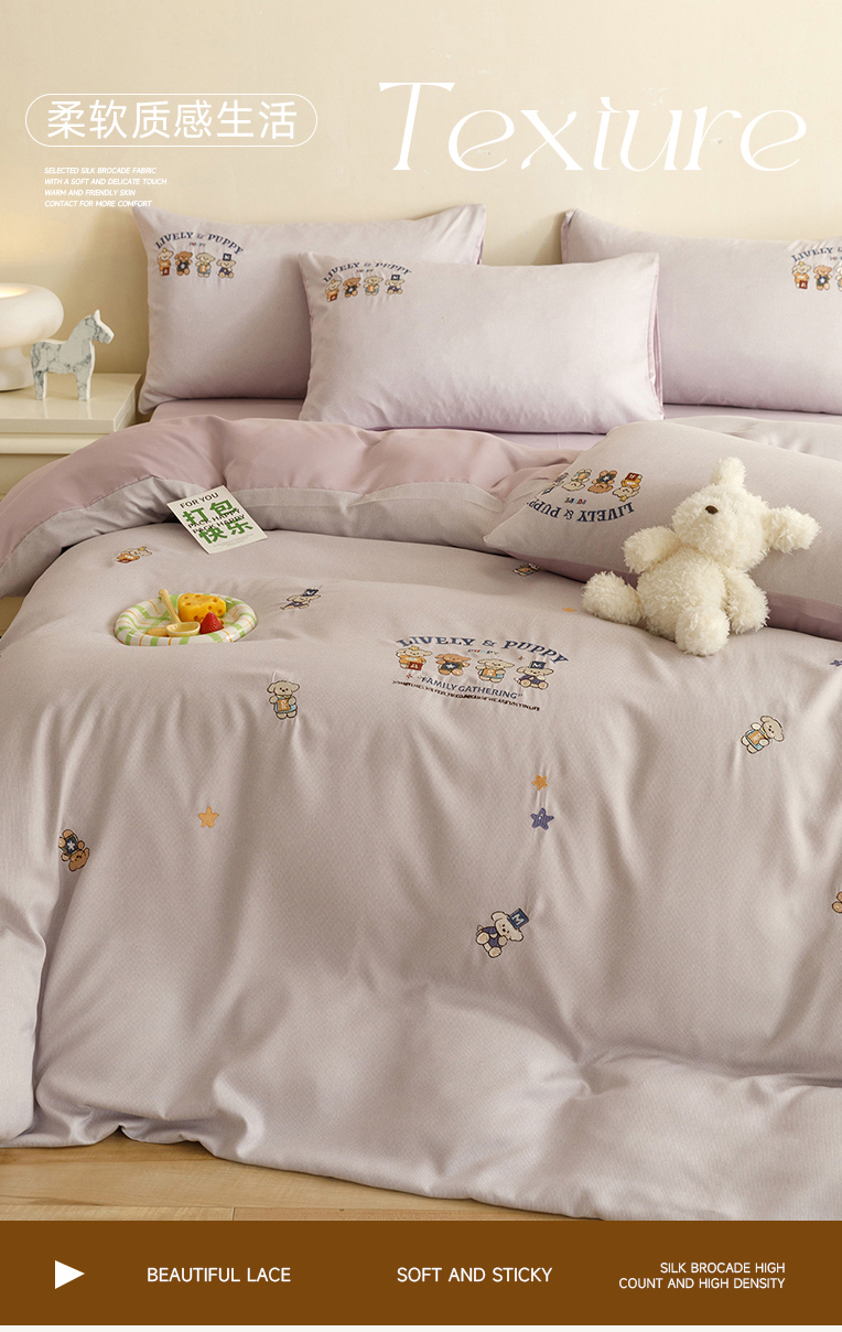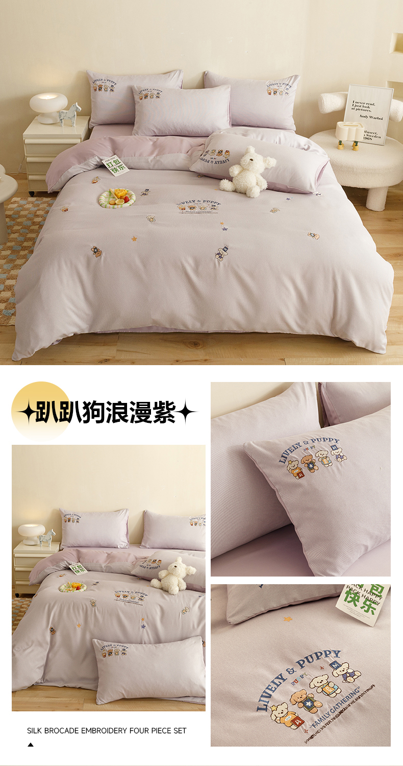 商品名称:狂想家 2025新款丝锦缎刺绣四件套 趴趴狗浪漫紫