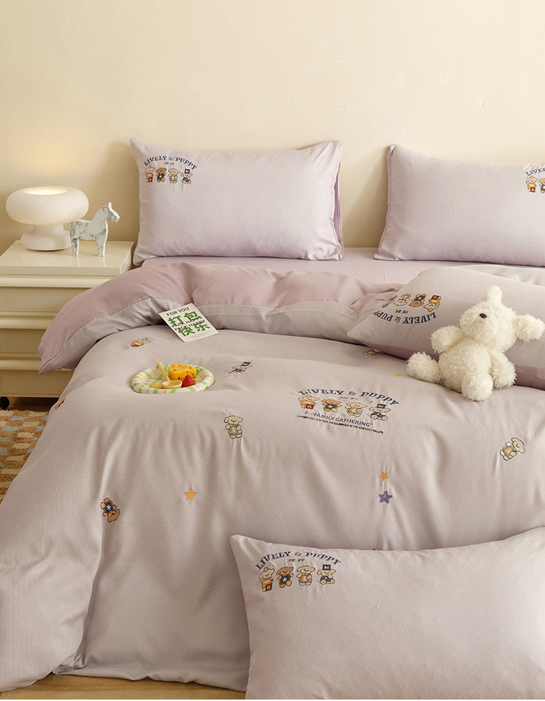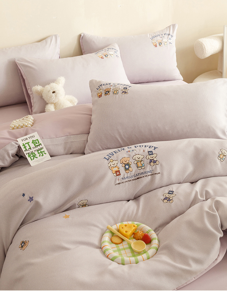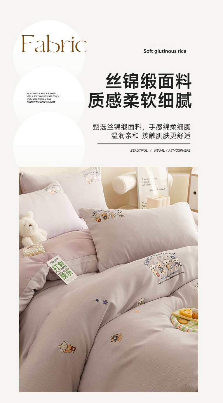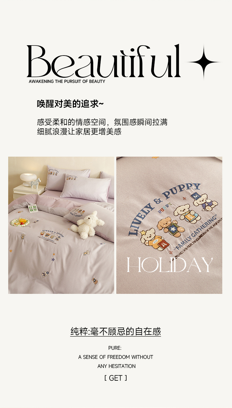 商品名称:狂想家 2025新款丝锦缎刺绣四件套 趴趴狗浪漫紫