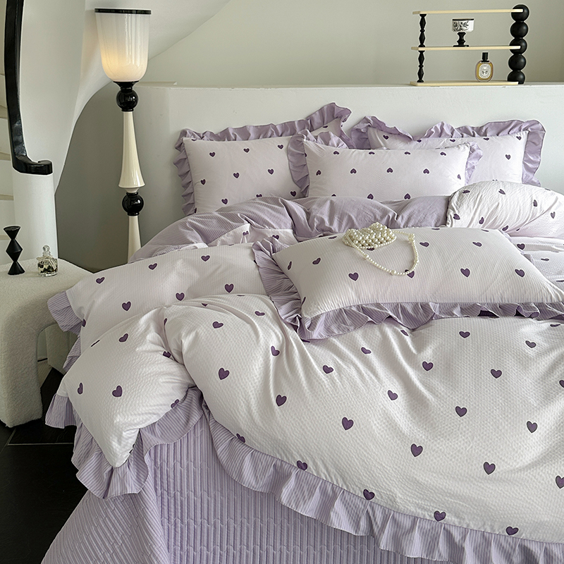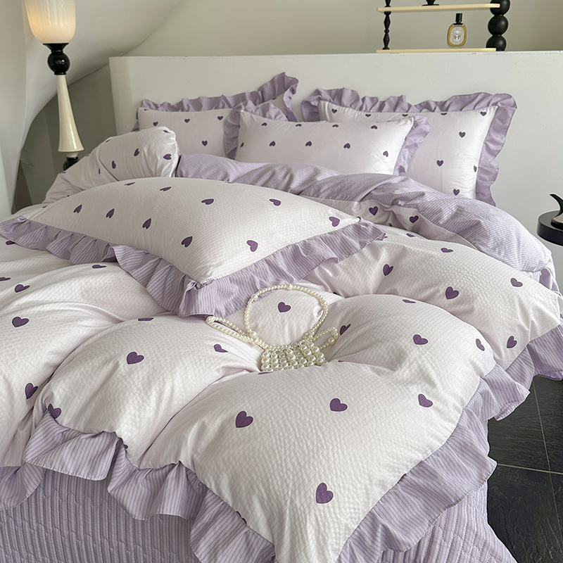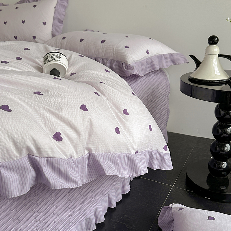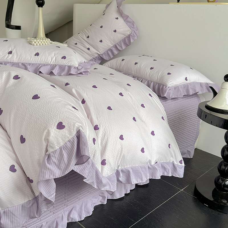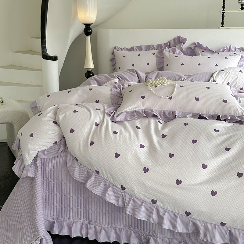 富瑞阁 2024新款A类泡泡棉床盖款法式花边四件套 爱心紫