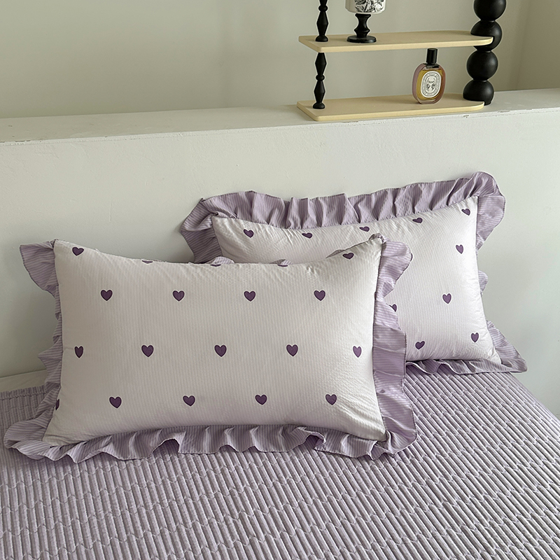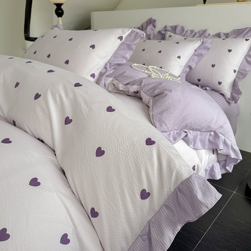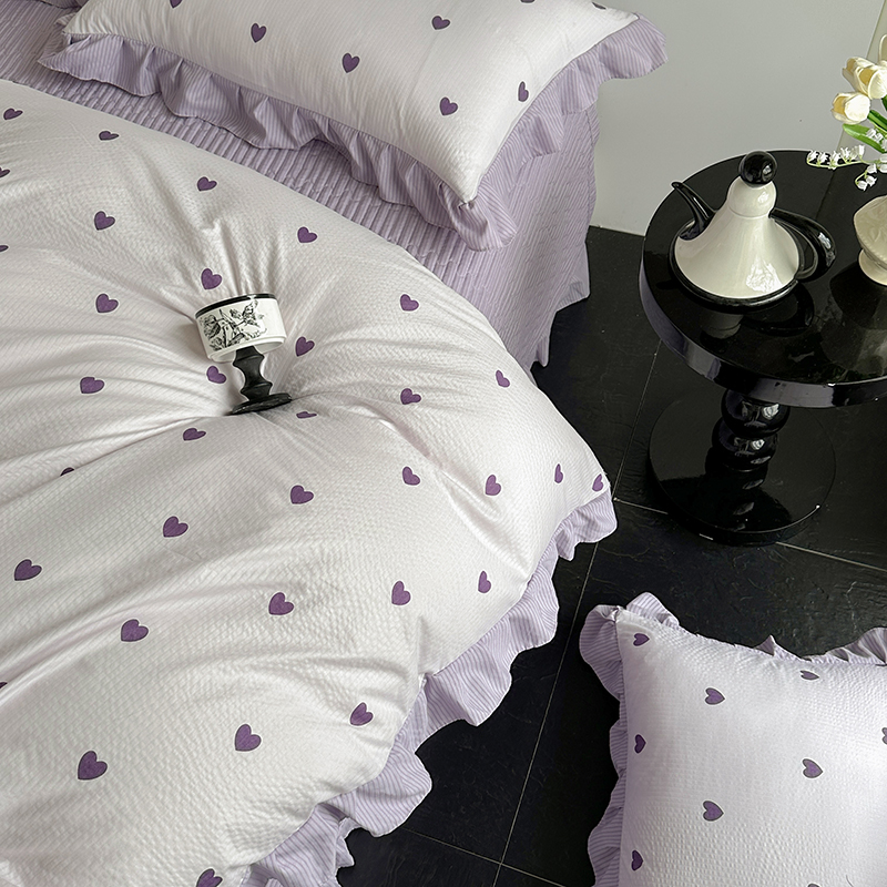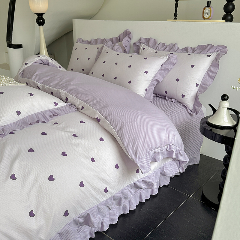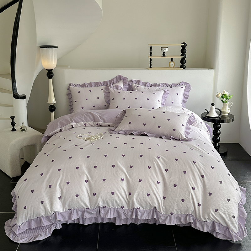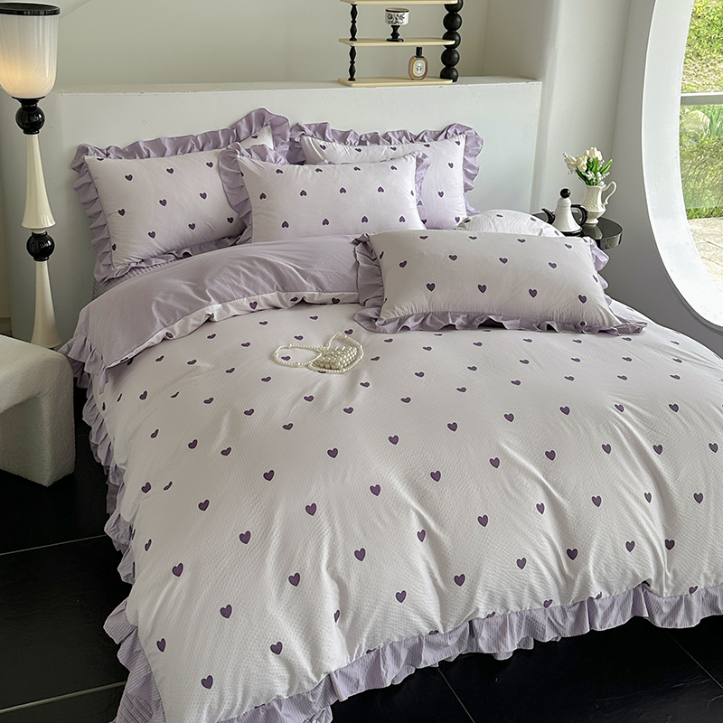富瑞阁 2024新款A类泡泡棉床盖款法式花边四件套 爱心紫