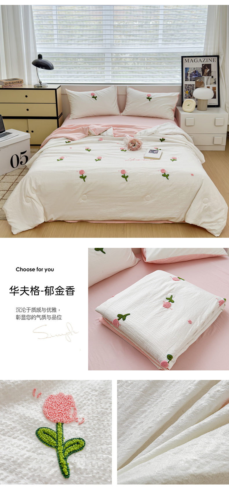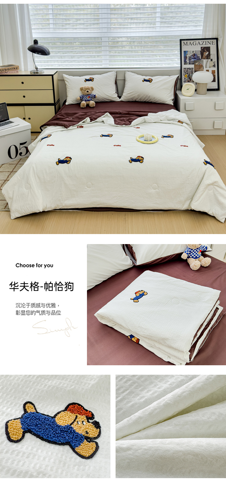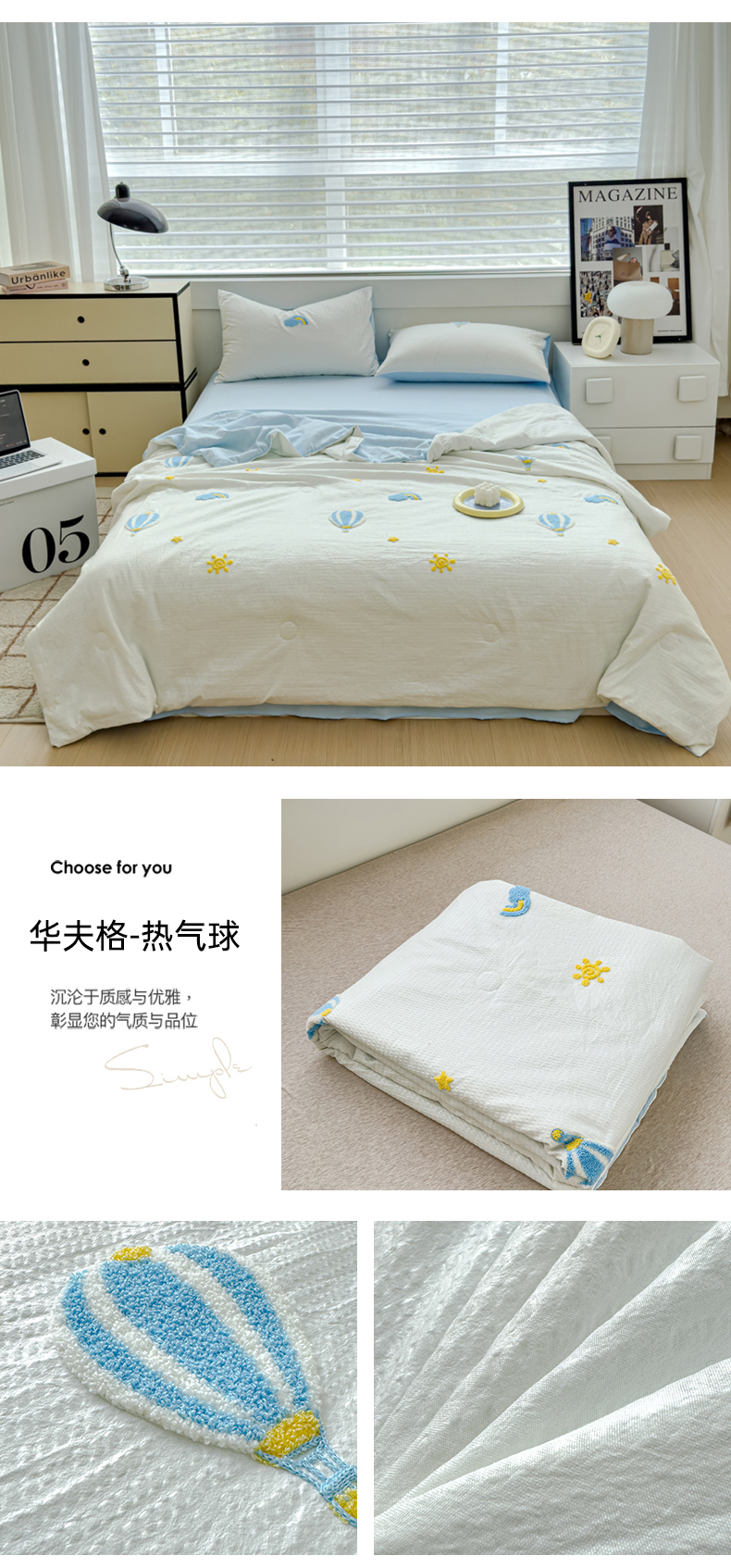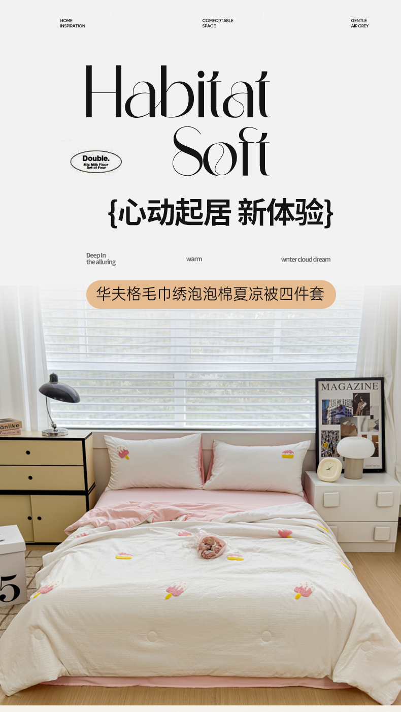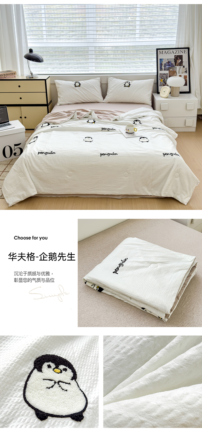 商品名称:(总)红嘴企鹅 2025新款华夫格水洗棉毛巾绣泡泡棉夏凉被四件套