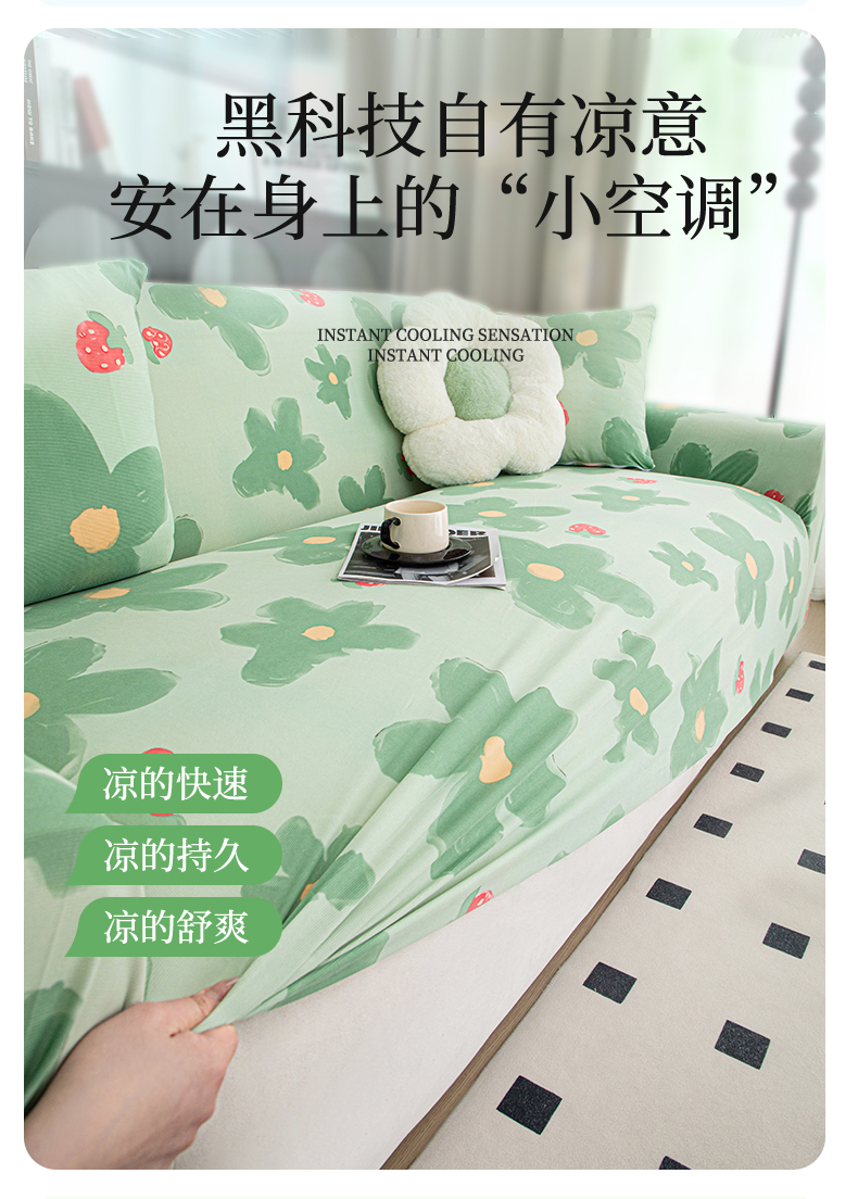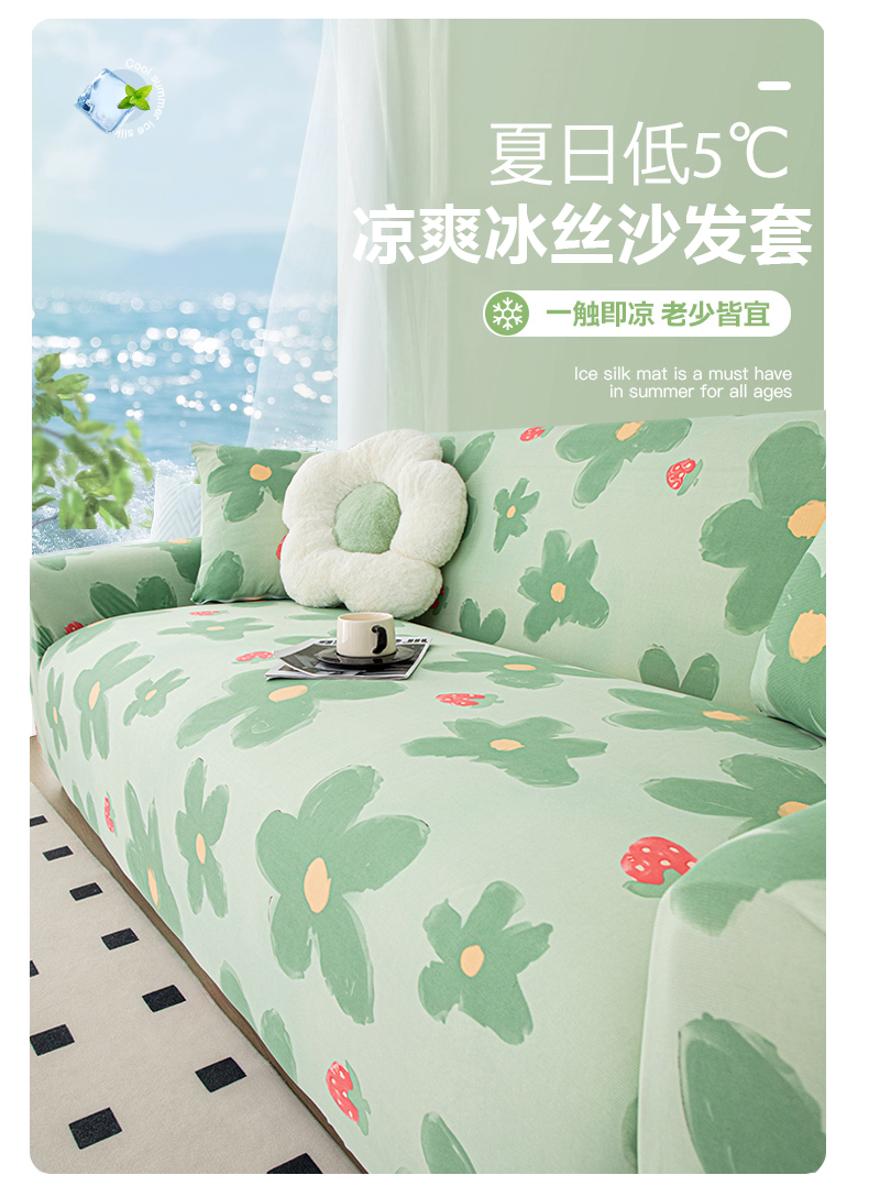 沐沐家纺 2026新款冰丝印花沙发套 蒲公英