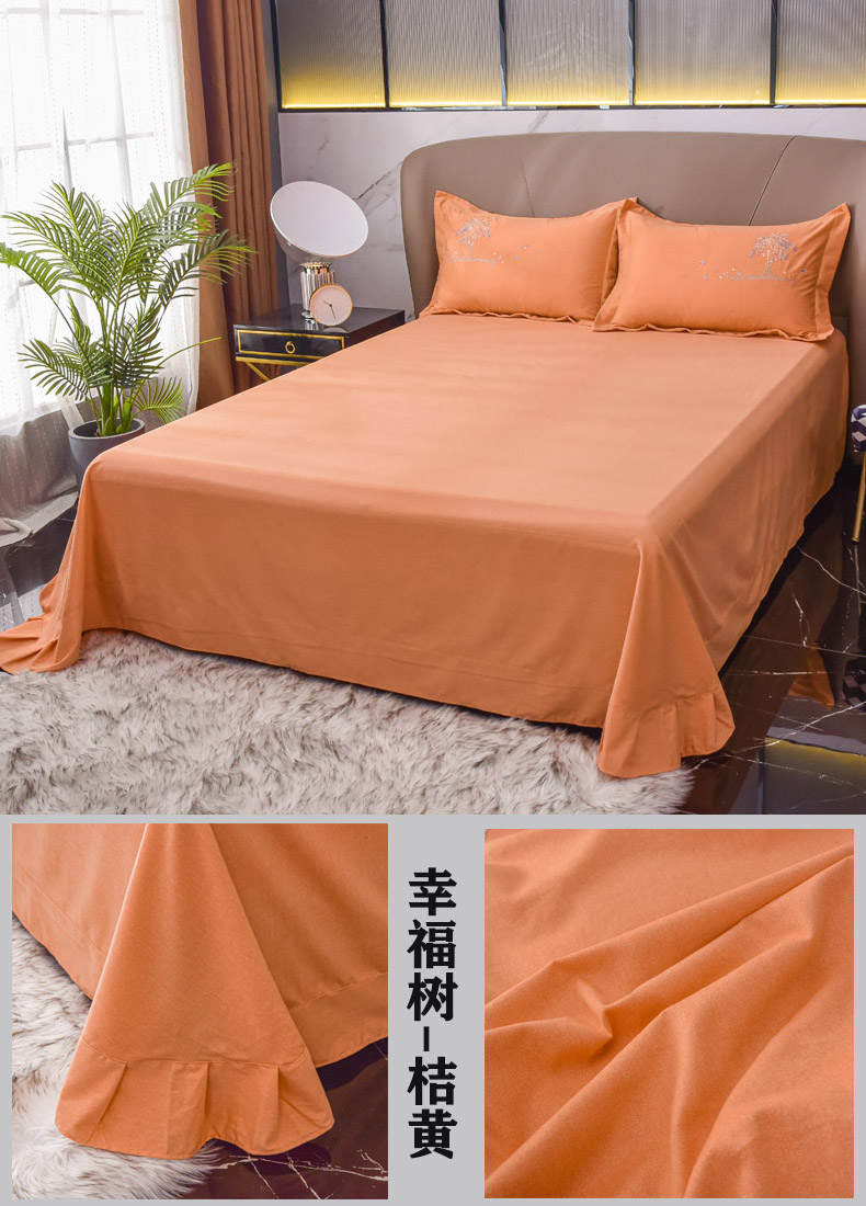 商品名称:艾迪尚家纺 2025新款纯色生态磨毛绣花单床单 幸福树-桔黄