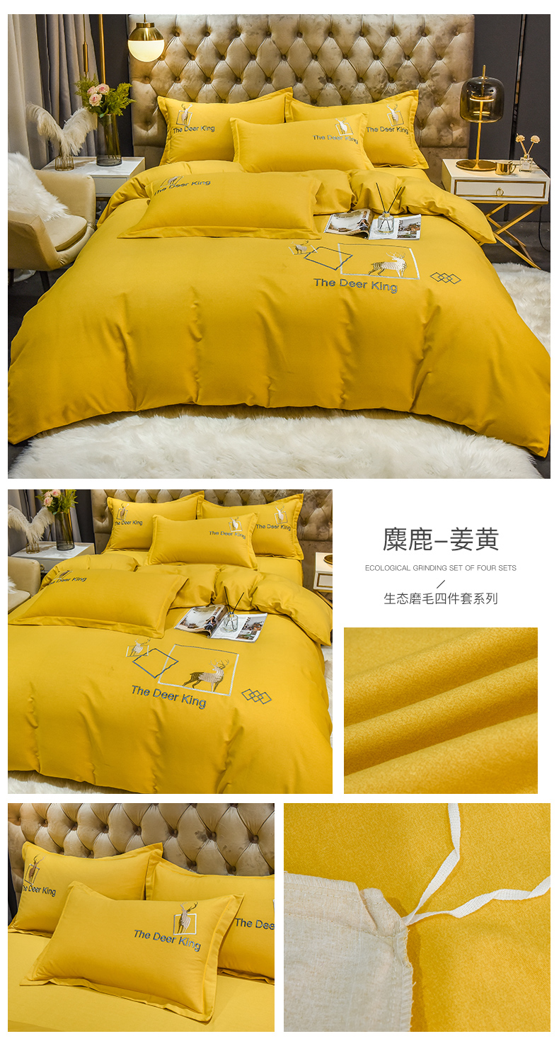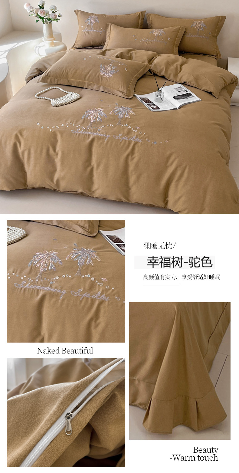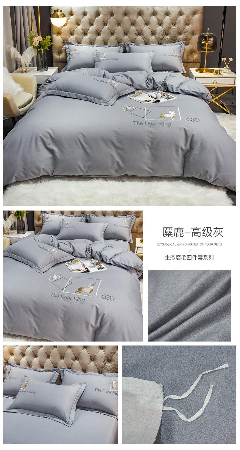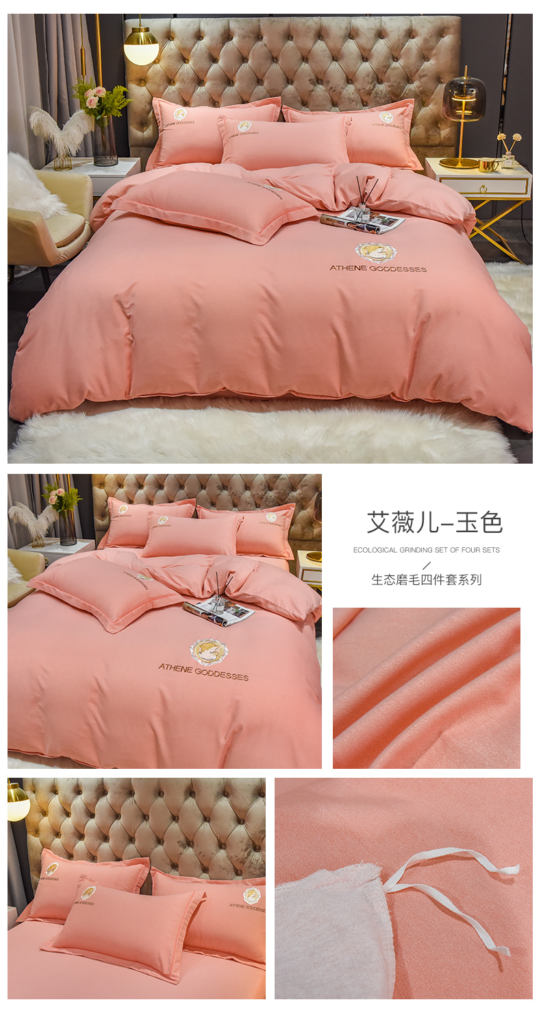 (总)艾迪尚家纺 2025新款纯色生态磨毛绣花四件套