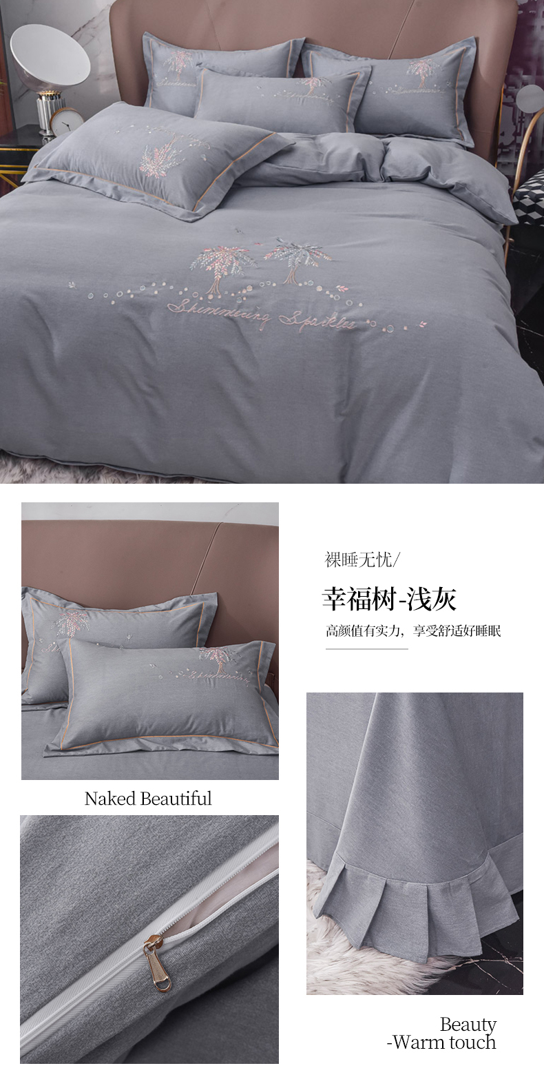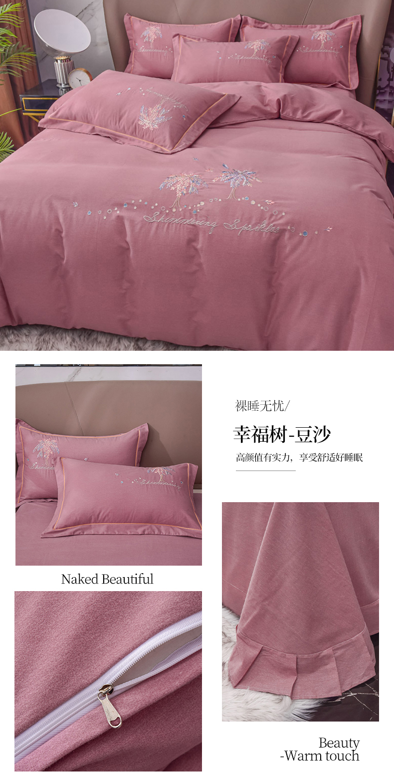商品名称:(总)艾迪尚家纺 2025新款纯色生态磨毛绣花四件套