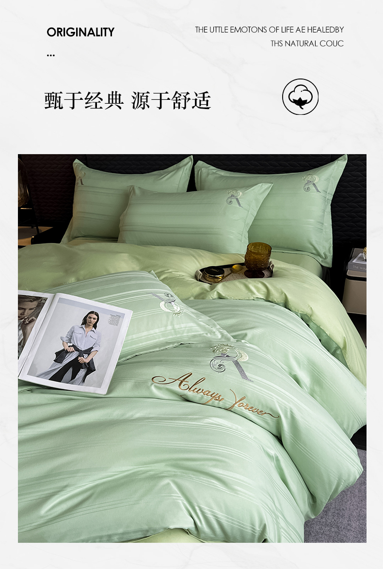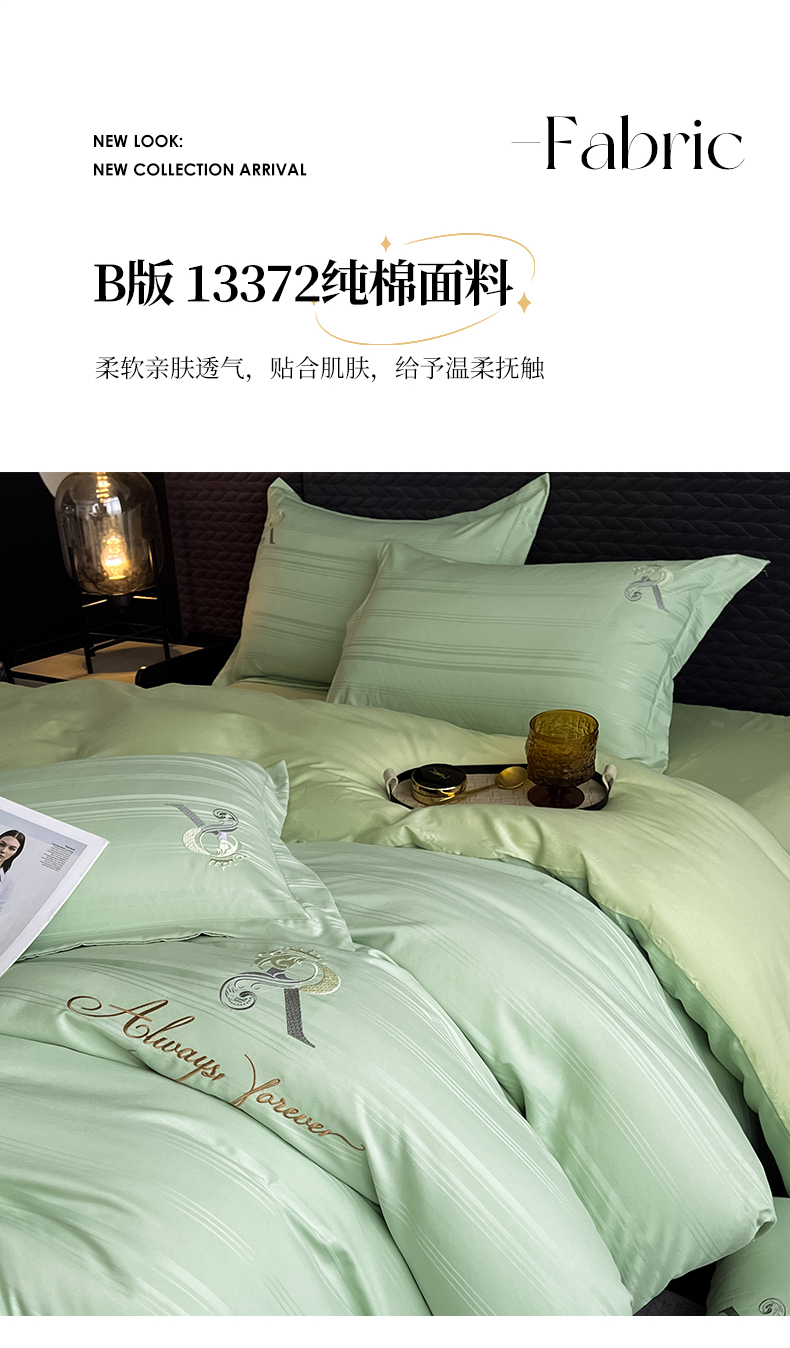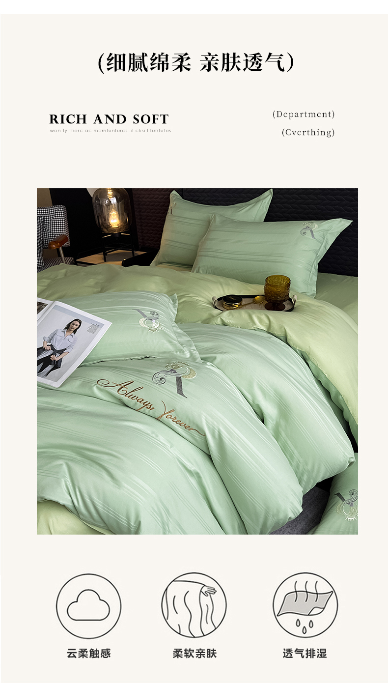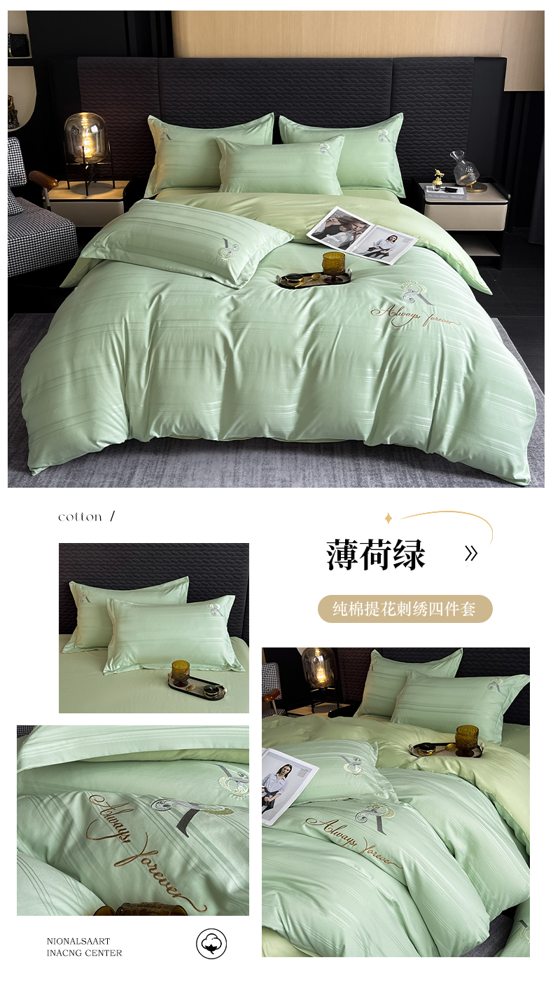 当前位置: 91家纺网 > 商品网购 > 床品套件 > 四件套 > 全棉普通四件套 > 韩秀家纺 2024新款纯棉刺绣提花四件套-遇见 遇见-薄荷绿