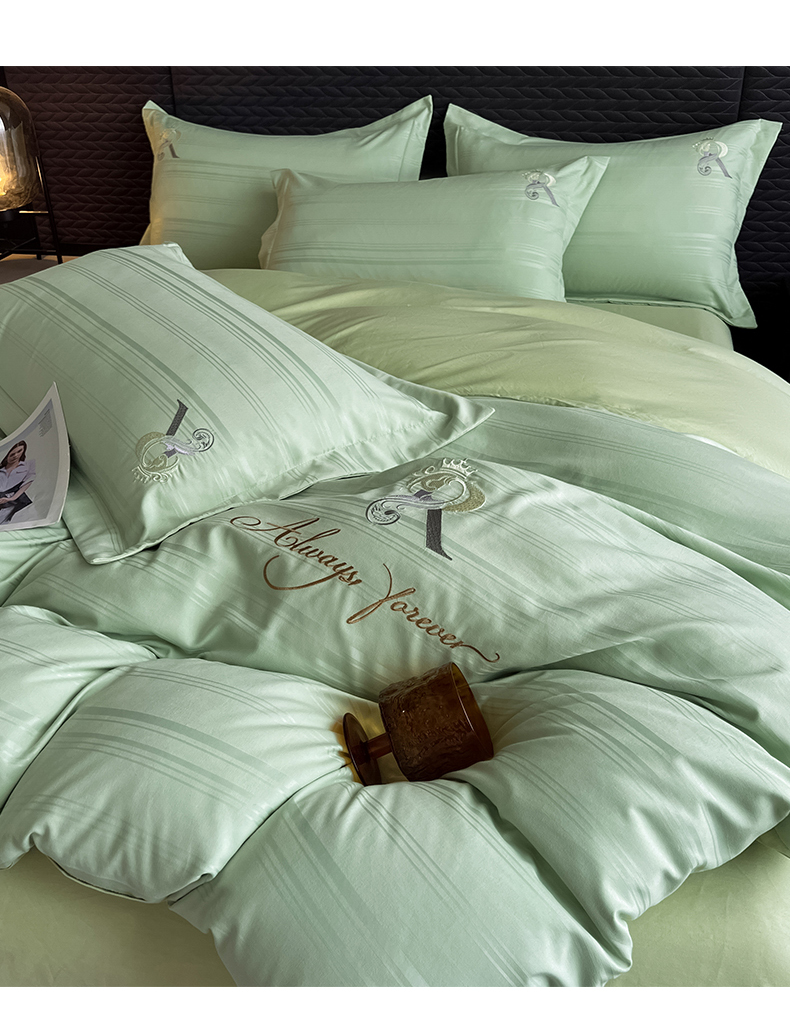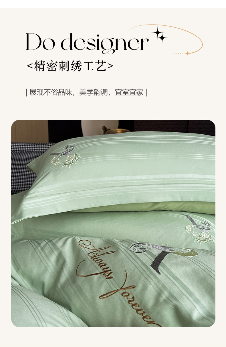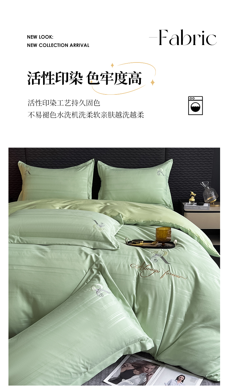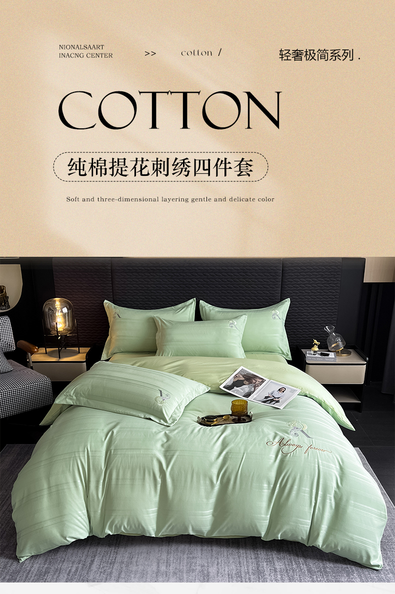 当前位置: 91家纺网 > 商品网购 > 床品套件 > 四件套 > 全棉普通四件套 > 韩秀家纺 2024新款纯棉刺绣提花四件套-遇见 遇见-薄荷绿
