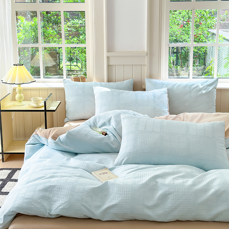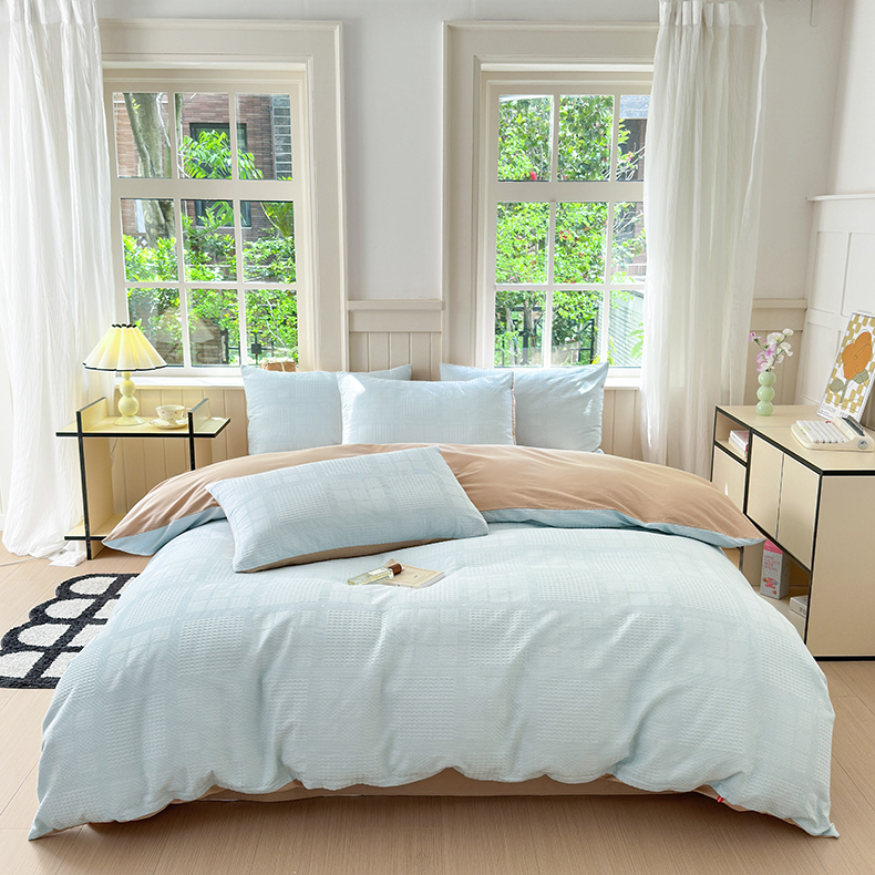 当前位置: 91家纺网 > 商品网购 > 床品套件 > 四件套 > 全棉普通四件套 > 菡宝 2024新款全棉色织小提花四件套 大方块兰