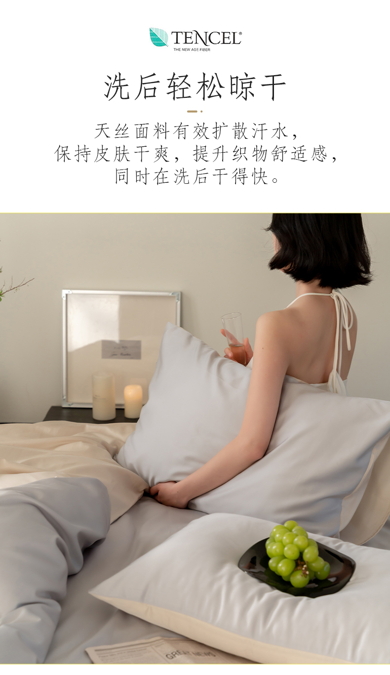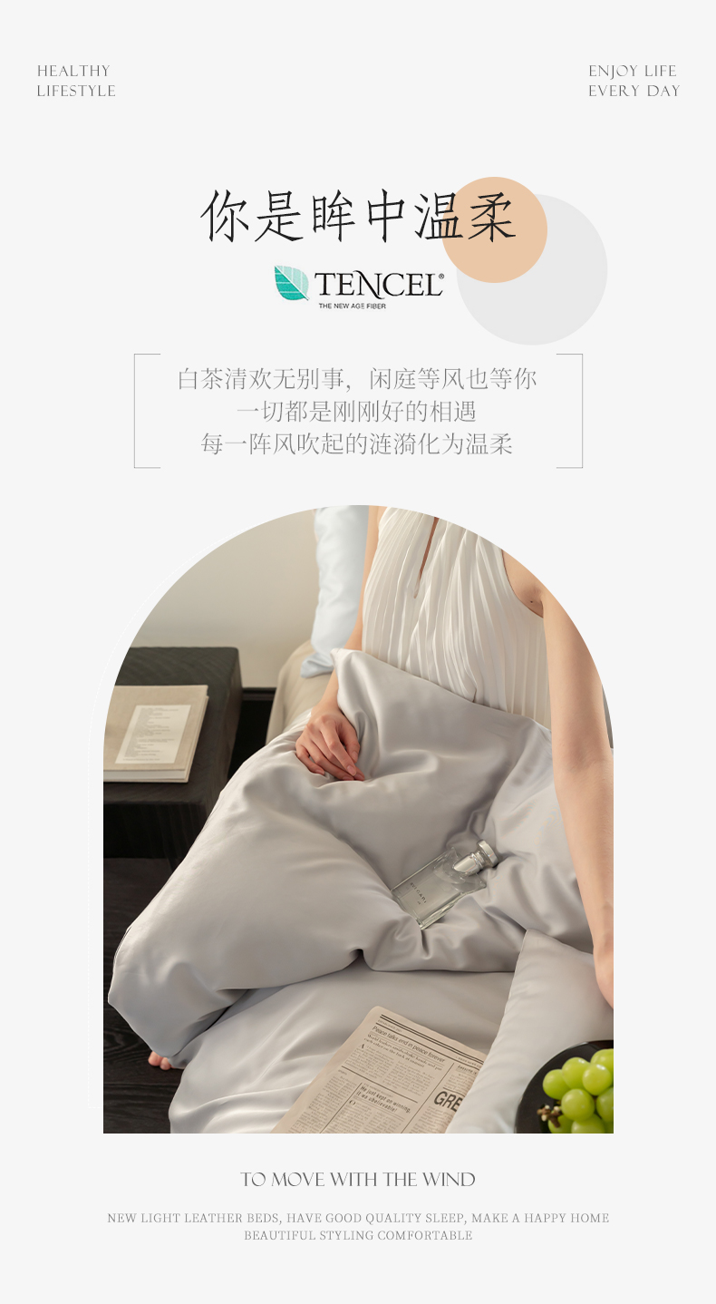 时光里 2024新款天丝棉四件套 朦胧灰拼燕麦奶