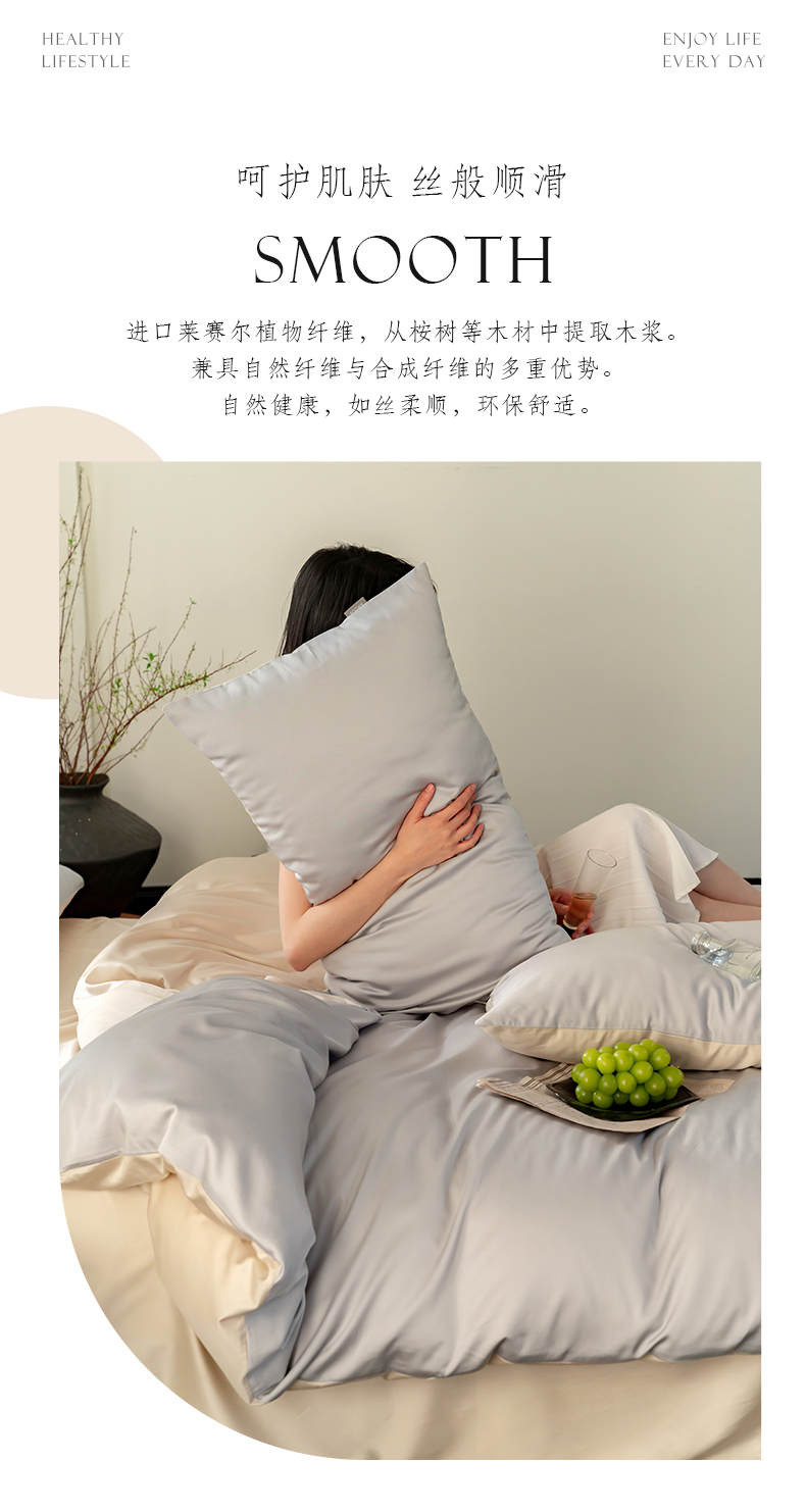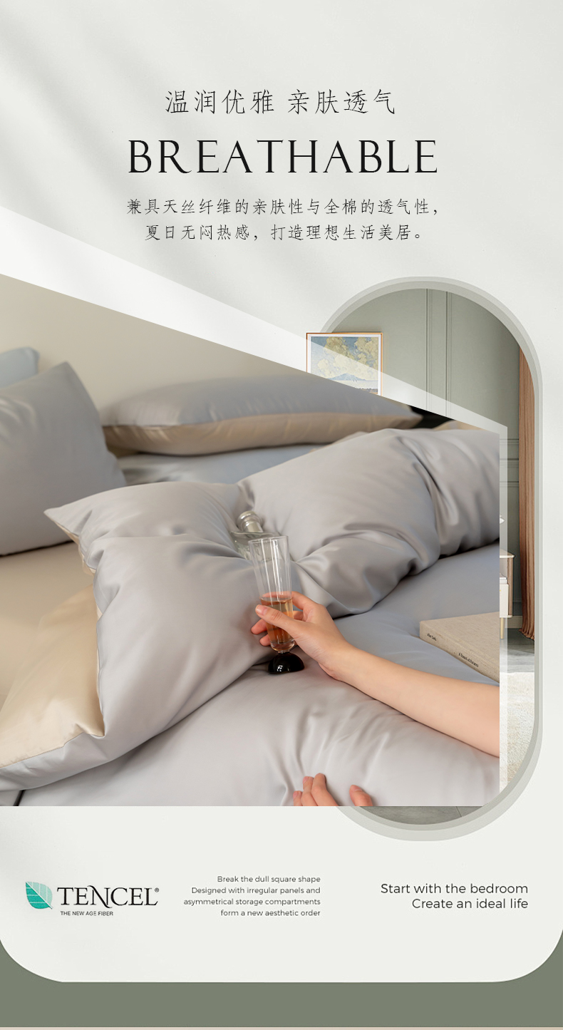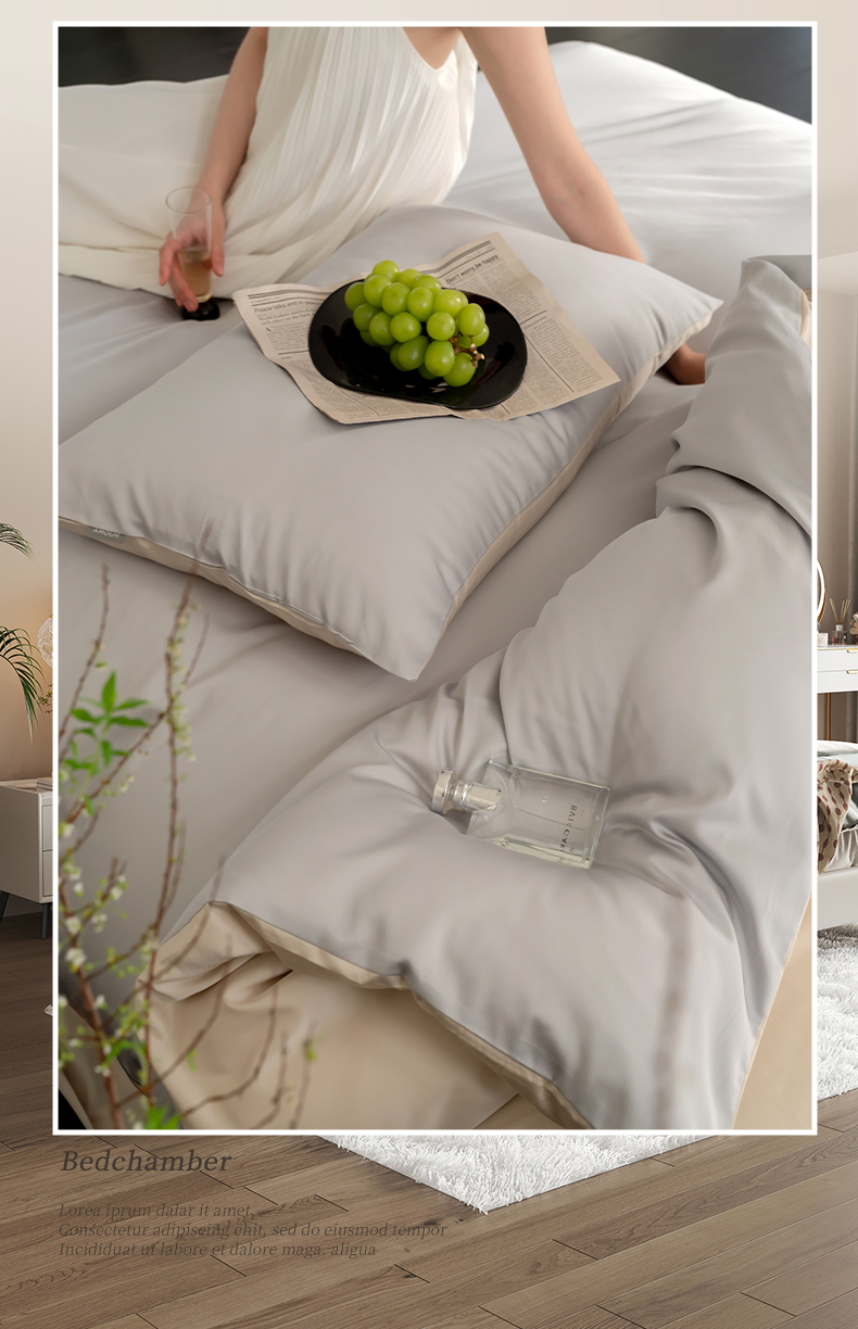 商品名称:时光里 2024新款天丝棉四件套 朦胧灰拼燕麦奶