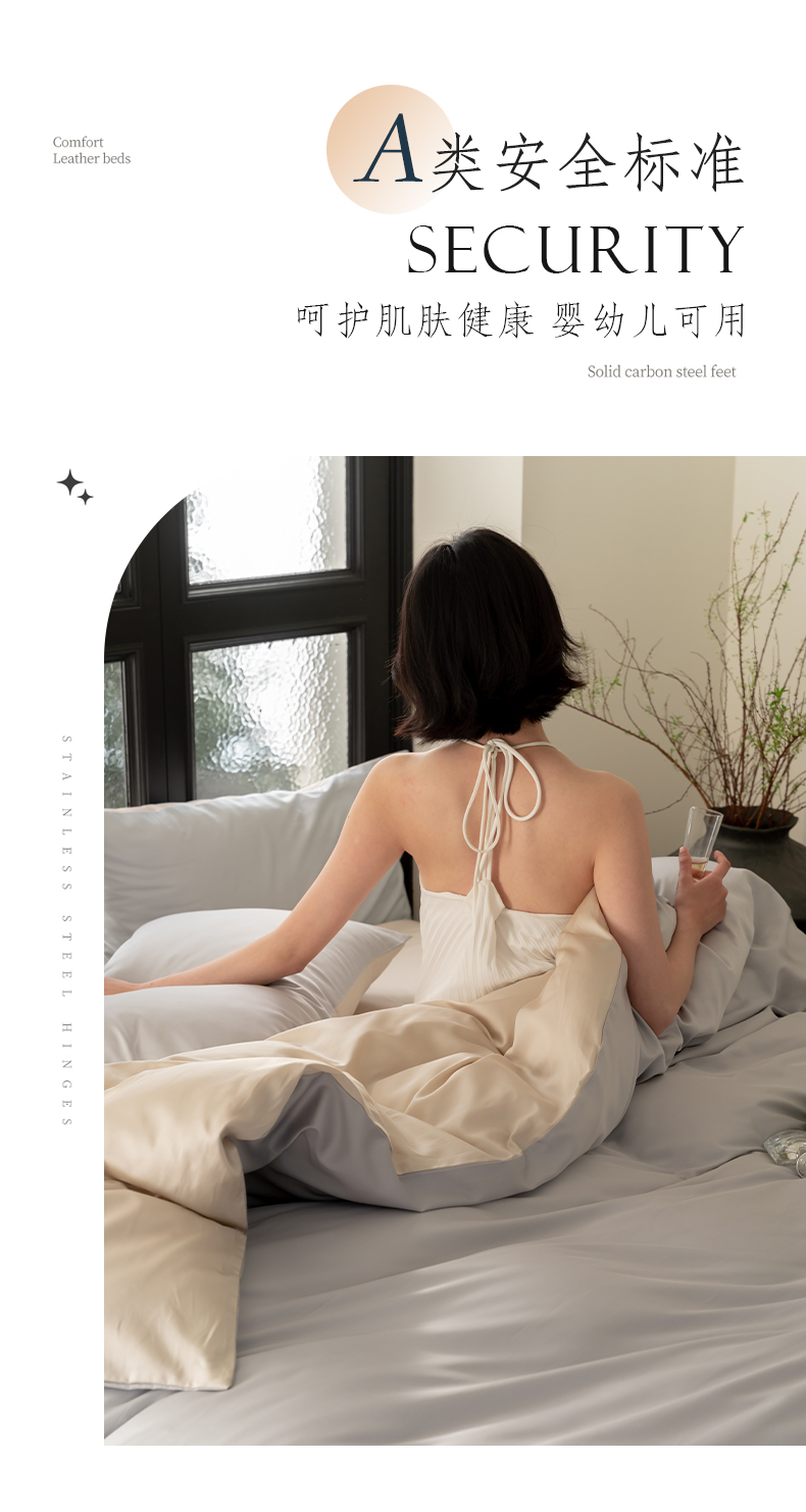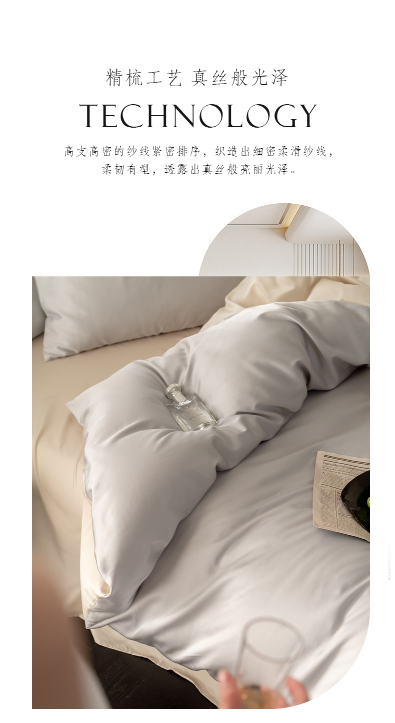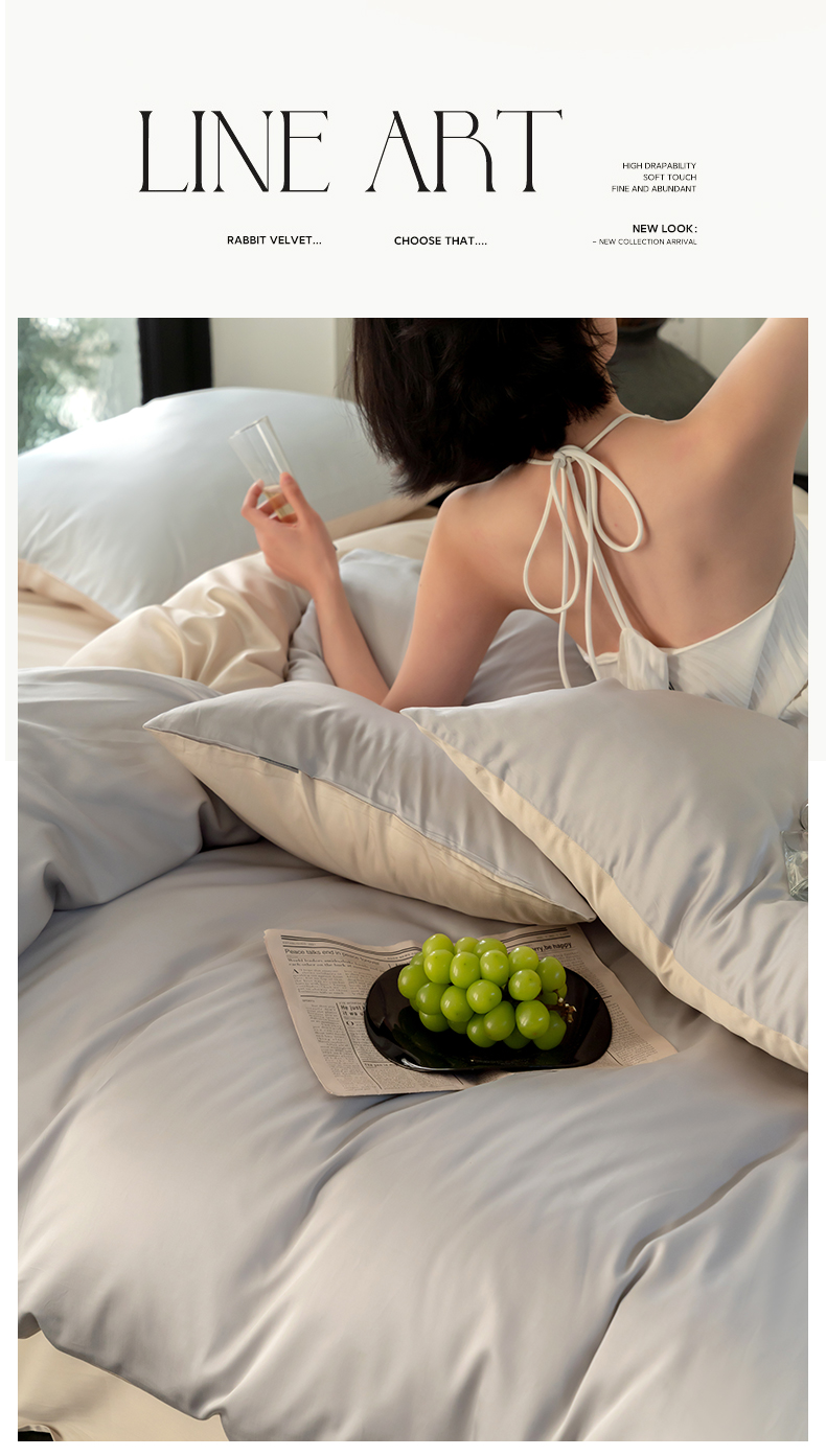 商品名称:时光里 2024新款天丝棉四件套 朦胧灰拼燕麦奶