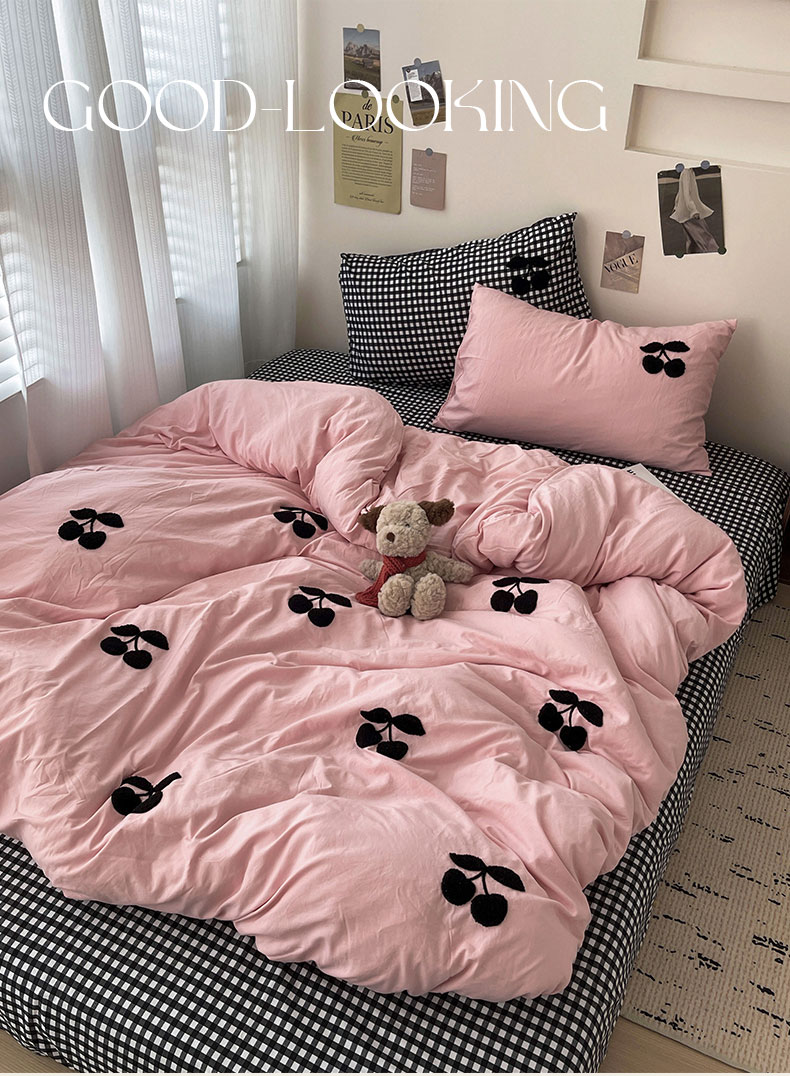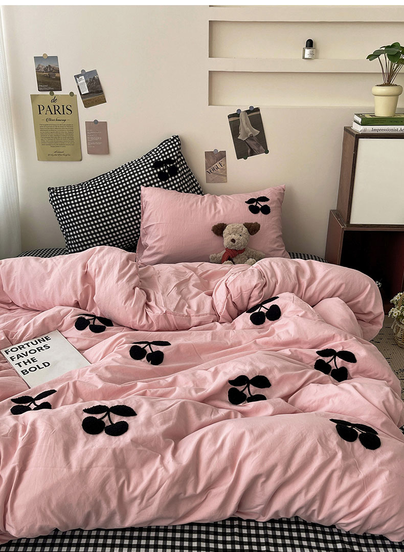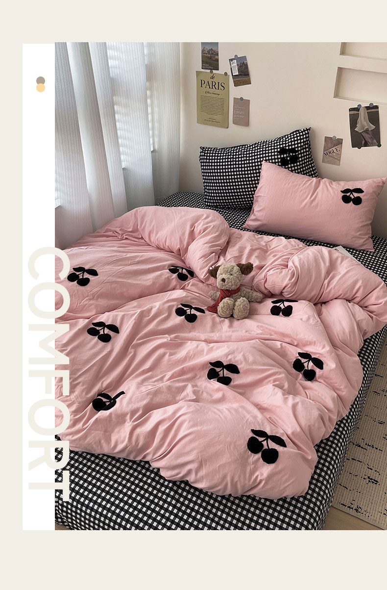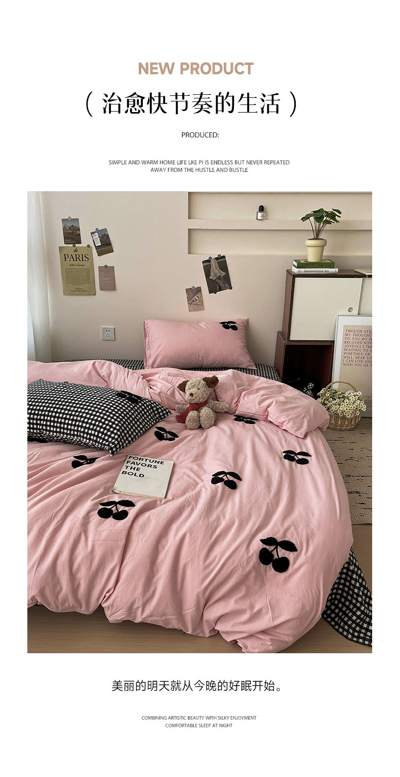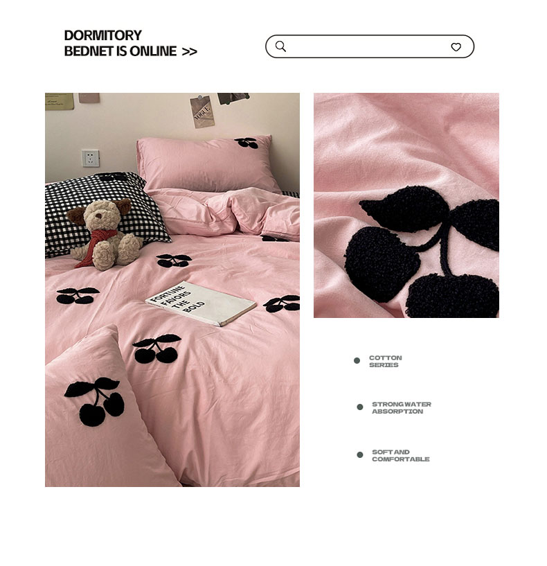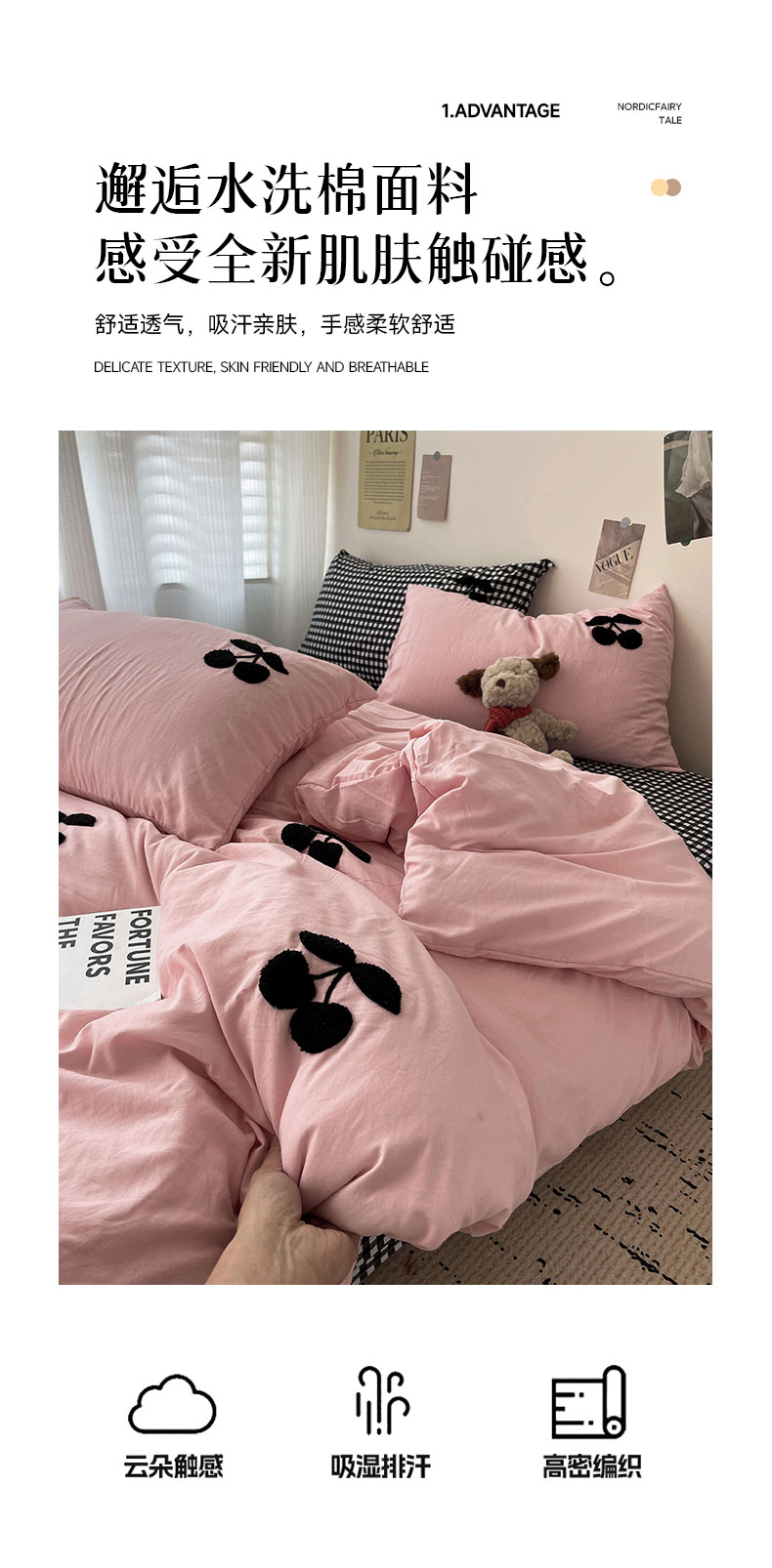当前位置: 91家纺网 > 商品网购 > 床品套件 > 四件套 > 水洗棉四件套 > 尤米 2024新款可爱樱桃系列水洗棉毛巾绣四件套 樱桃-粉格