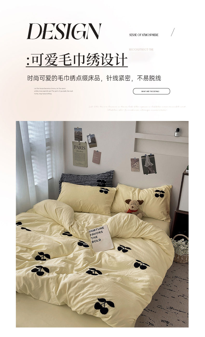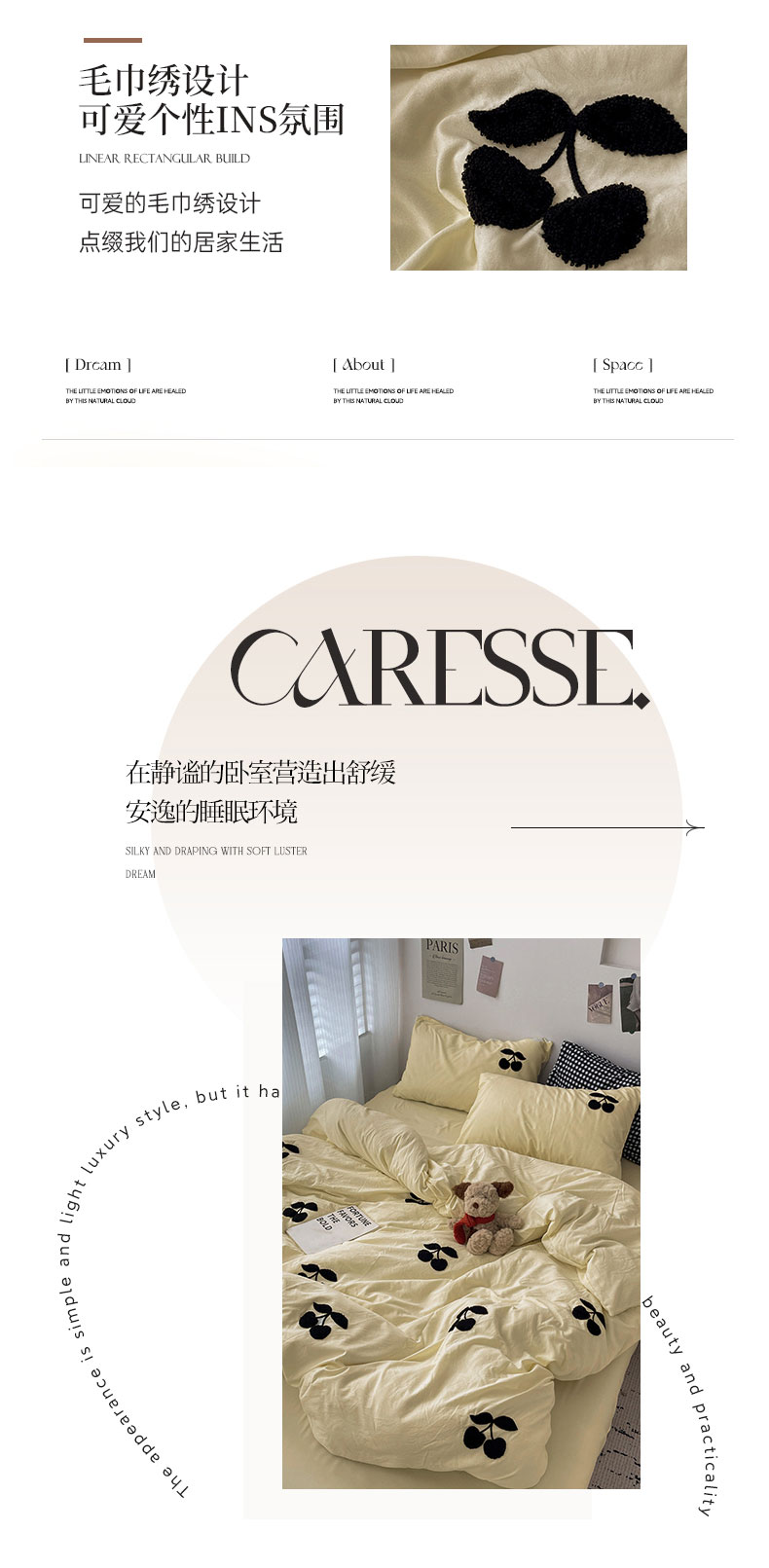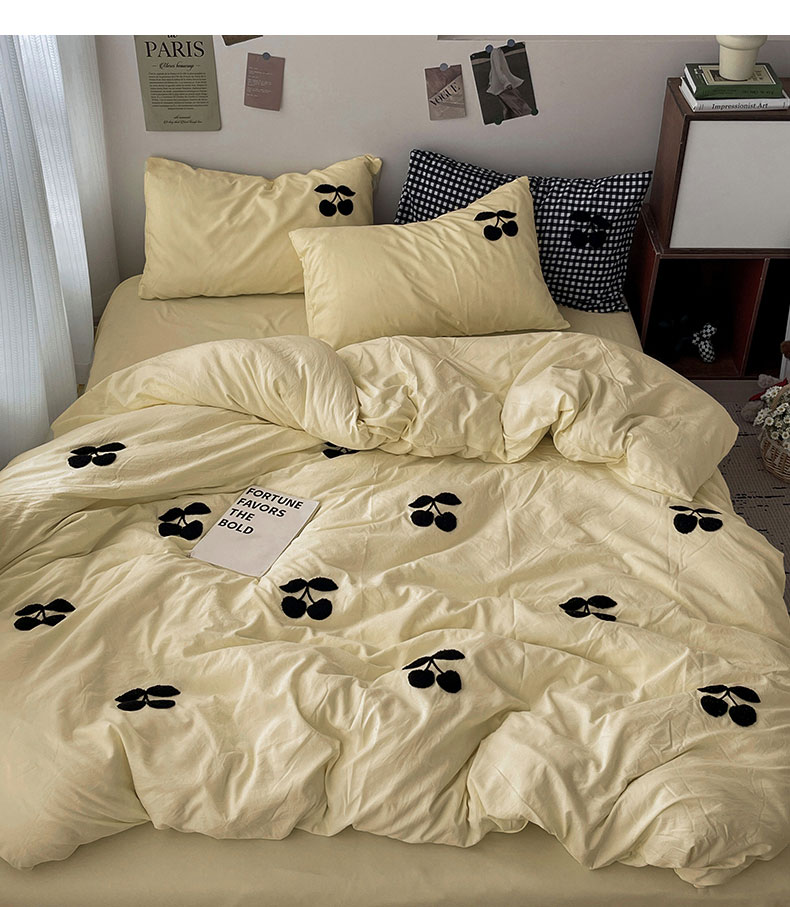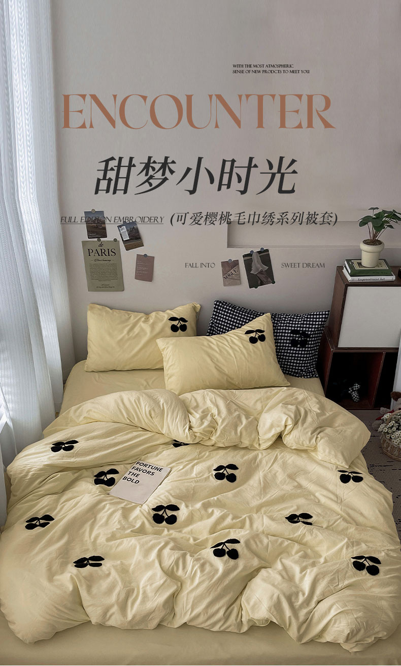 尤米 2024新款可爱樱桃系列水洗棉毛巾绣单被套 樱桃-芝士黄