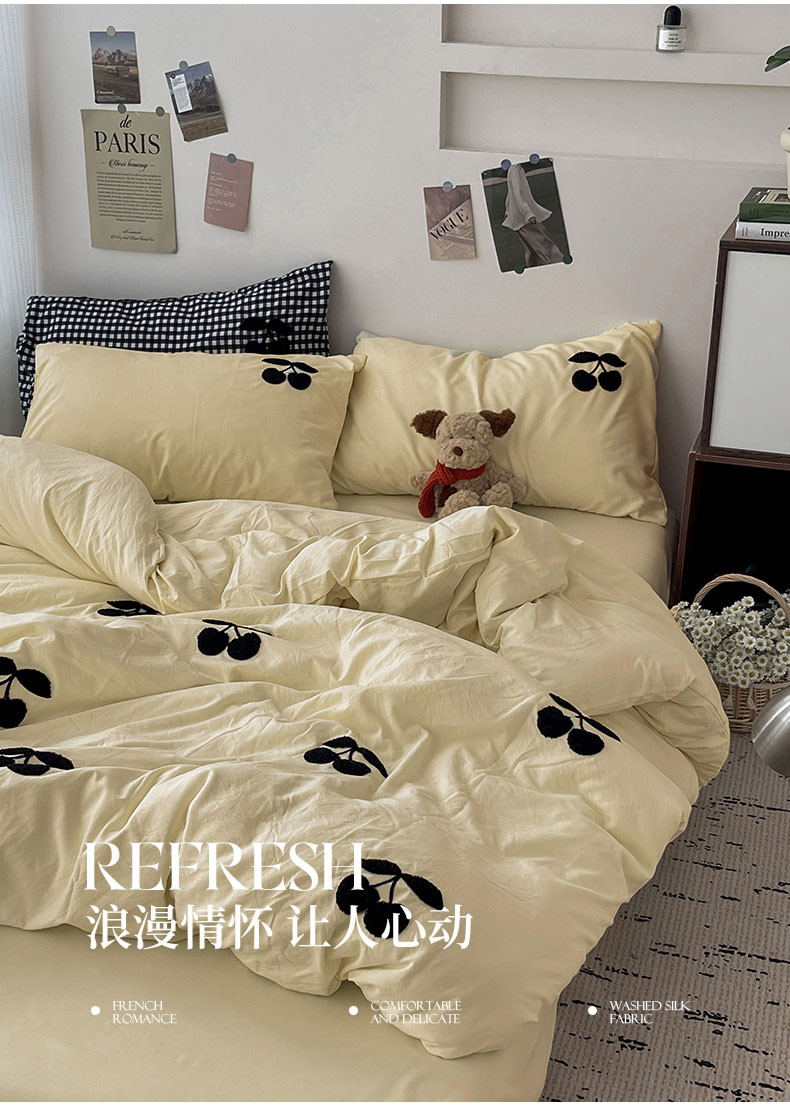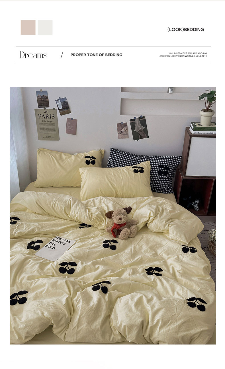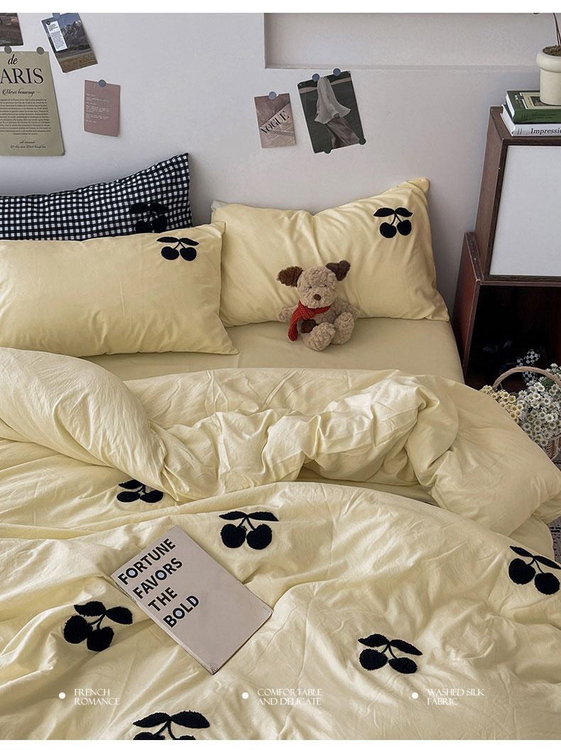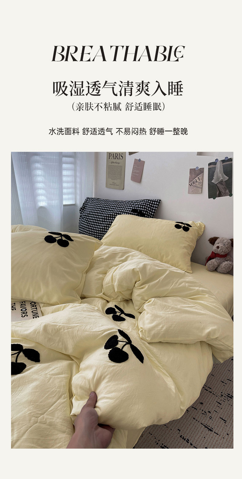 尤米 2024新款可爱樱桃系列水洗棉毛巾绣单被套 樱桃-芝士黄