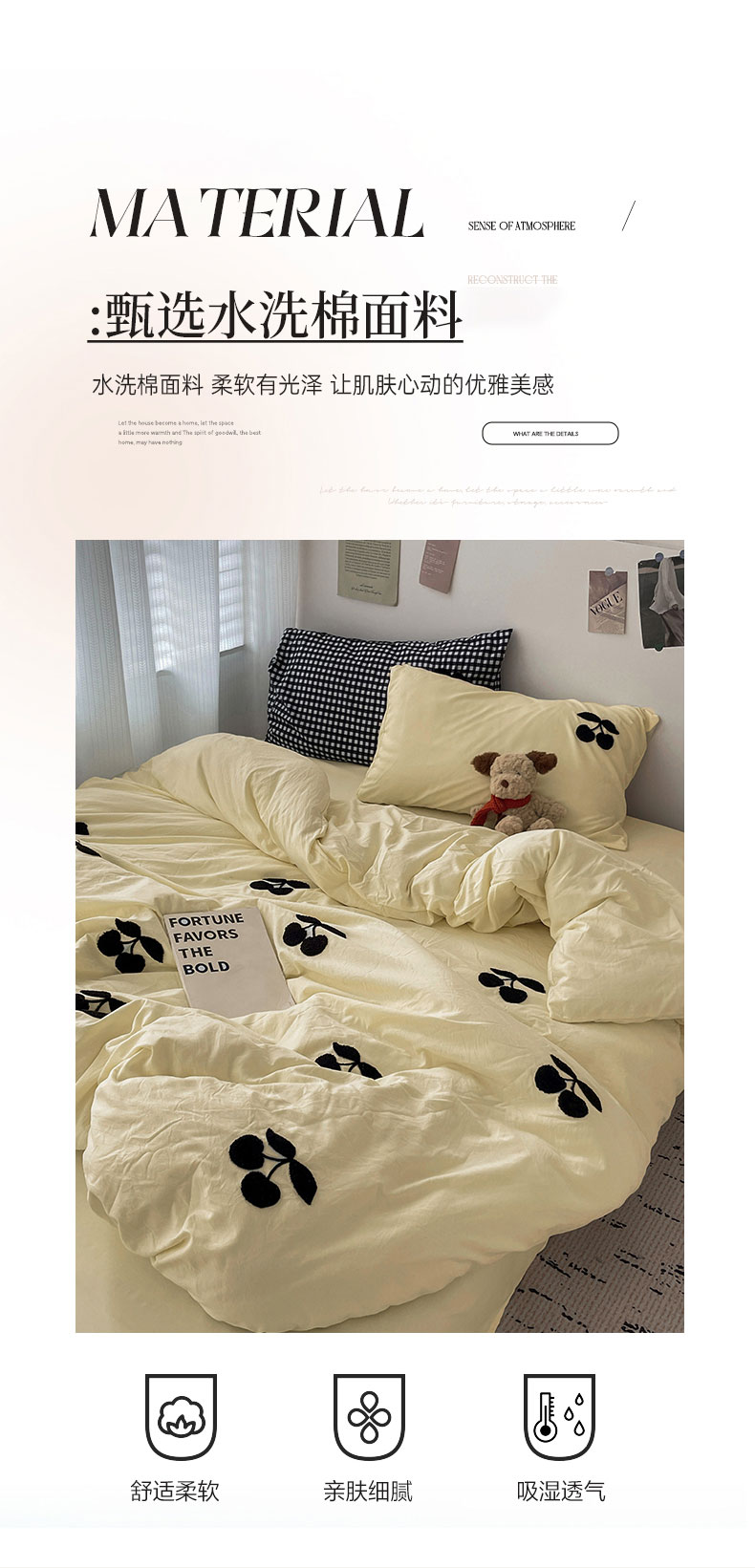 (总) 尤米 2024新款奶油风水洗棉四件套,可爱狗-白,可爱狗-粉,小熊猫-黄,小熊猫-蓝,郁金香-白,郁金香-绿