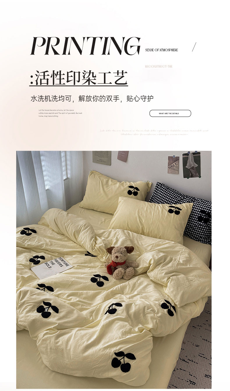 商品名称:尤米 2024新款可爱樱桃系列水洗棉毛巾绣单被套 樱桃-芝士黄