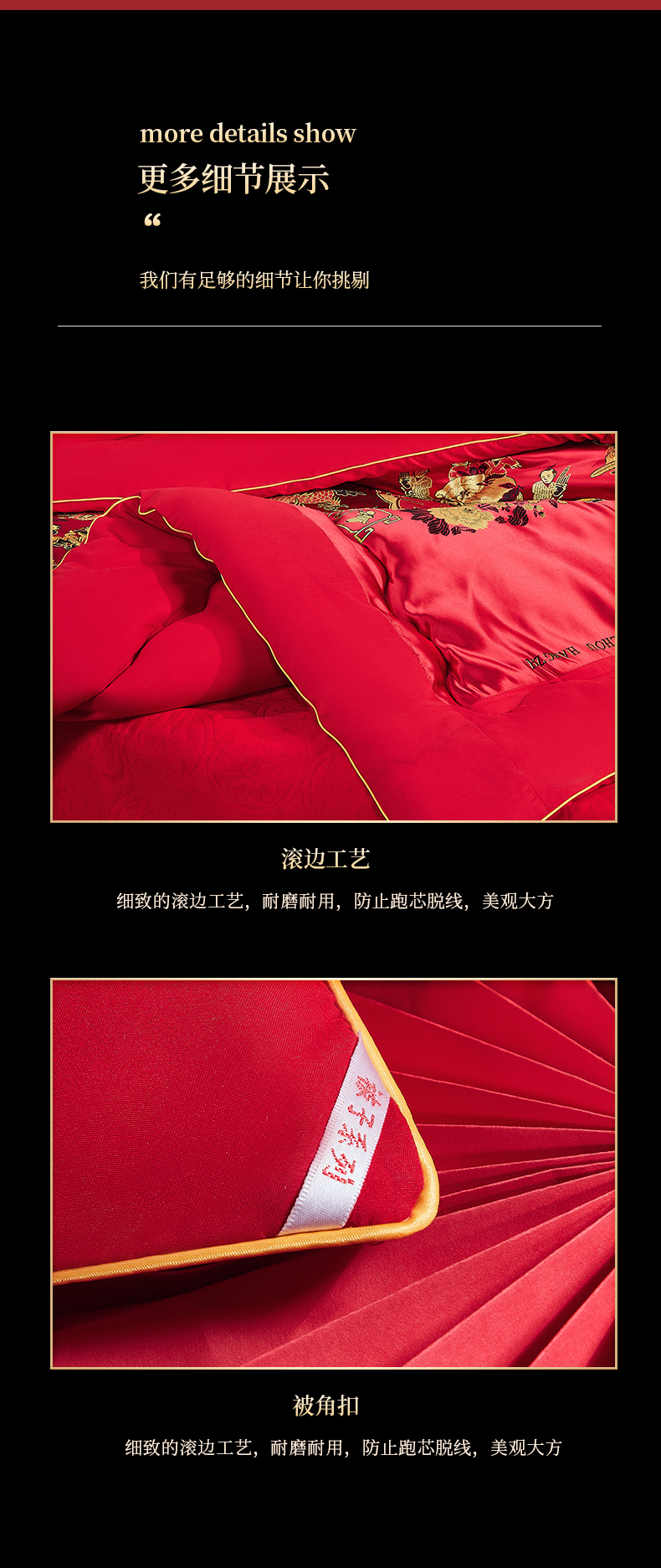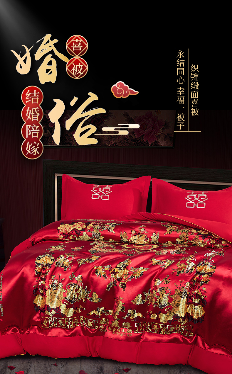 (总)玉雅家纺 2025新款丝缎亮面刺绣婚庆四件套,爱意绵绵,欢喜余生,喜至,新婚喜乐
