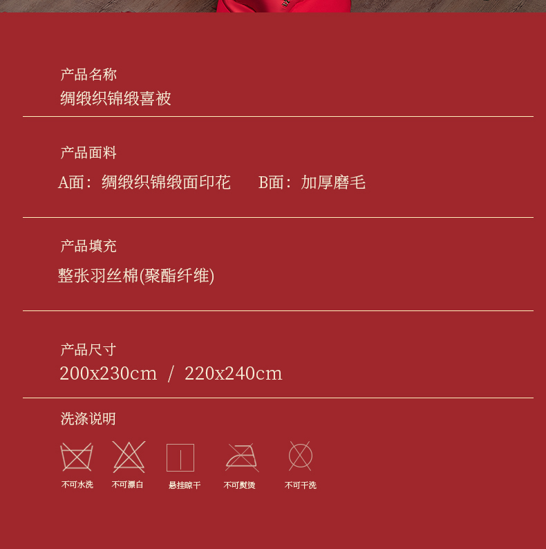 商品名称:玉雅家纺 2025新款婚庆绸缎被面结婚喜被龙凤百子单被套 甜蜜-红-被子