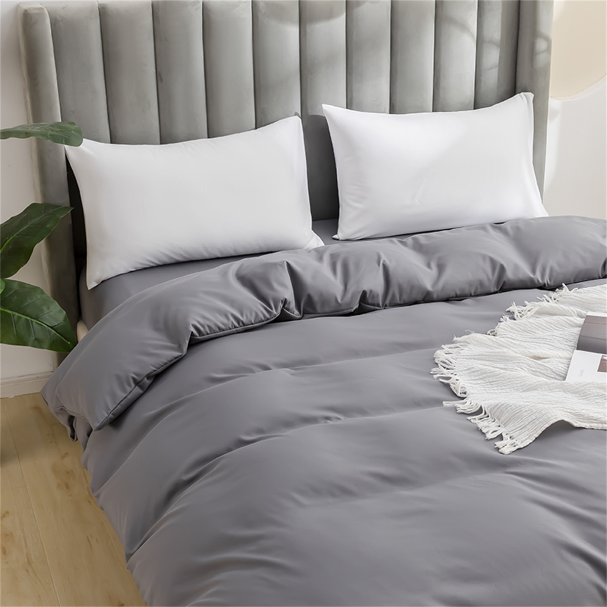 商品名称:2025款跨境外贸纯色磨毛单被套单品床上用品 外贸专供可定制 浅灰