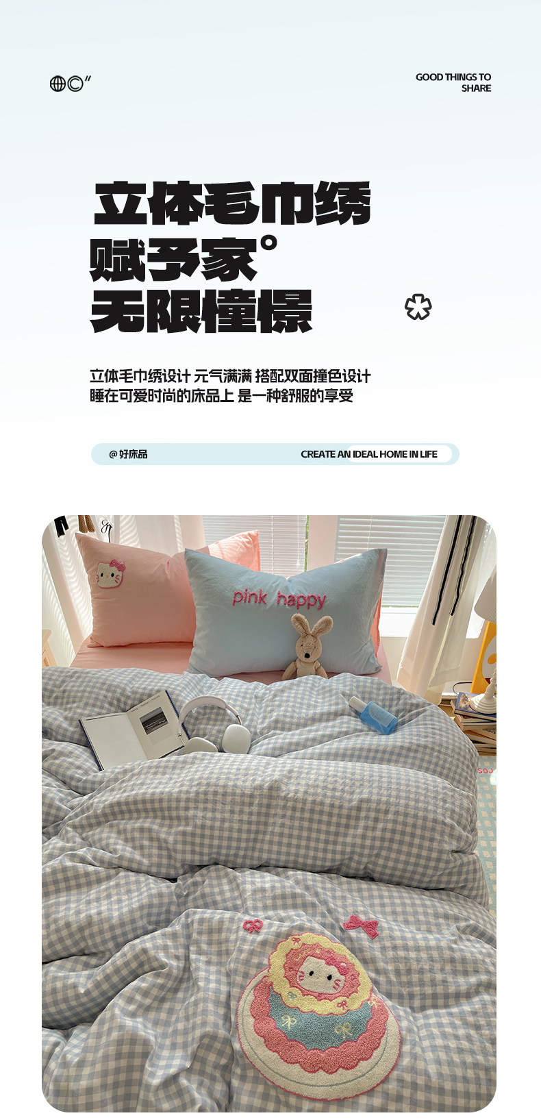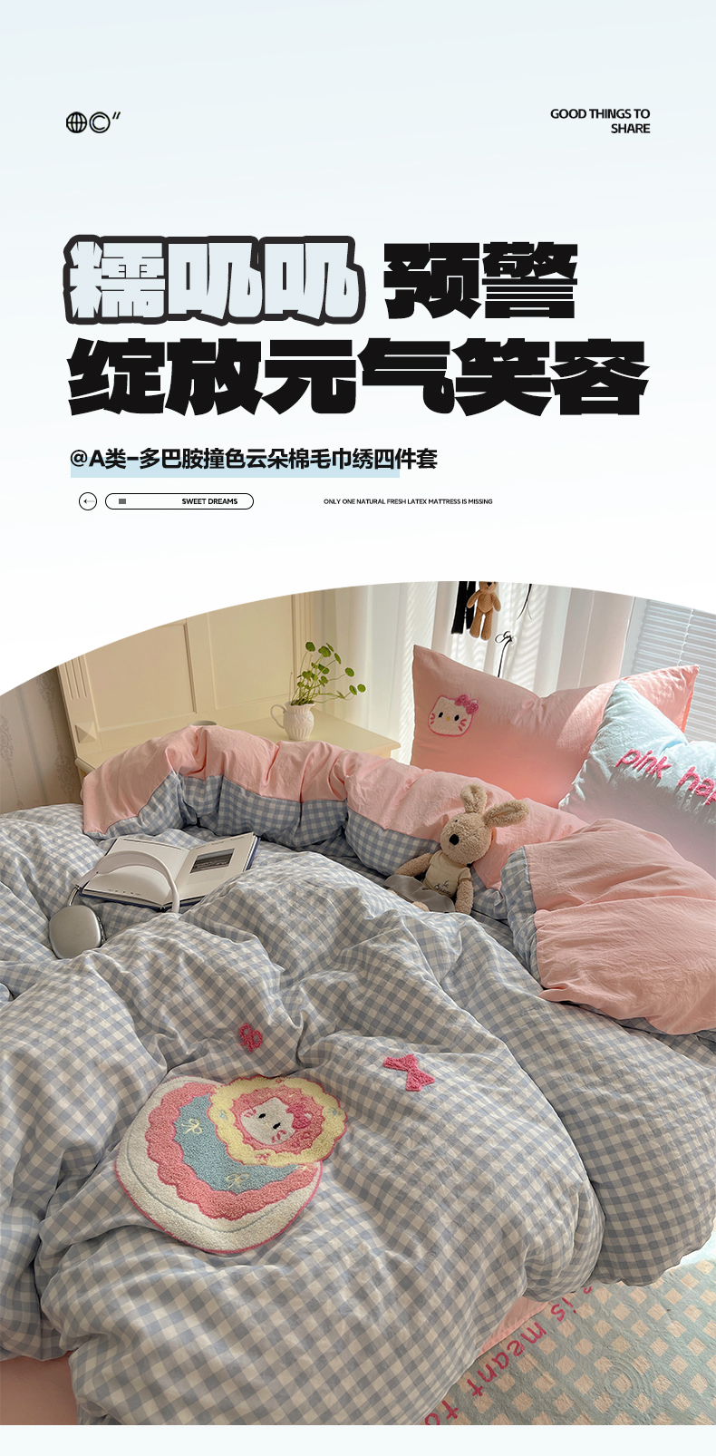 (总)2024新款ins可爱风云朵棉韩系卡通精密毛巾绣四件套拍图二