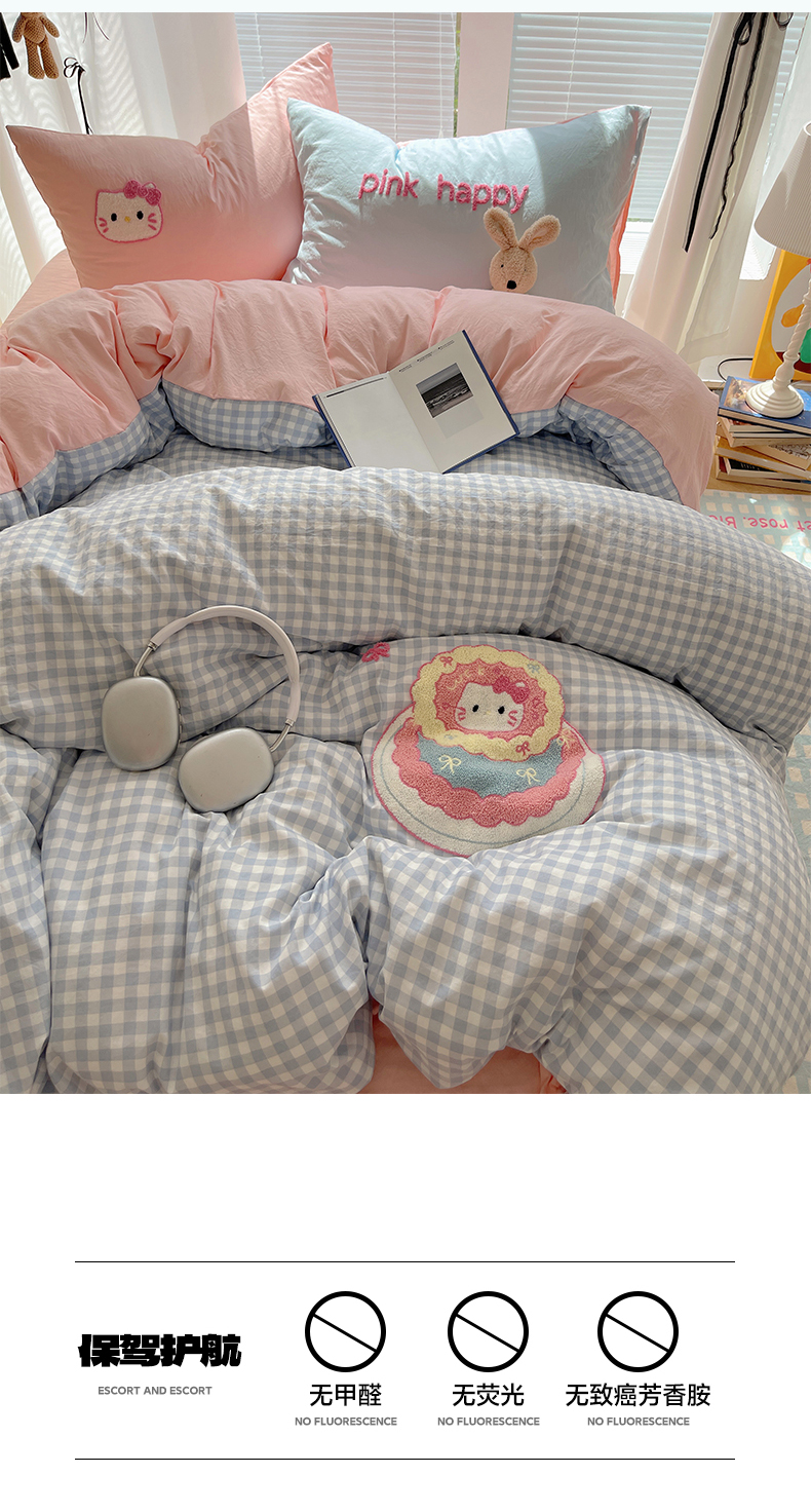 (总)顾里家纺 2024秋冬新款格子猫咪毛巾绣牛奶绒四件套,粉格猫咪,黄格猫咪,咖格猫咪,蓝格猫咪,绿格猫咪